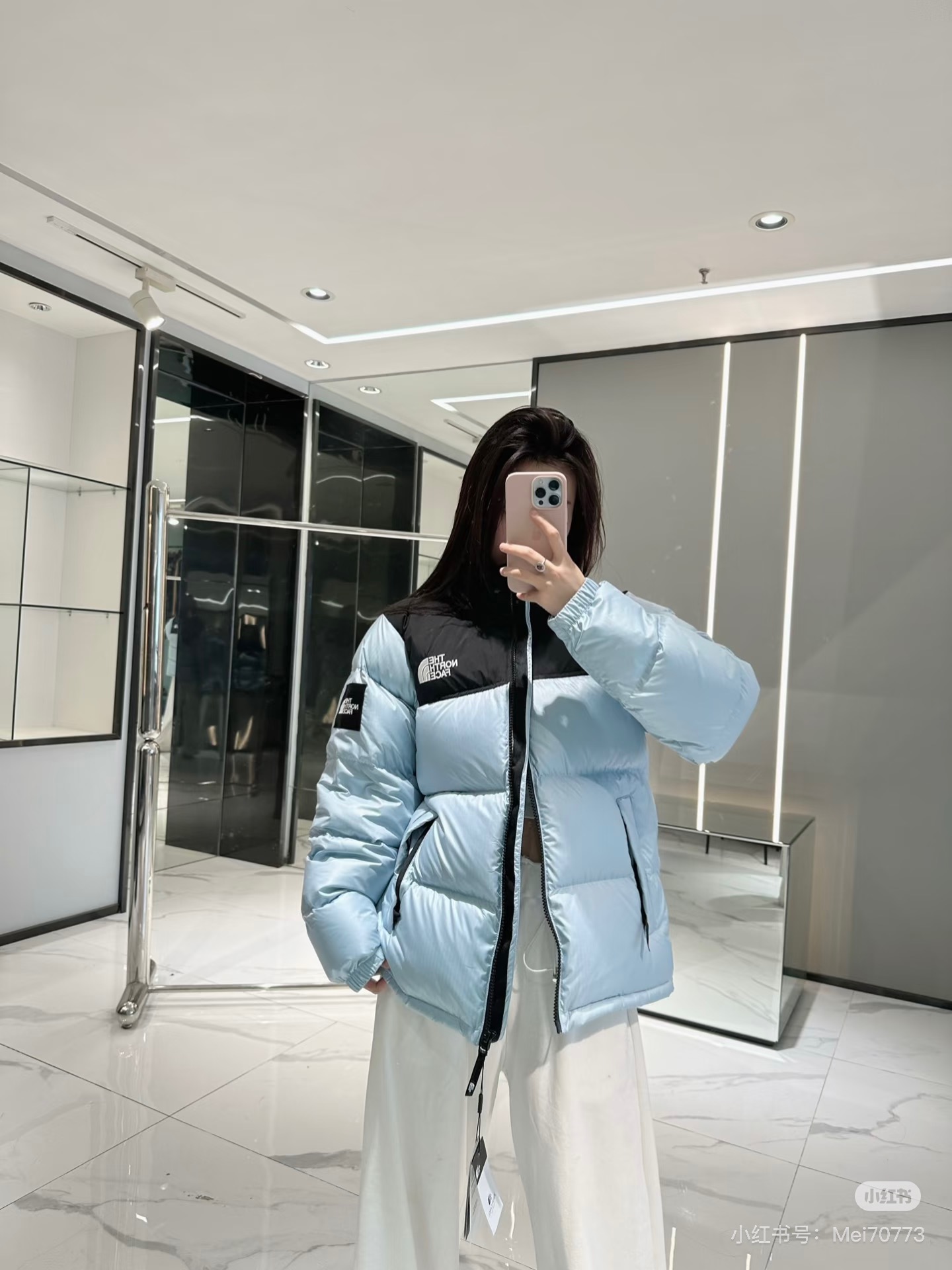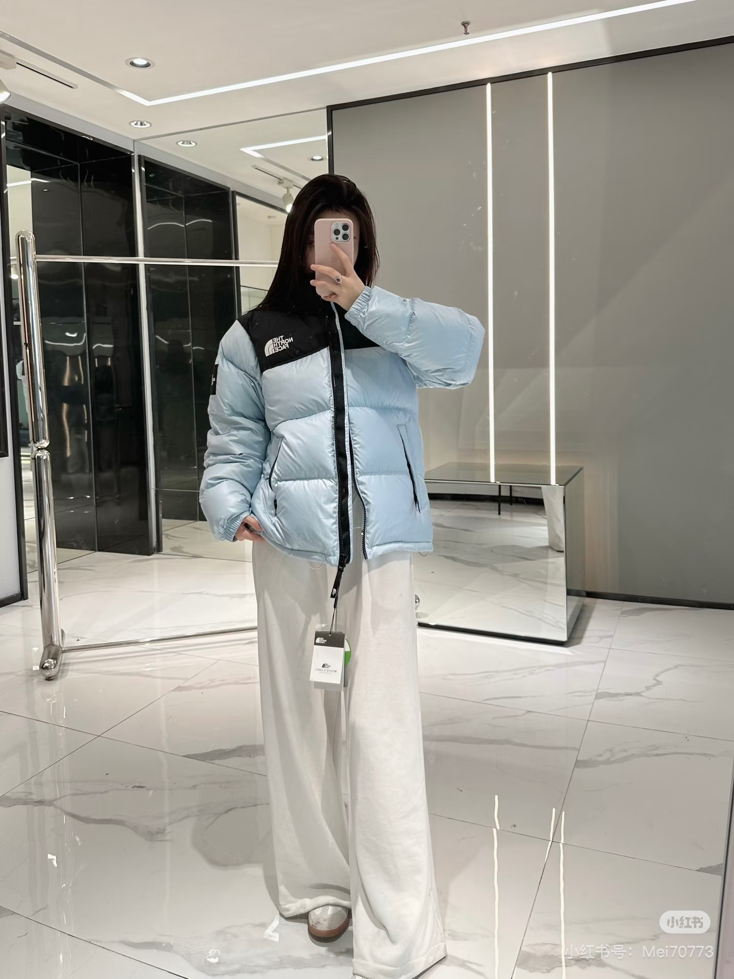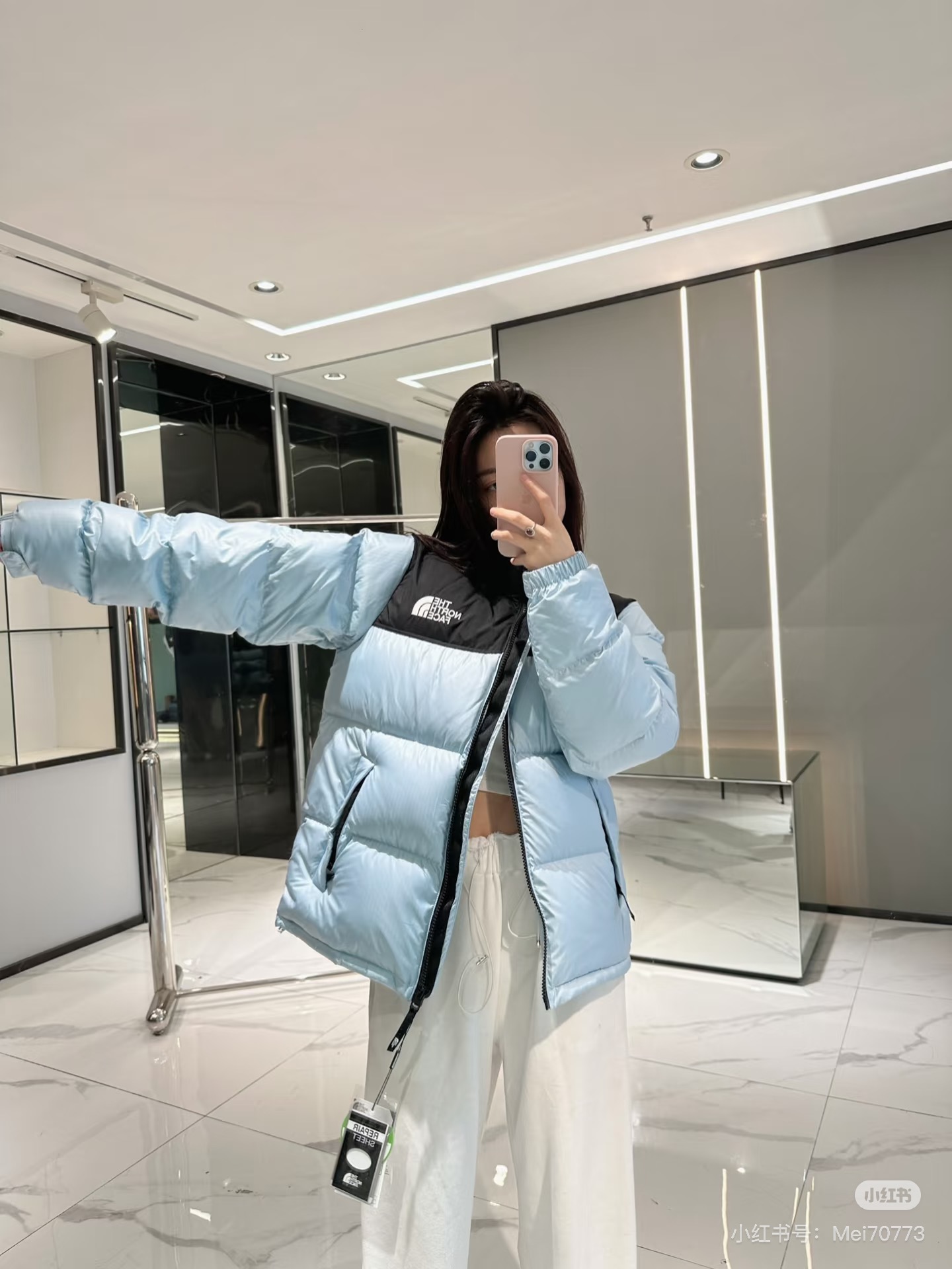 厂家直销 顶级版本带芯片随意对比 𝗧𝗵𝗲 𝗡𝗼𝗿𝘁𝗵 𝗙𝗮𝗰𝗲 北面1996 韩版申敏儿同款大格子袖章限定防风防水羽绒服 标配专柜同款帆布手提袋 退货遗失默认 可配礼盒