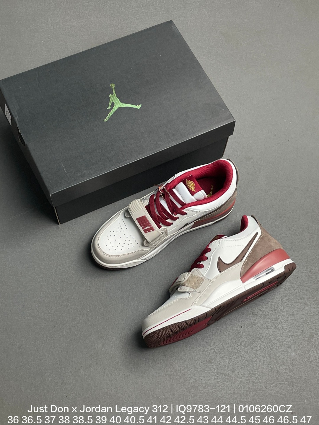 Jordan 乔丹 采用牛培移膜革材质鞋面 中底PU内嵌开窗式Air缓震气垫确实帅气难挡 三合一最强合体Just Don x Jordan Legacy 312乔丹最强三合一混合版本低帮休闲运动篮球鞋 IQ9783 121