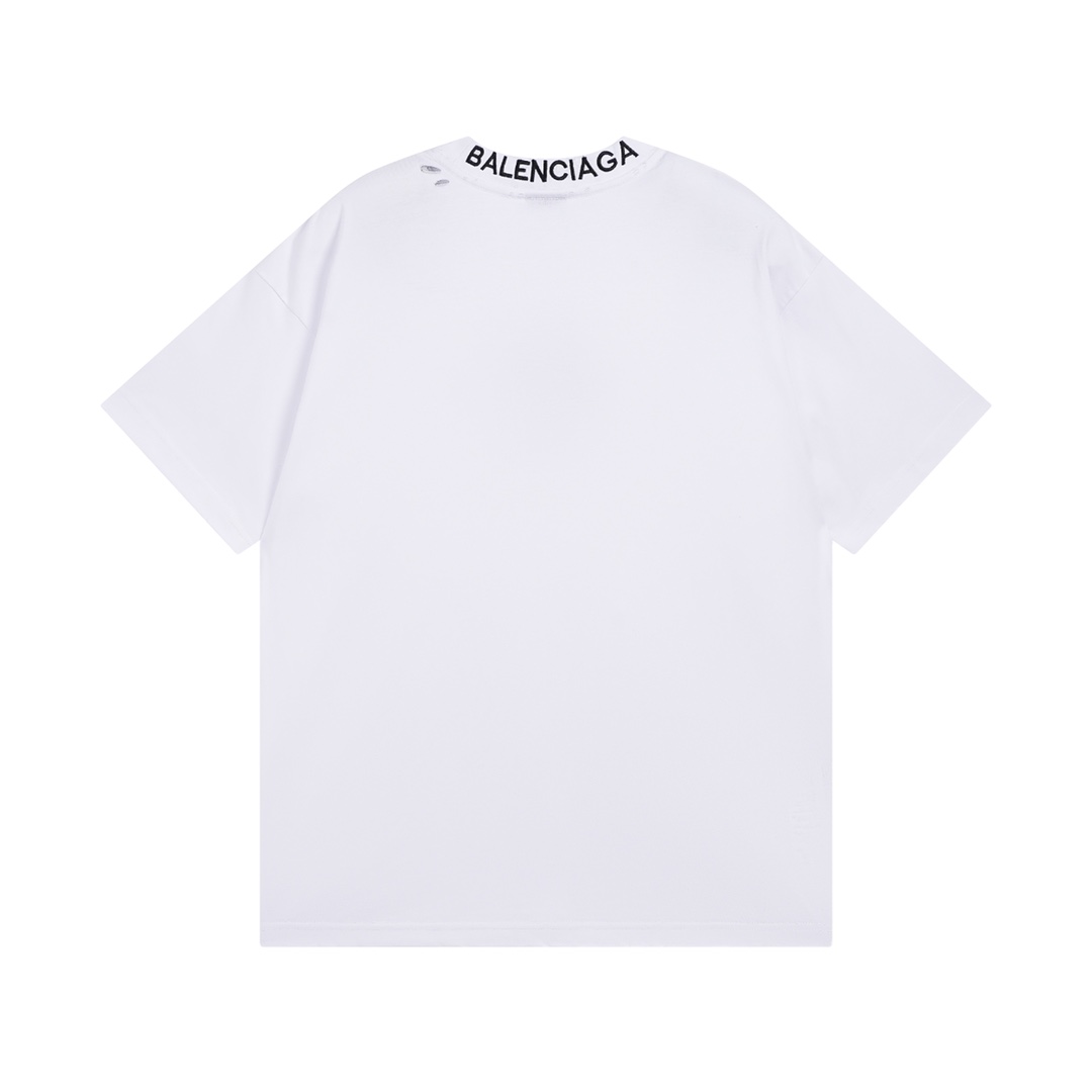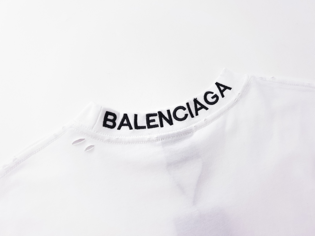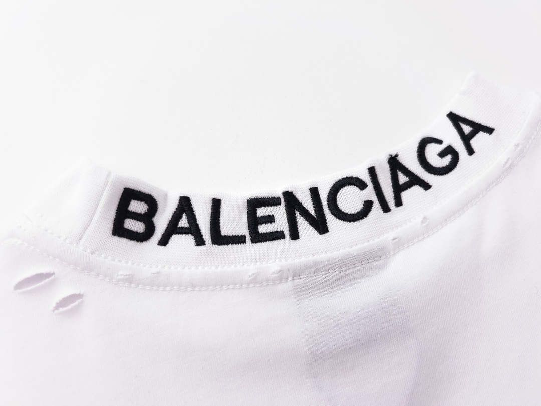 细节图 顶级版本 官网品质 BALENCI GA 巴黎 后领罗纹刺绣字母 成衣复古磨烂做旧短袖T恤 砖柜同步