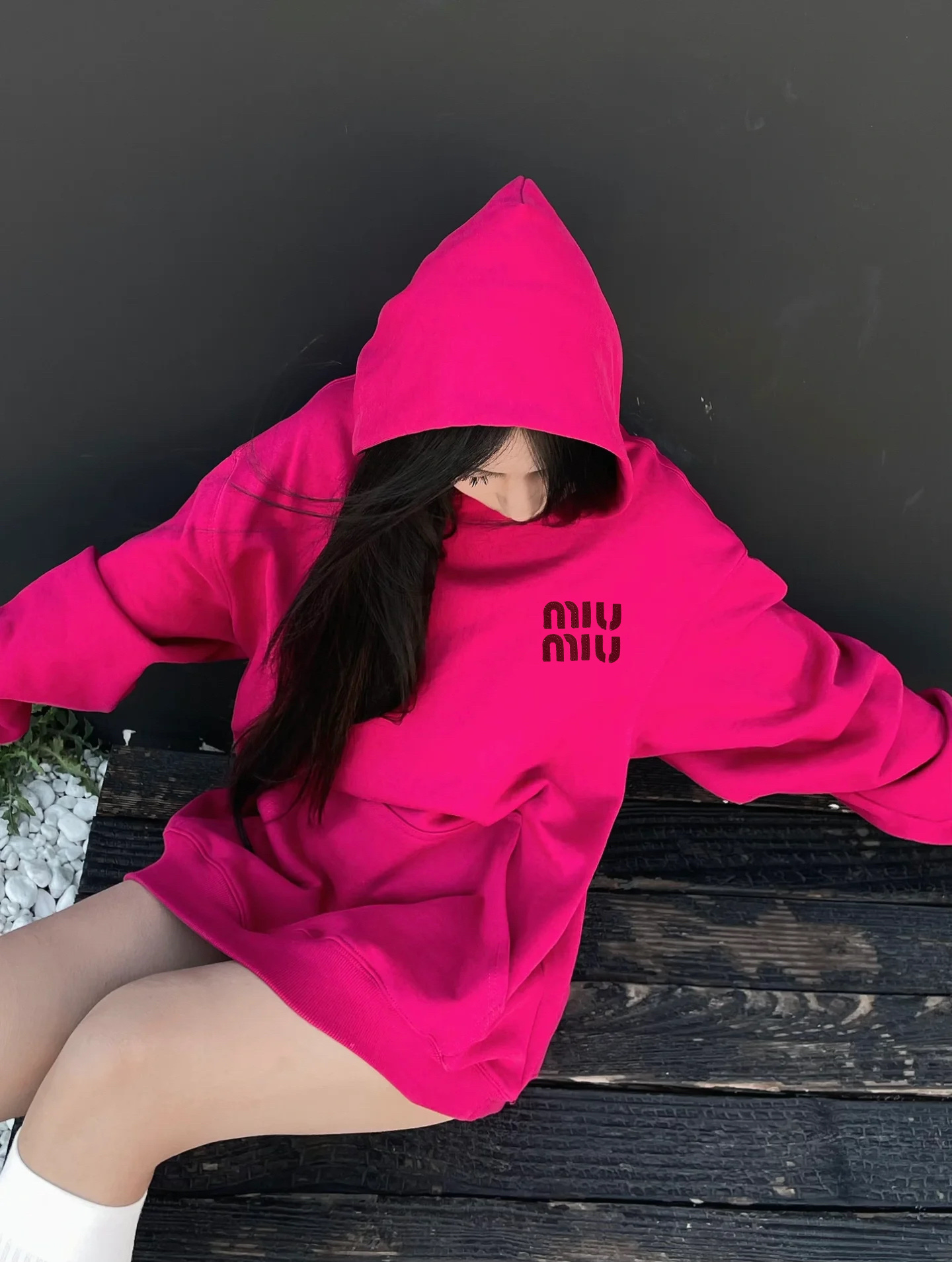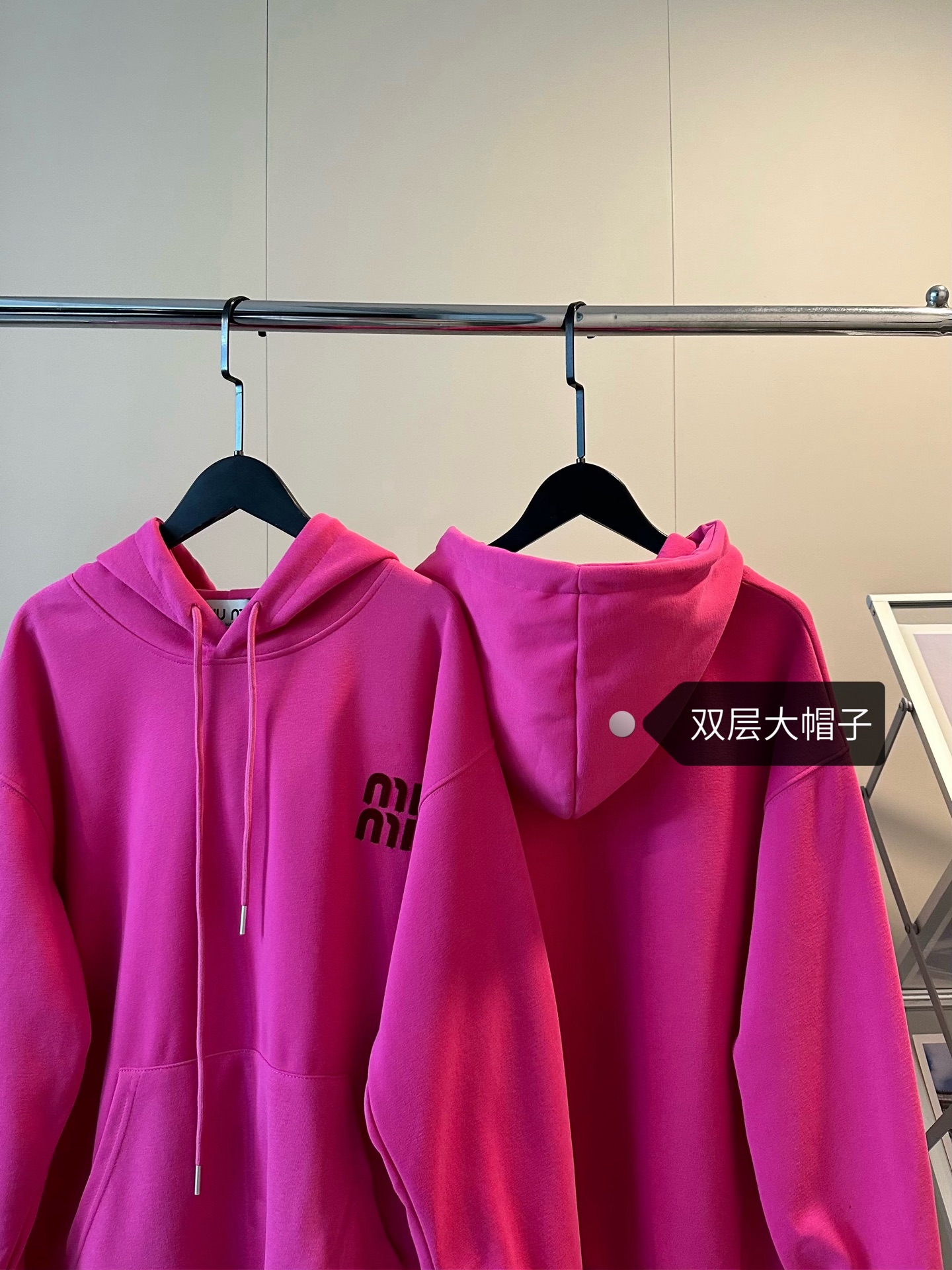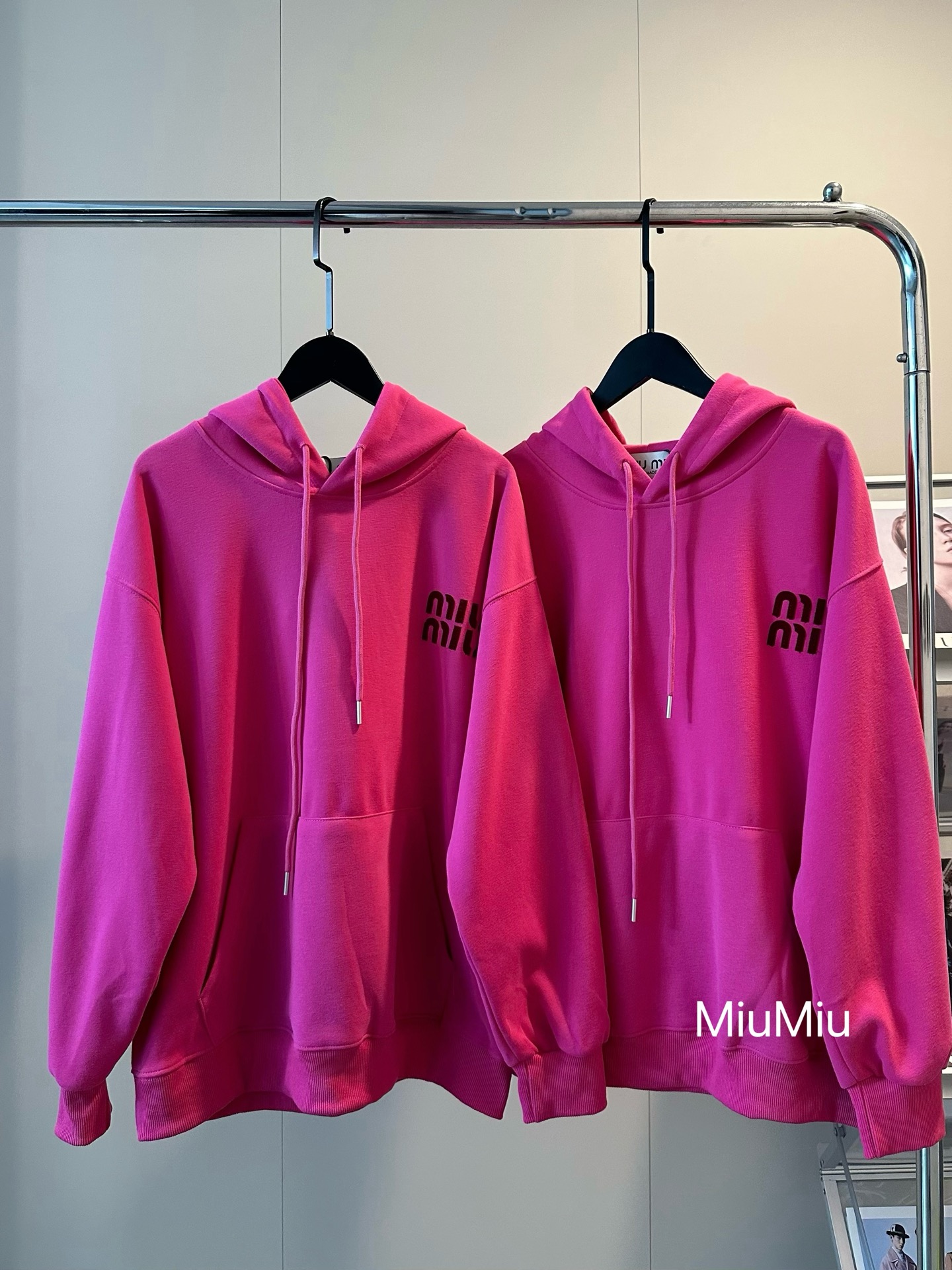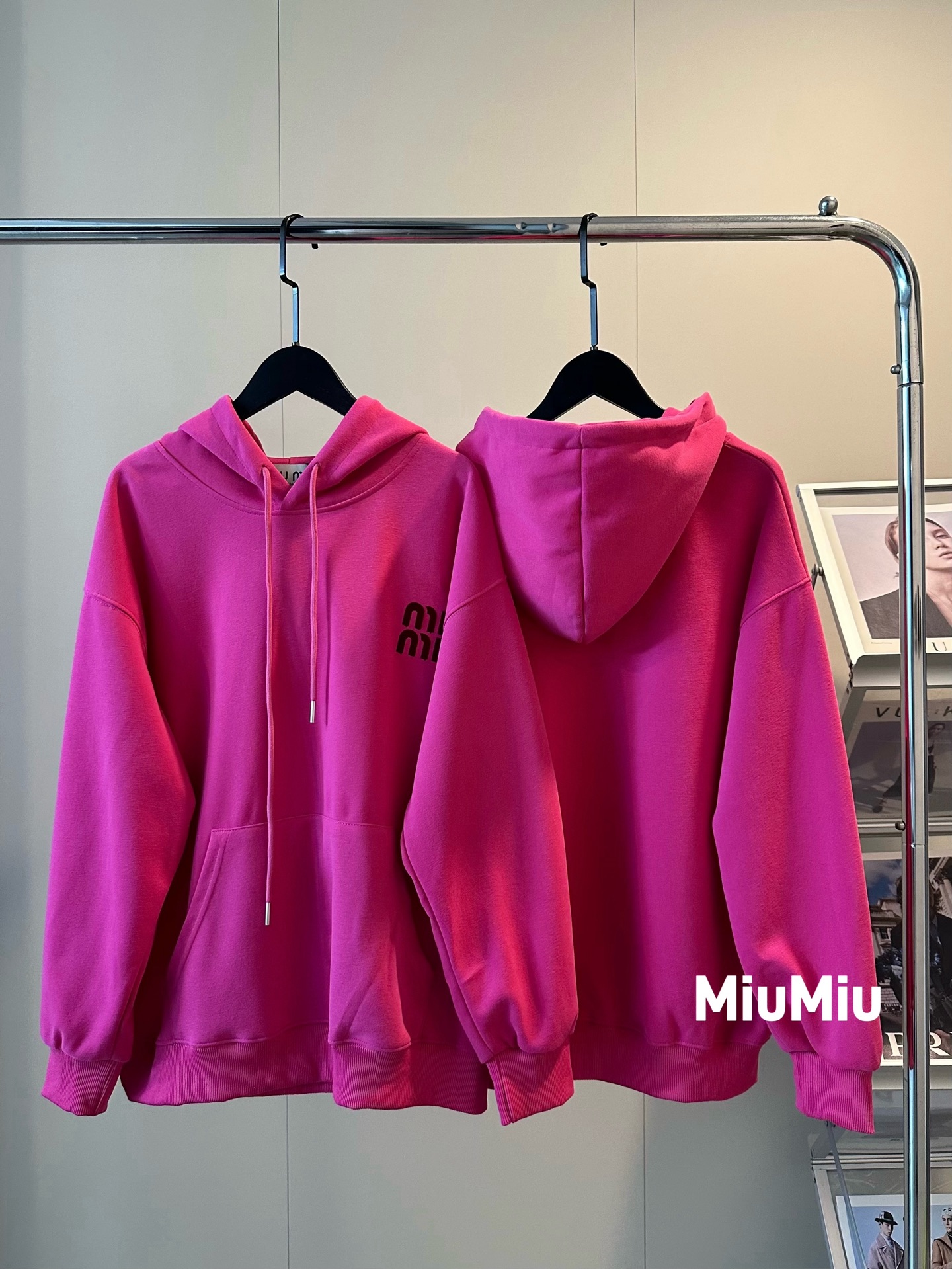 105159276 - 𝐌𝐢𝐮𝐦𝐢𝐮缪缪家新款字母刺绣logo玫红色连帽卫衣 无法拒 323719
