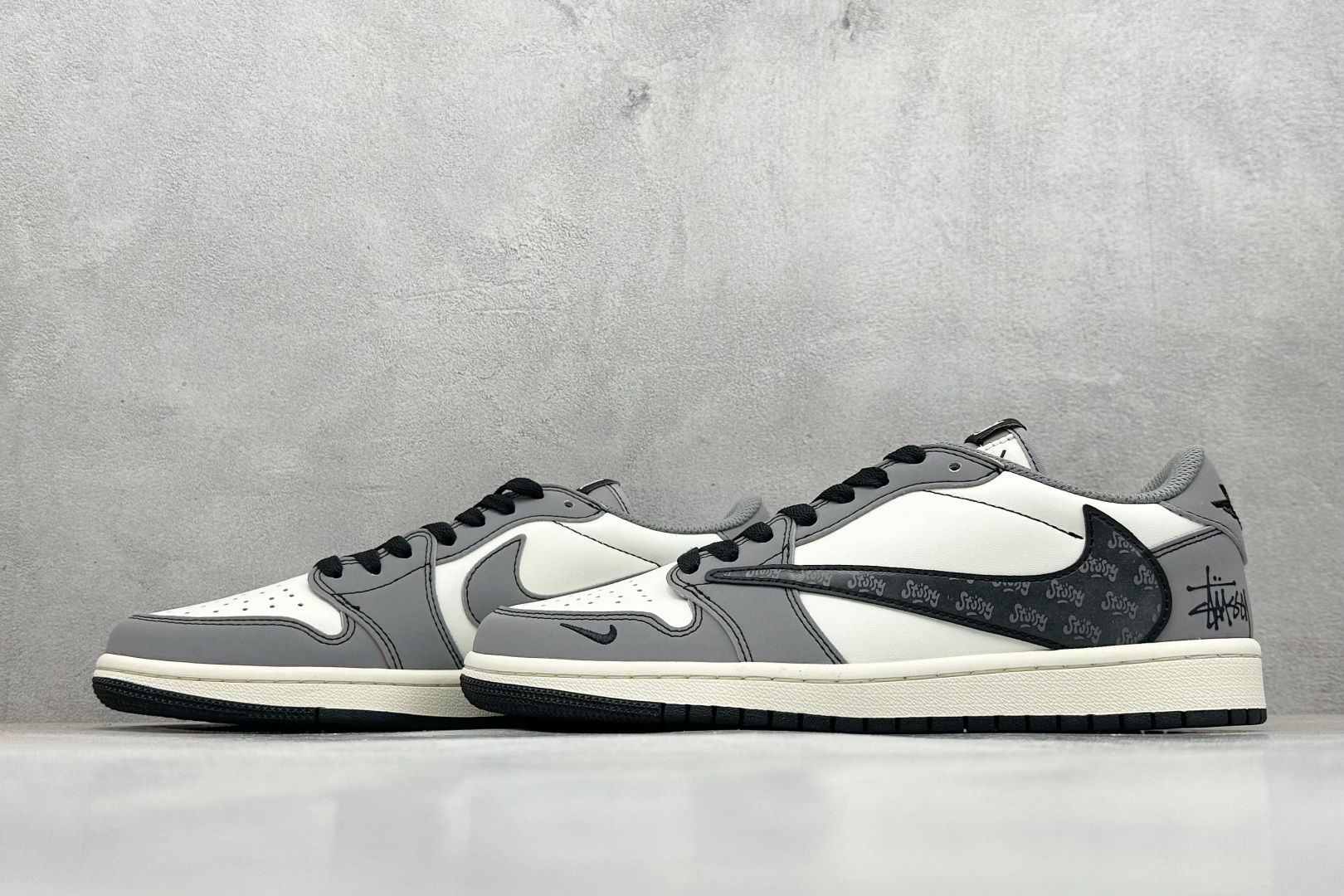Stussy x Travis Scott Air Jordan 1 Low 斯图西联名倒钩合作融合了Travis Scott 独特的潮流风格 个性的设计风格以及Jordan品牌的经典元素 使其成为一双具有独特身份和价值的鞋子 清新而立体的外观加上联名标识更突出了其独特身份 独有配色方案显示出活力和时尚感 在视觉冲击的同时 鞋身的质感和细腻的细节处理使其显得高端而格调十足 这款 倒钩 联名是设计与创意完美结合 融合多方的个性风格是一款备受瞩目的潮流鞋款 定制鞋盒 大厂纯原品质