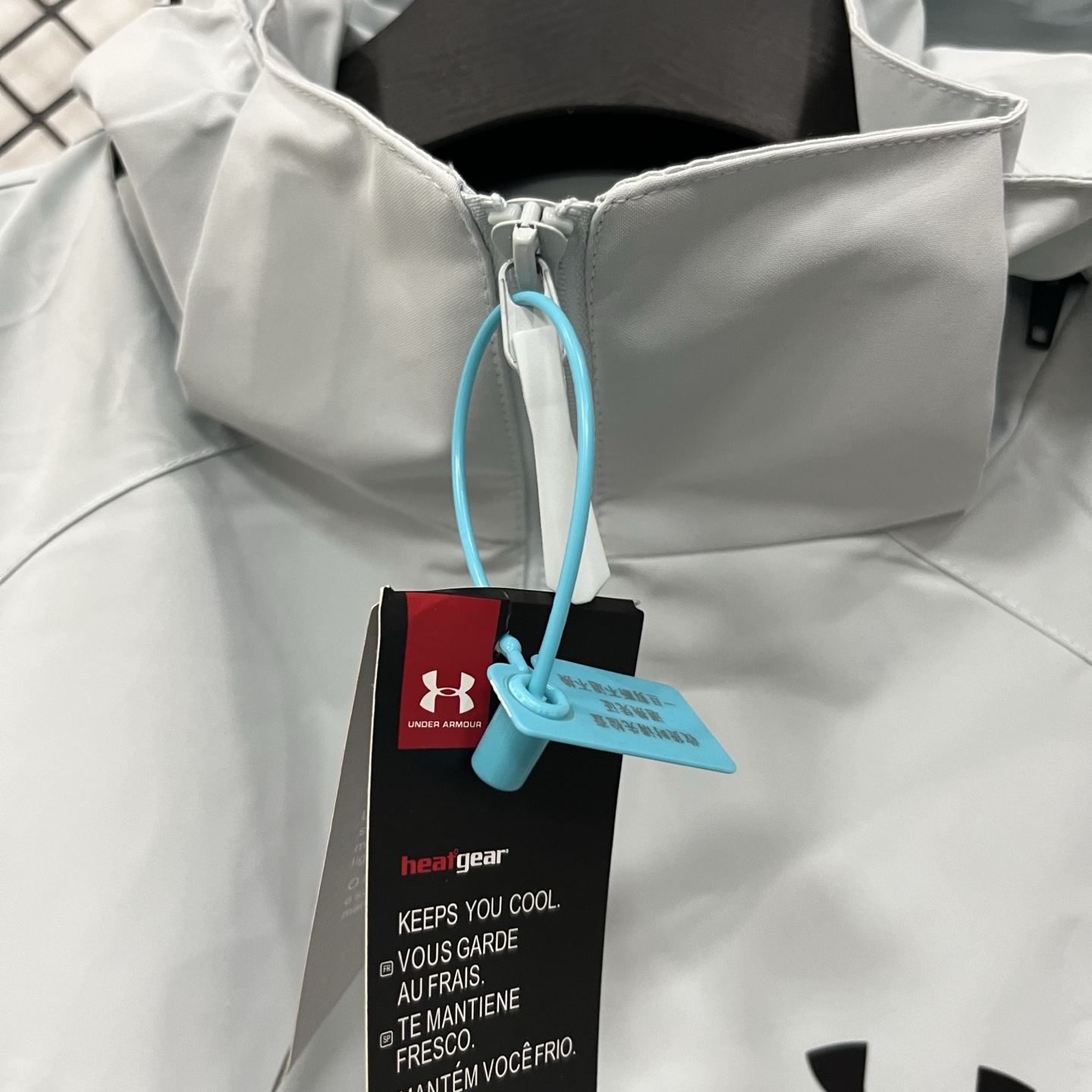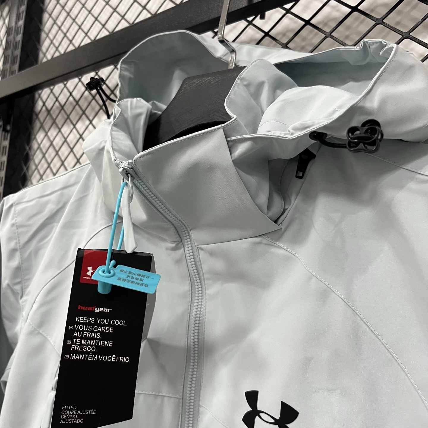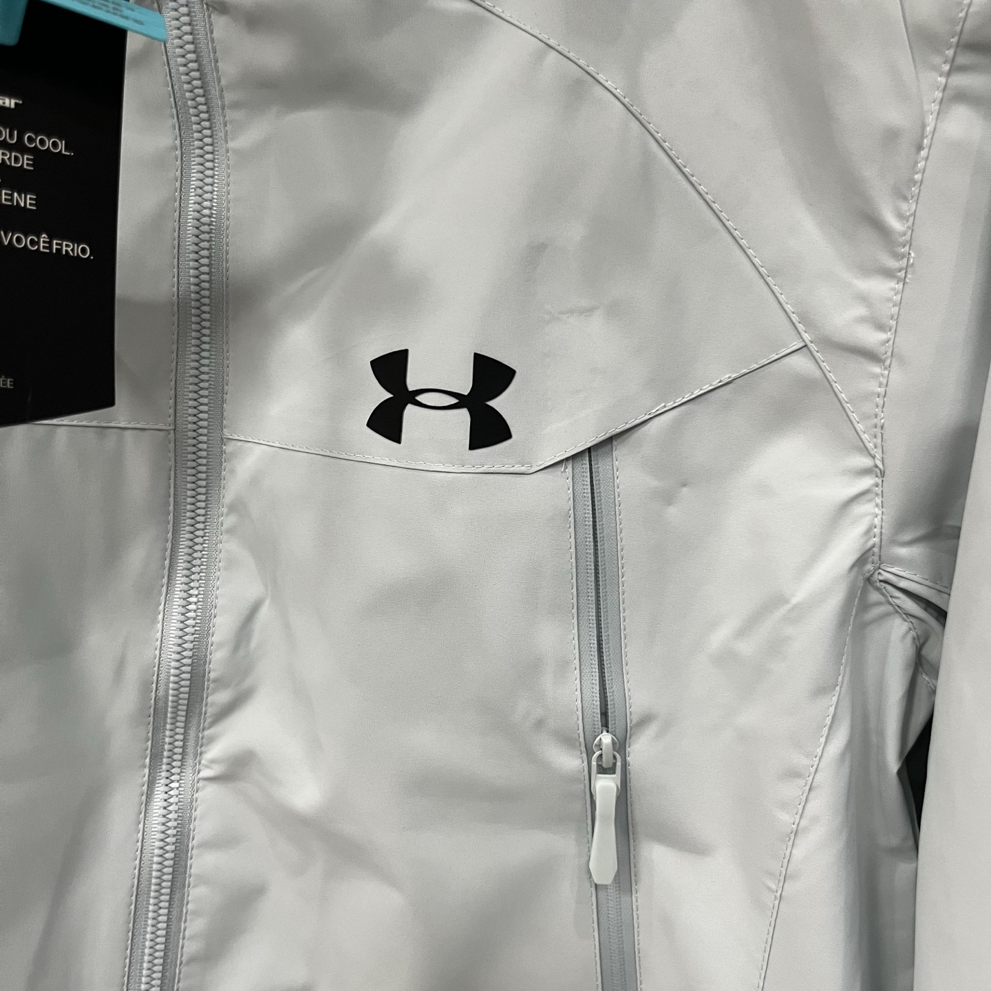 得物品质 安德玛Under Armour 连帽拉链纯色长袖 户外防水防雨冲锋衣 硅胶logo印花轻量连帽 男女同款 黑色 拼灰色 浅蓝色S 3XL
