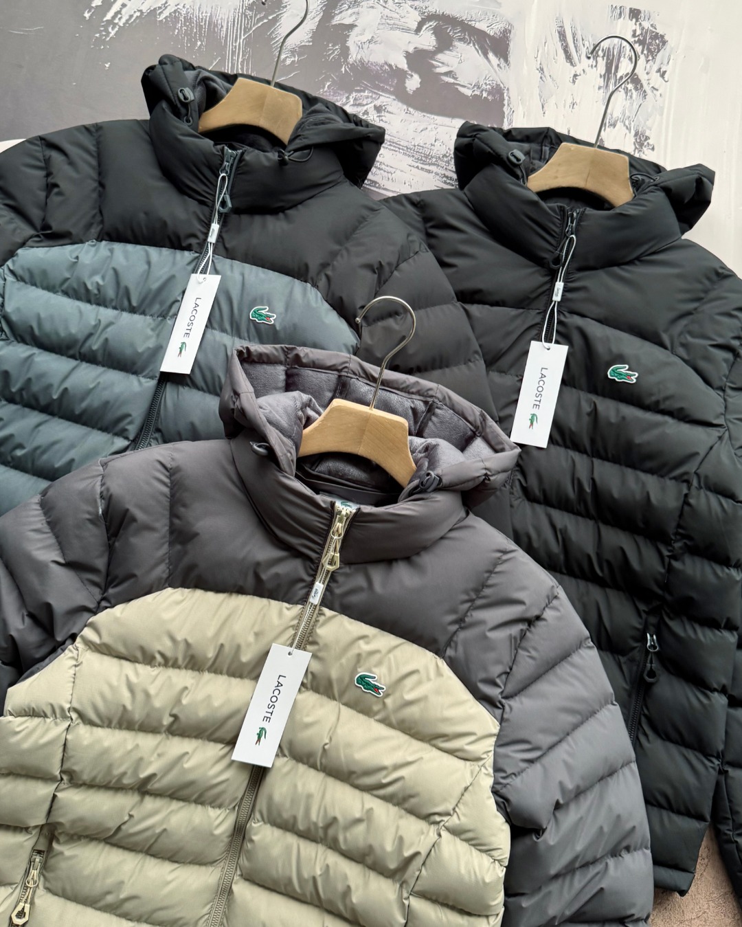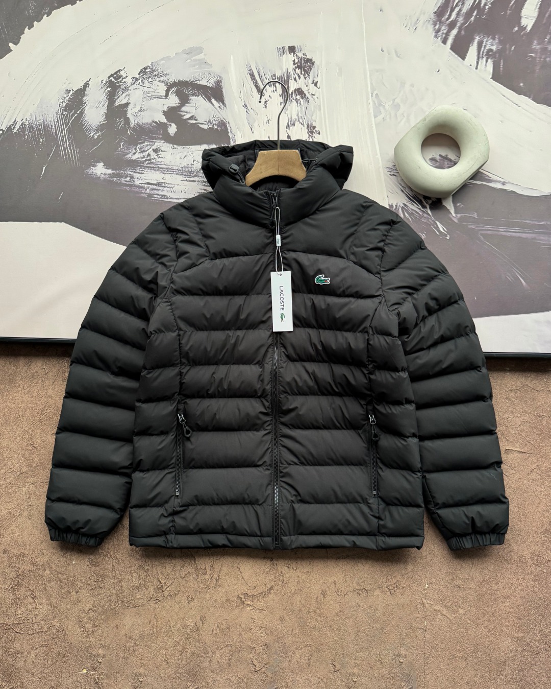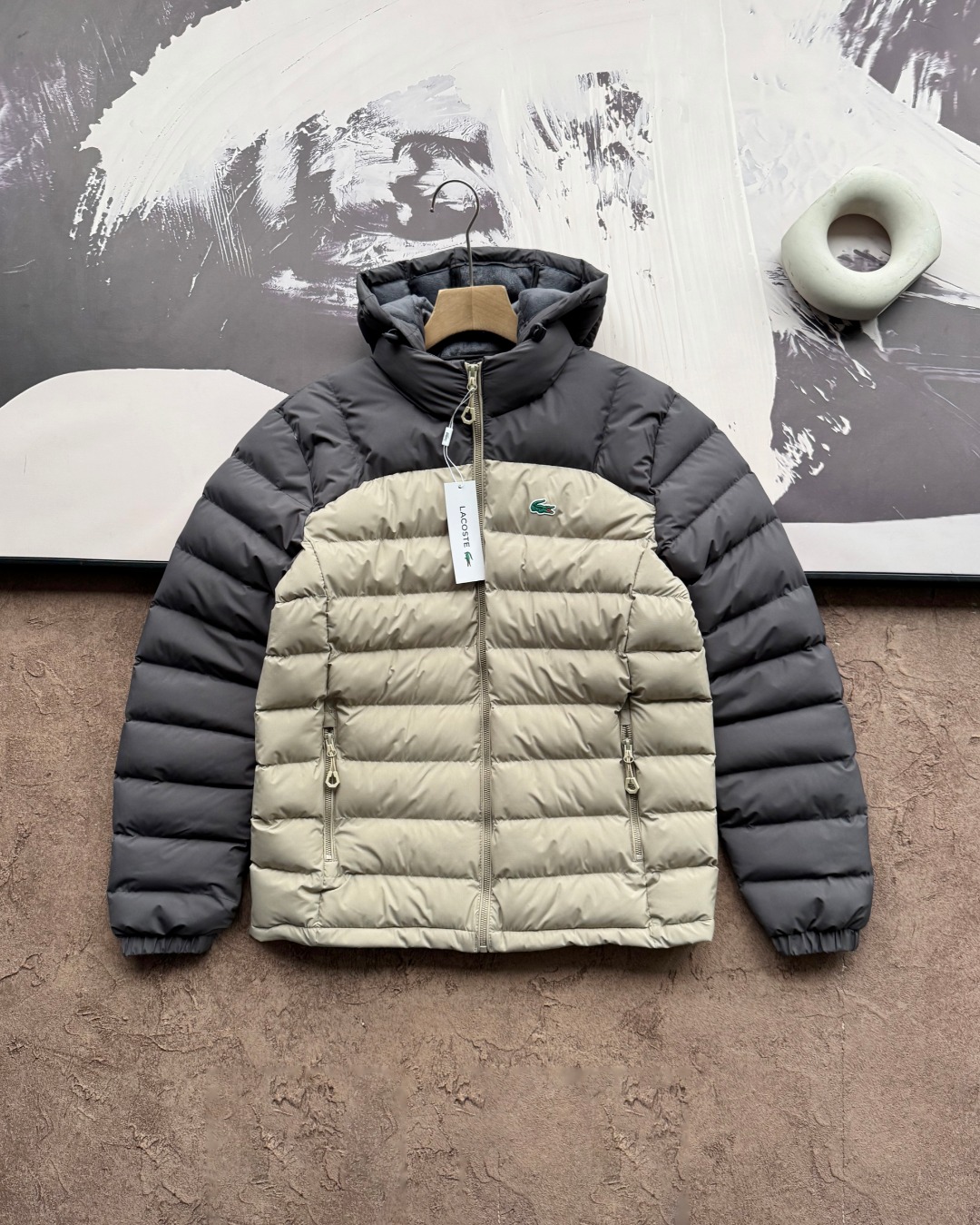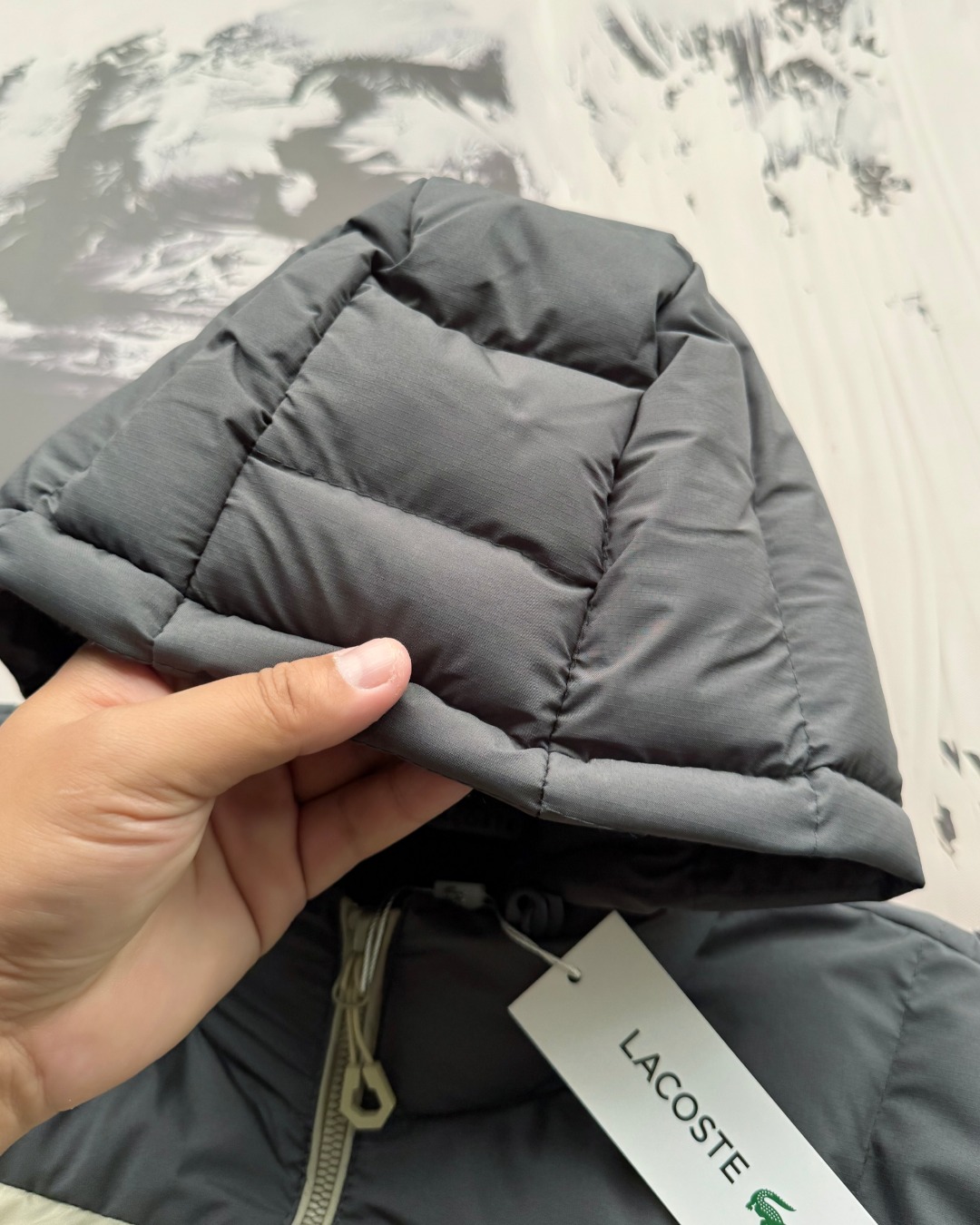 LACOSTE 法国鳄鱼硅胶LOGO加绒加厚羽绒棉服帽子可拆外套 男女同款