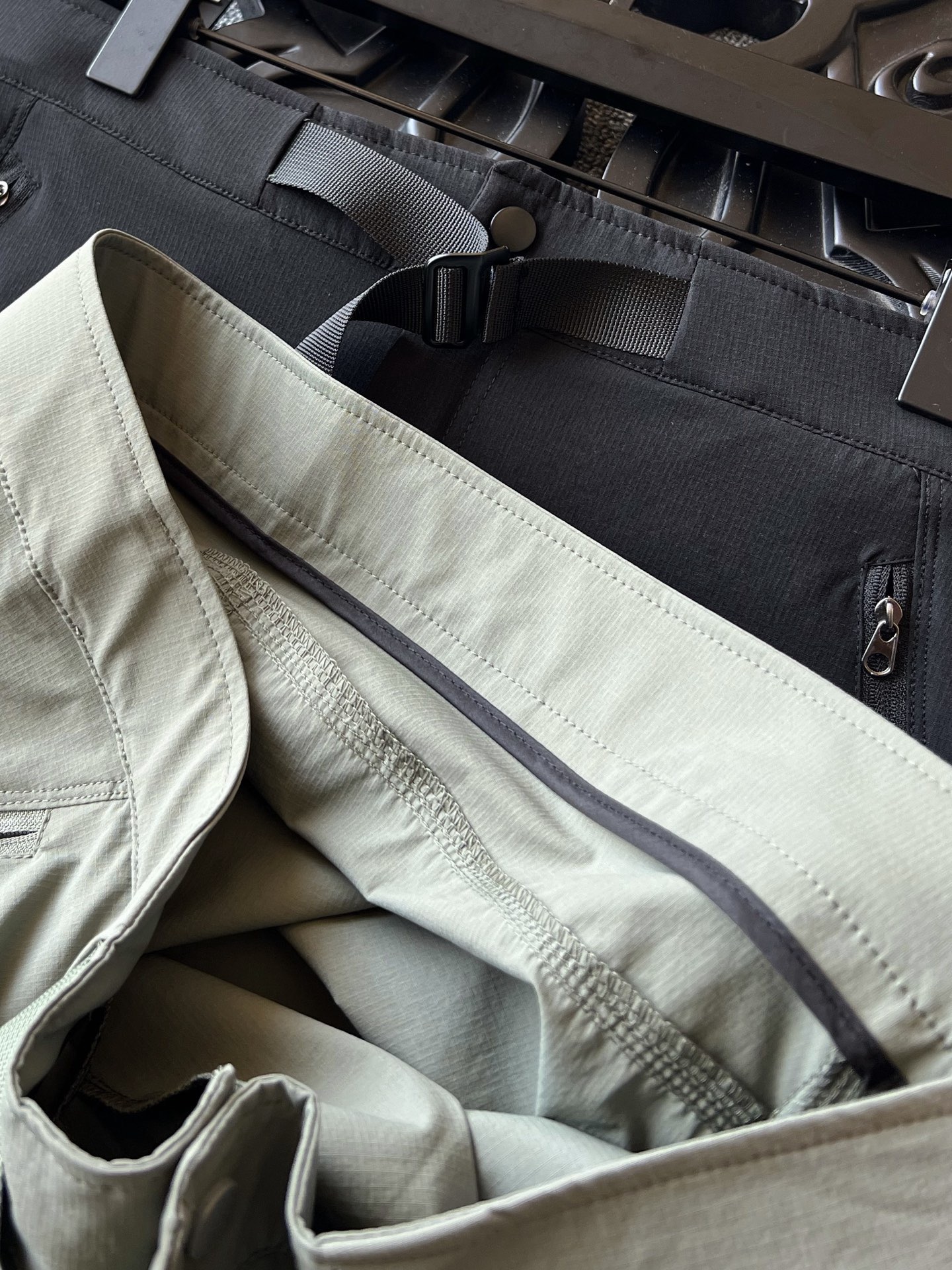 细节细节再细节 Zegna家商场新品轻奢户外运动五分裤 裤前标志性杰尼亚棕黑棕组合浮雕立体硅胶线条 摸起来带有层次感 十分精致 腰口带有卡扣式内嵌式腰带 可调节腰围大小设计满足不同场景穿搭方式 定制拉链以及内里包边天花板级外贸出口做工