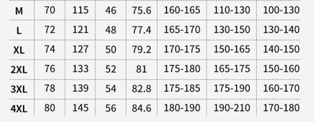 尺码 M 4XL