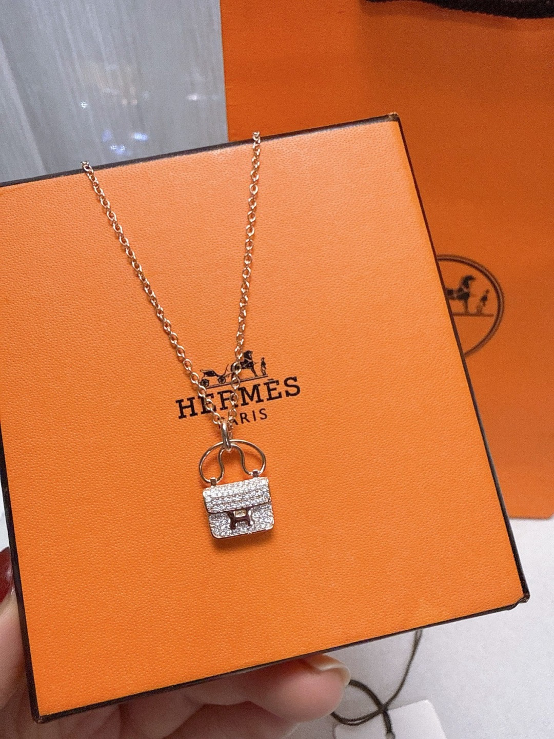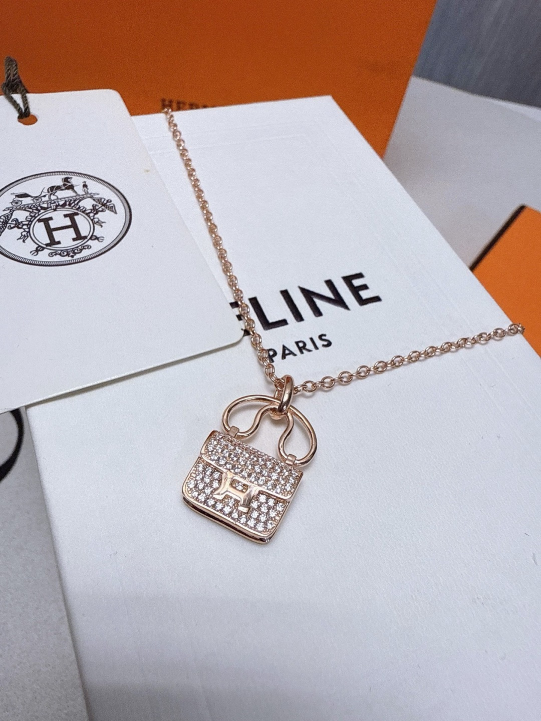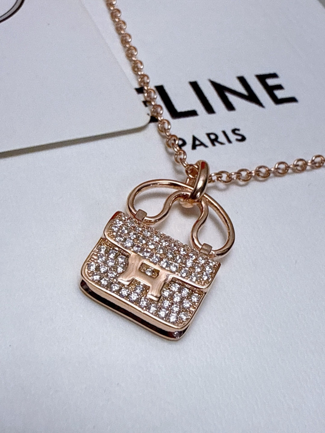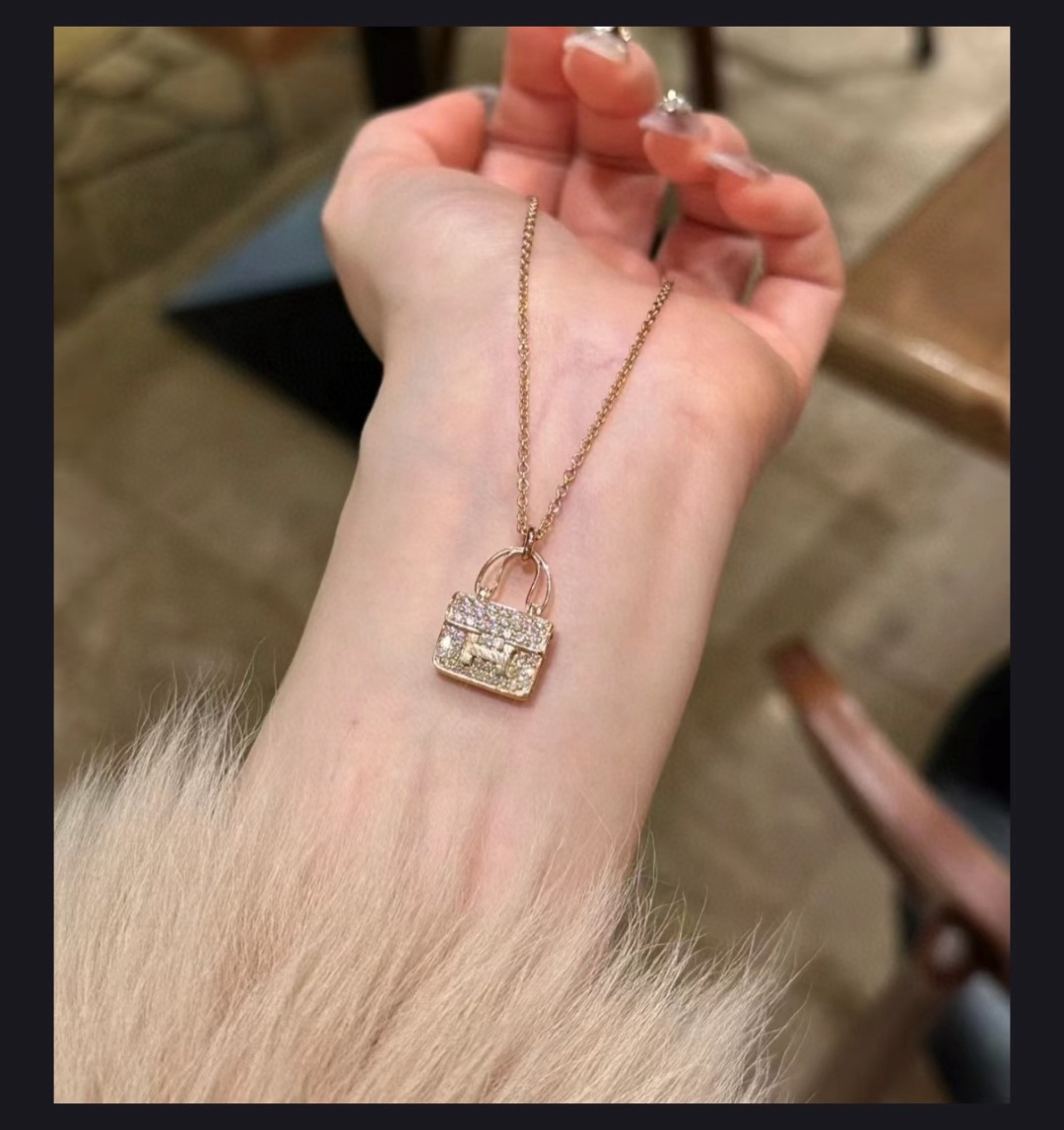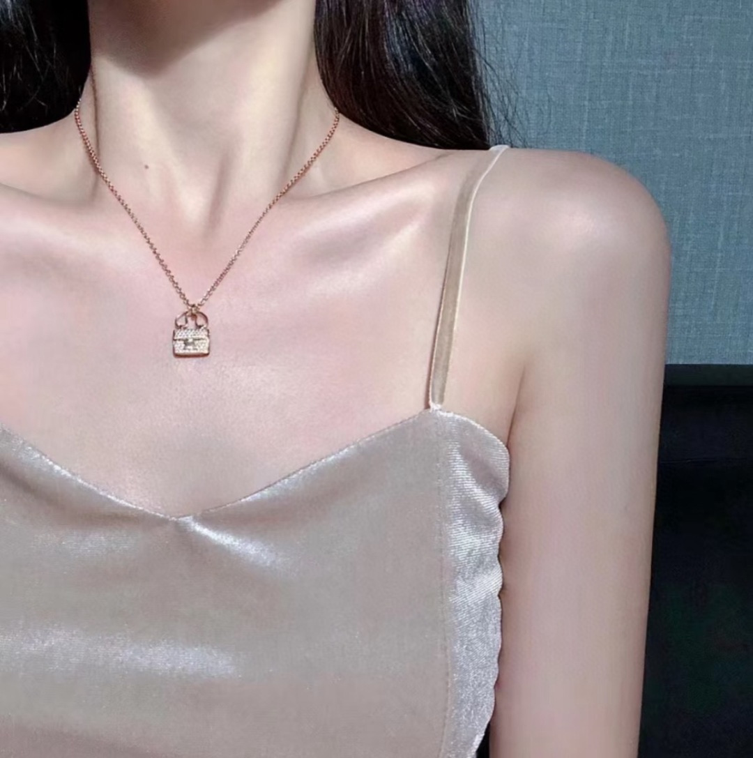 特价所见所得高品质礼盒全套 不退换 爱马仕满钻包包款项链玫瑰金色爱马仕新款H包包项链 色 色 经典 凯莉 原版 喜哥同款 爱马仕 满钻包包项链 S925银高端定制 电镀18k金工艺 色 色 好别致 实心包包各种细节难以取舍各种百搭精致女人