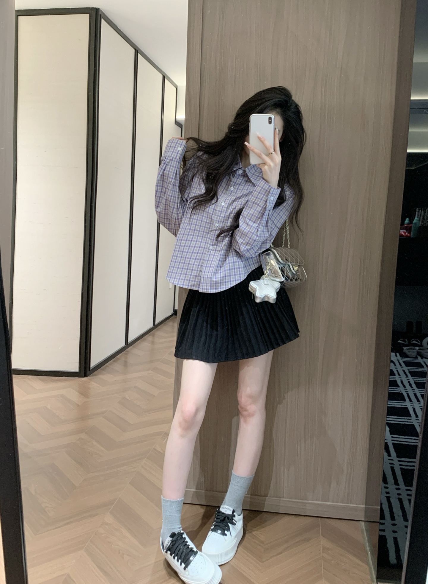 Chanel香奈儿小香字母立体刺绣格子衬衫