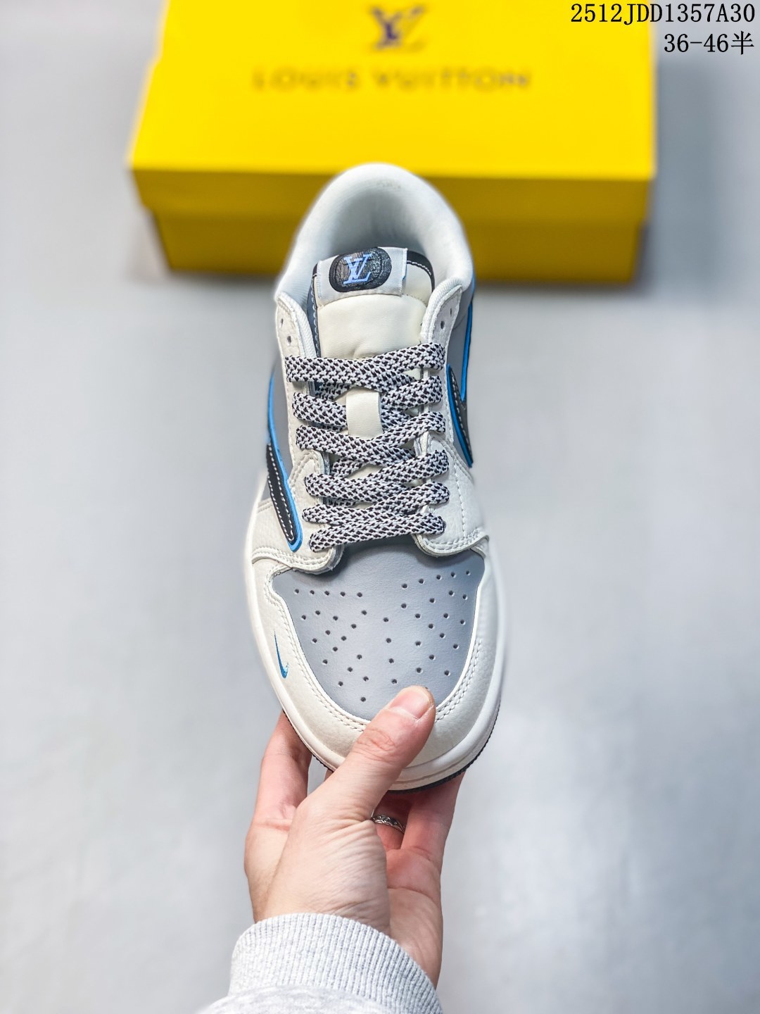 Travis Scott x Fragment Design x Jordan Air Jordan 1 Low OG SP 迪奥联名 天蓝米白 多方联名合作融合了Travi翻毛蓝勾s Scott 独特的音乐风格 藤原浩个性的设计风格以及Jordan品牌的经典元素 使其成为一双具有独特身份和价值的鞋子 清新而立体的外观加上联名标识更突出了其独特身份 这种配色方案显示出活力和时尚感 在视觉上引人注目 鞋身的质感和细腻的细节处理使其显得高端而格调十足 这款 倒钩 联名是设计与创意完美结合 融合多方的个性风格是一款备受瞩目的潮流鞋款 低帮休闲板鞋 定制鞋盒 大厂纯原品质出货 超高清洁度 皮料切割干净无任何毛边 细节完美
