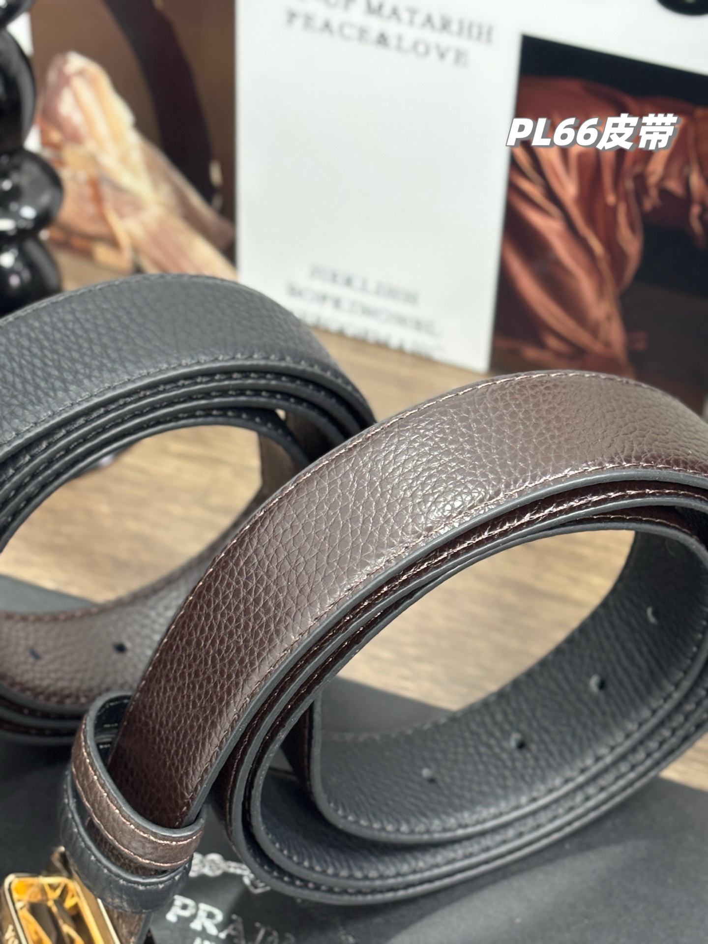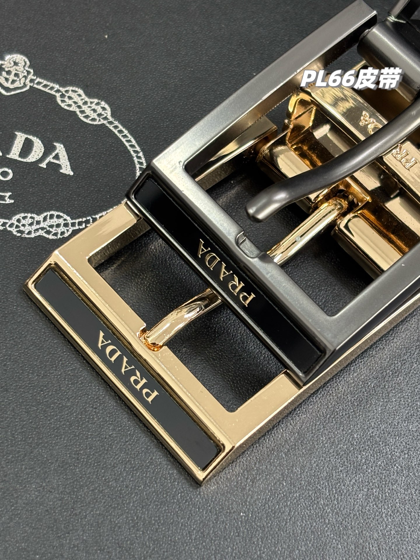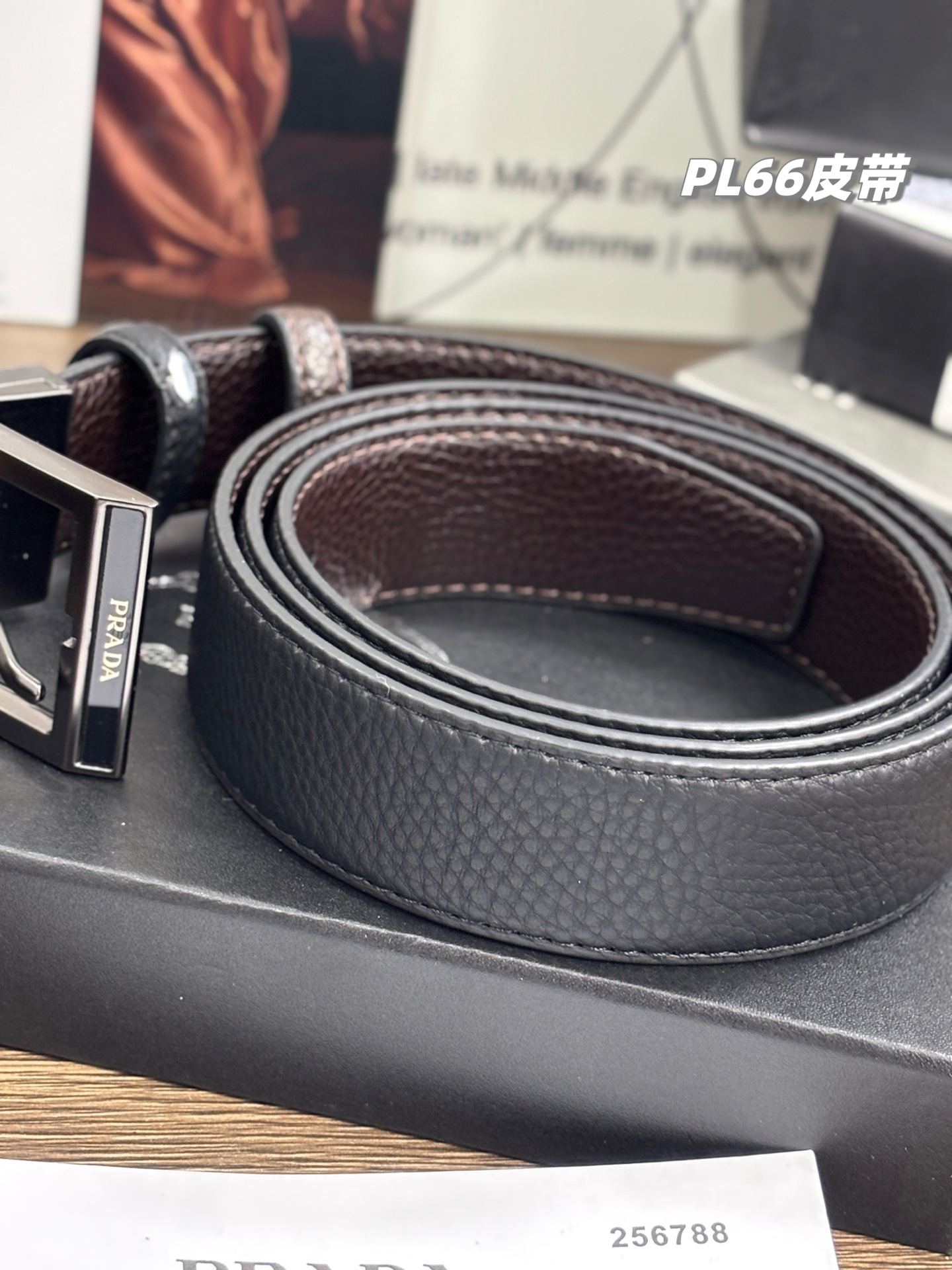 盒 稀有珍品 2025最新纯正贸易公司货 普拉达PRADA男士双扣双面腰带 男士皮带礼盒装 一盒搭配2个可旋转扣头 1根双面可用的皮带 一面棕色 一面纯黑 相当于花一根皮带的钱买了4根皮带 宽度3 5cm