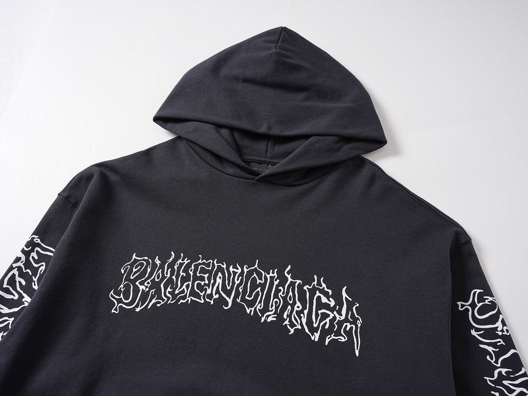 实拍图 顶级版本 官网品质 BALENCI GA 巴黎 2024新款胸前才梵文LOGO模糊直喷印花连帽卫衣 砖柜同步 第一时间正品研制 欢印对比 面料采用巴黎ZP定织定染全棉大卫衣 克重460克 布面干净 布纹清晰 柔软舒适 螺纹釆用定染无色差 经典LOGO采用环保进口材料印花 花纹字母清晰 效果立体 还原砖柜 巨别市场通货 欢迎对比 版型釆用OS宽松落肩版型 男女同款