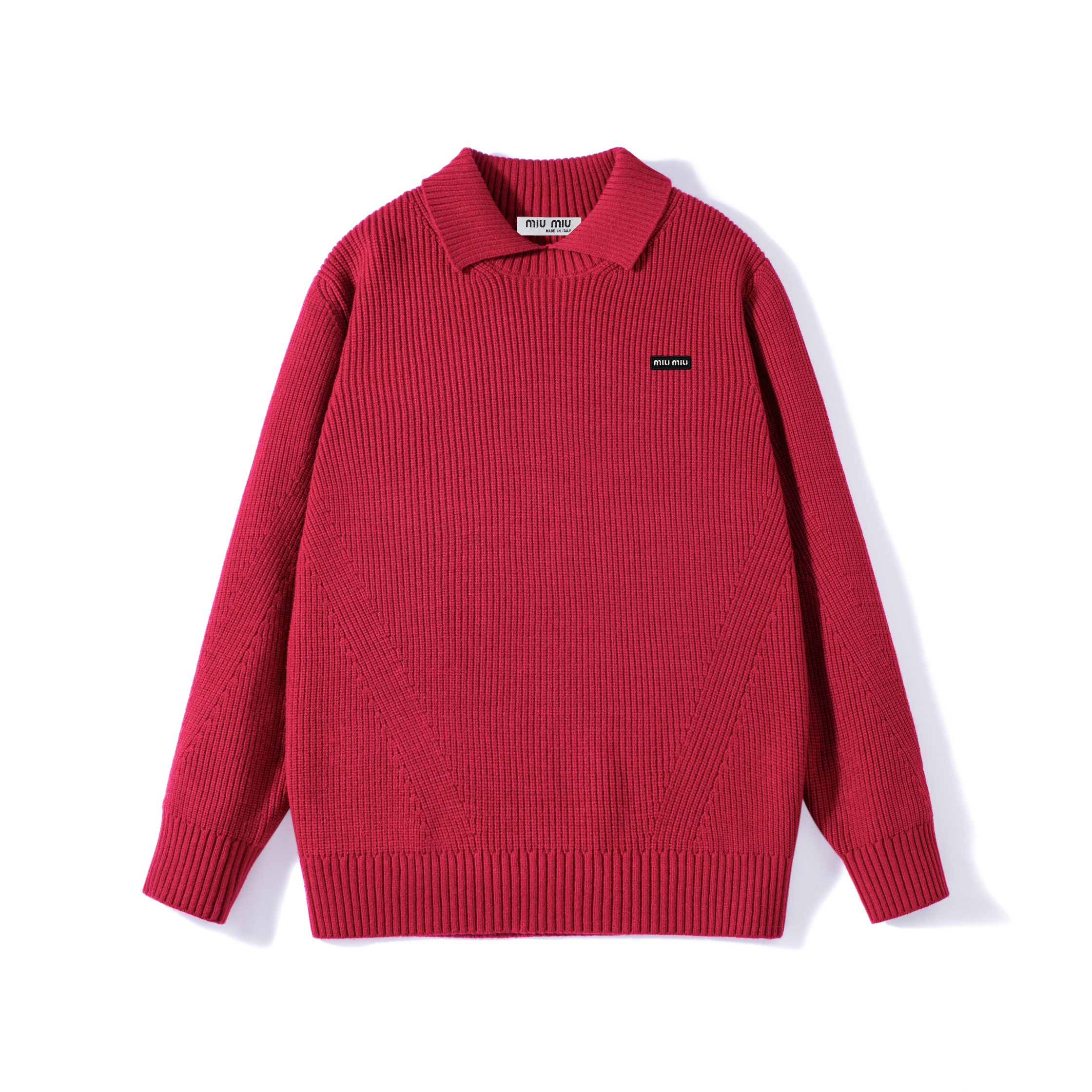 售后不停 供 MIUMIU绣标翻领针织毛衣