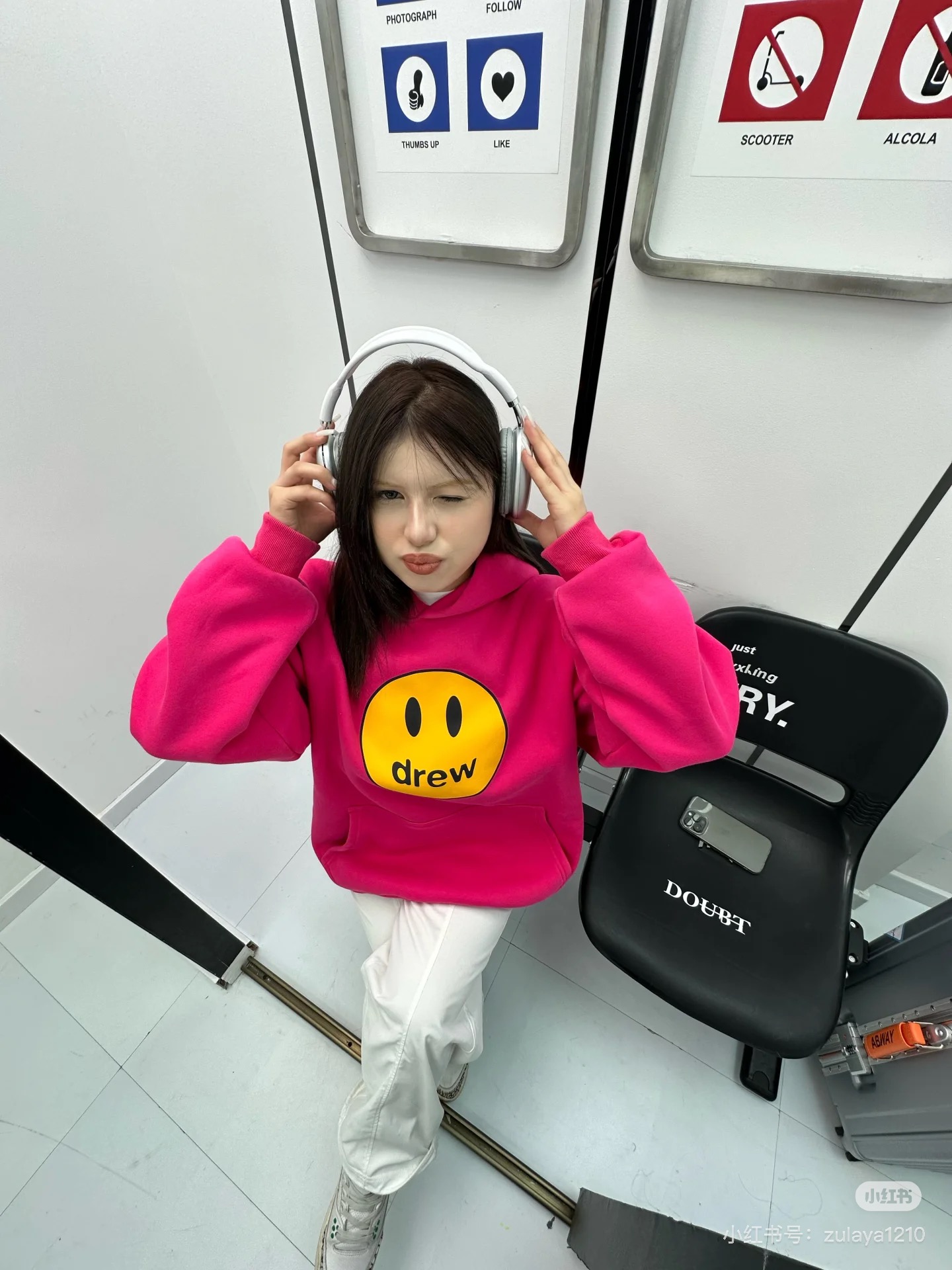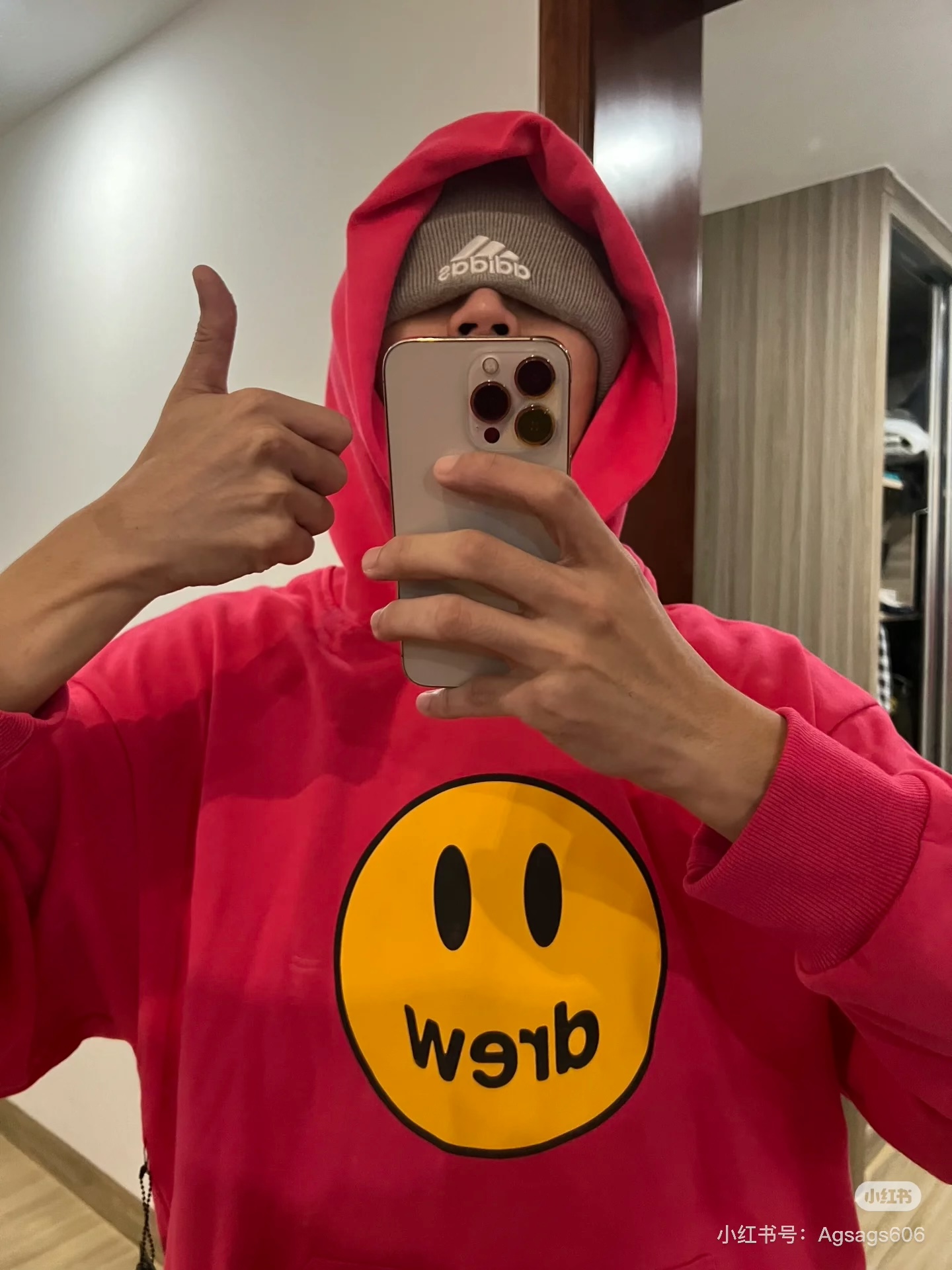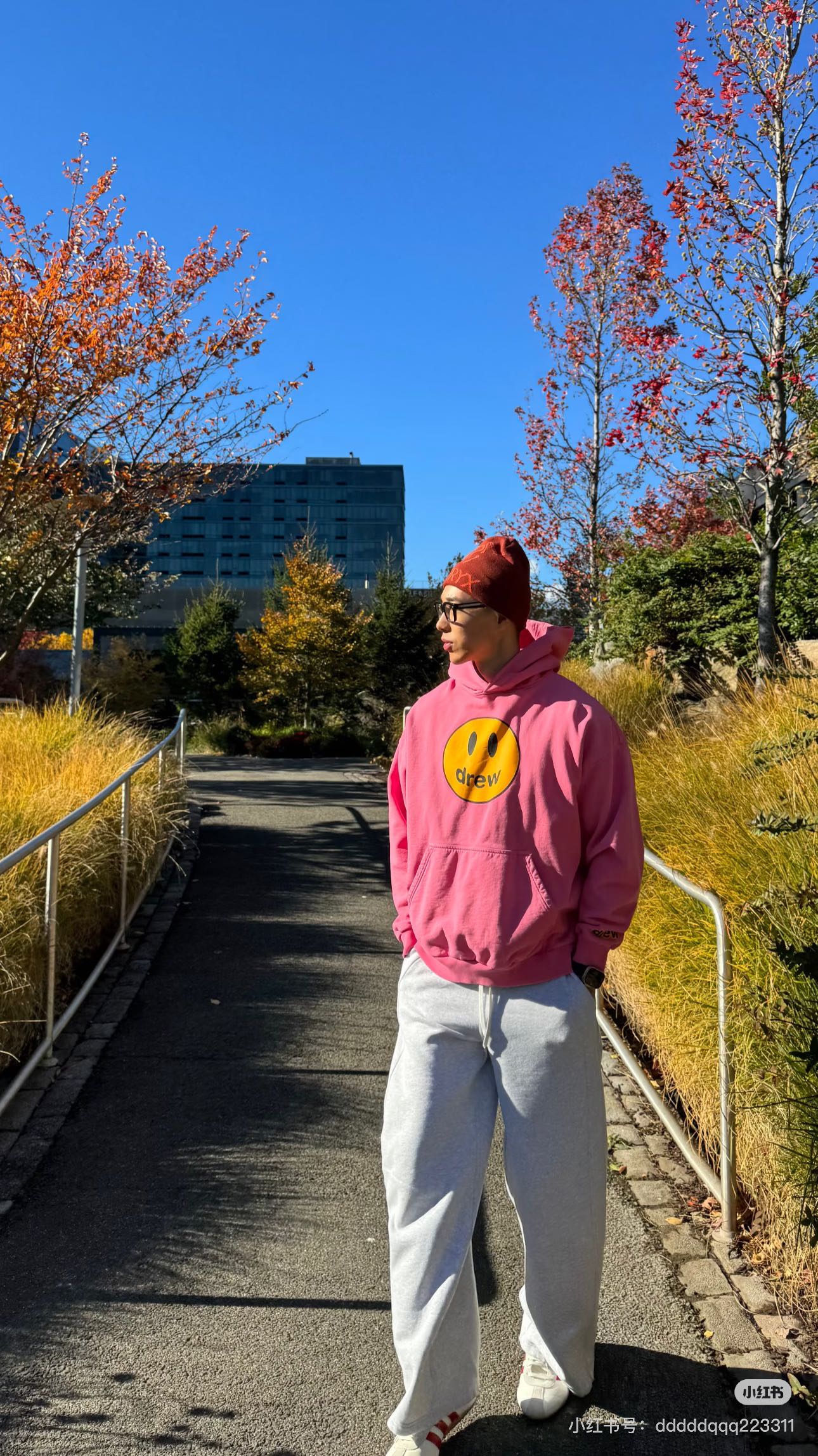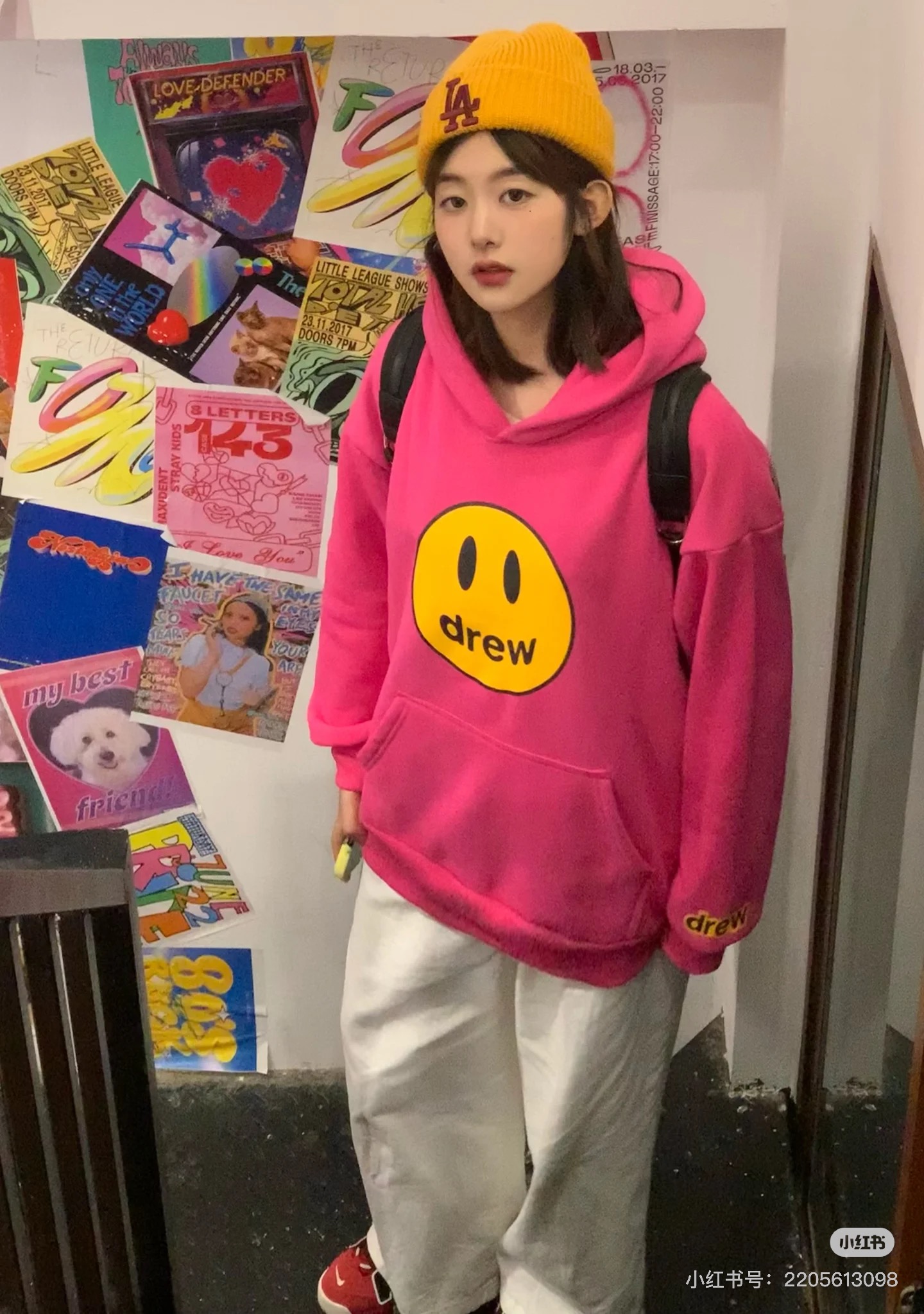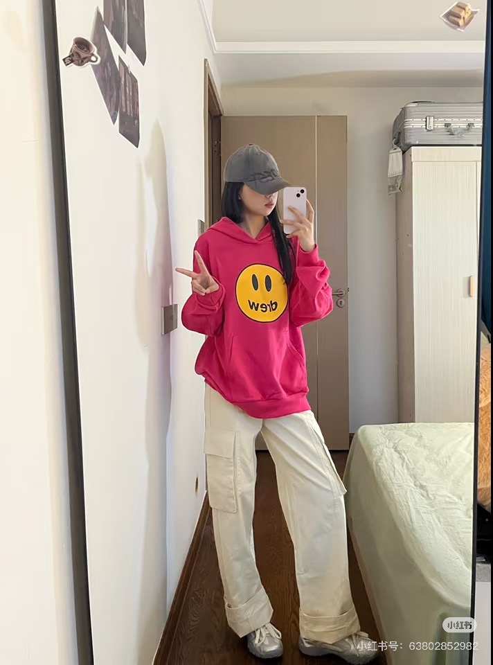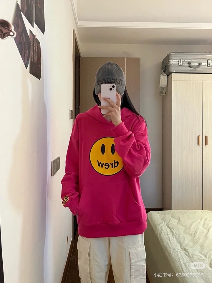 DREW HOURS 基础色系笑脸印花 轻奢时尚连帽卫衣 男女同款