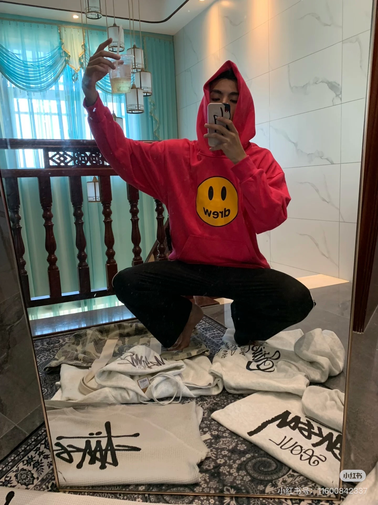 辅料 姜黄色主唛 满印drew大卡 笑脸圆卡 drew胶牌钥匙扣 防伪洗水唛 防盗扣 防尘纸 新款包装袋