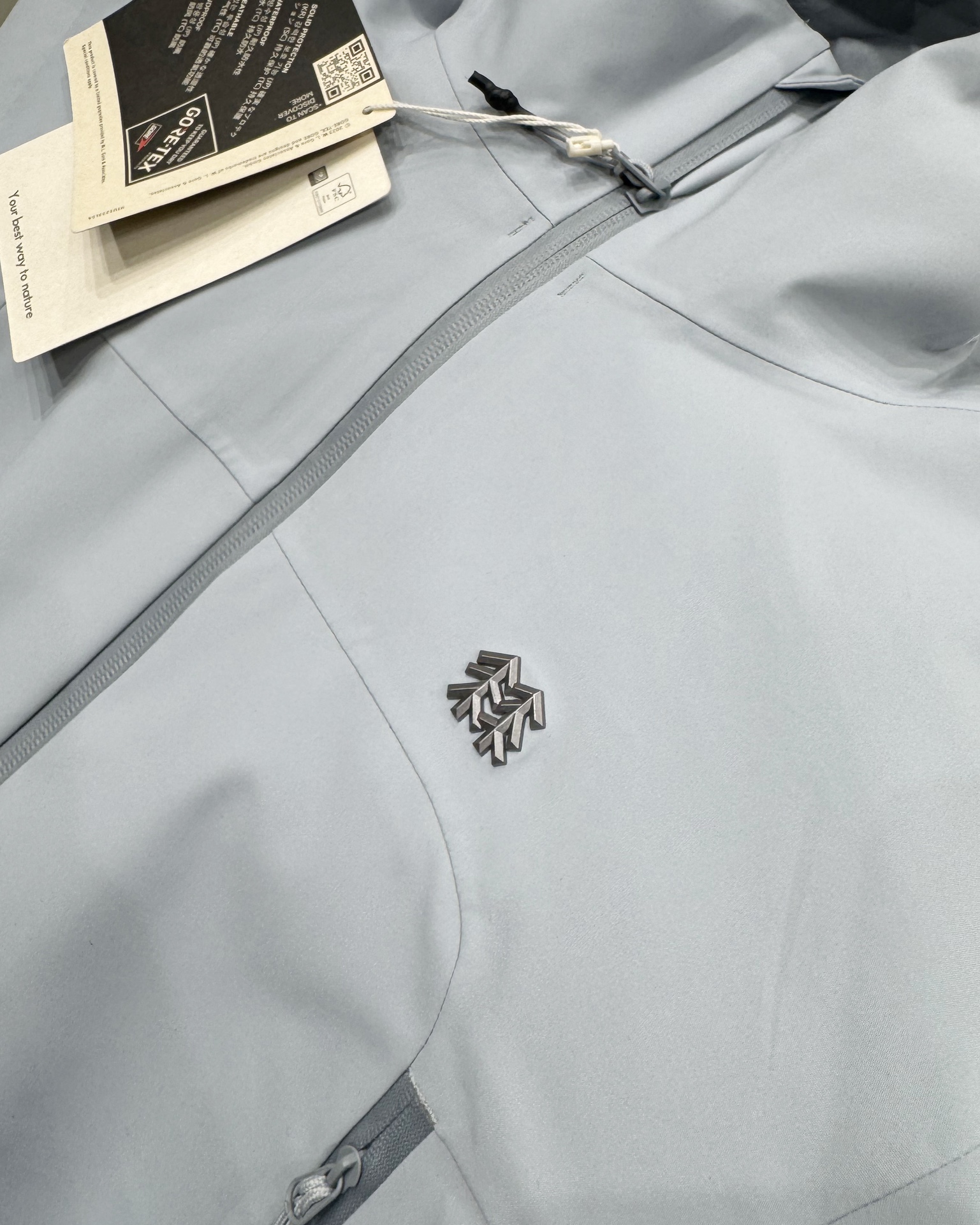 面料采用bluesign认证的面料 轻薄而耐磨 防风 防水且透气 内胆白鸭绒填充 轻便保暖 内置拉链结合 适合各种户外 旅游活动