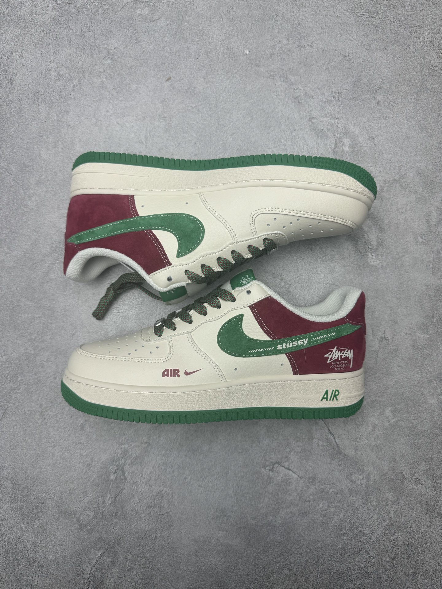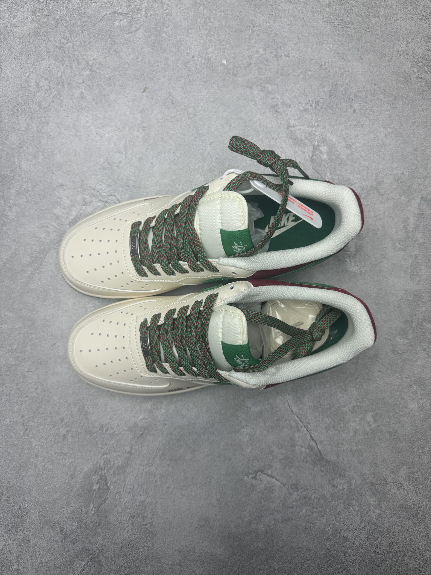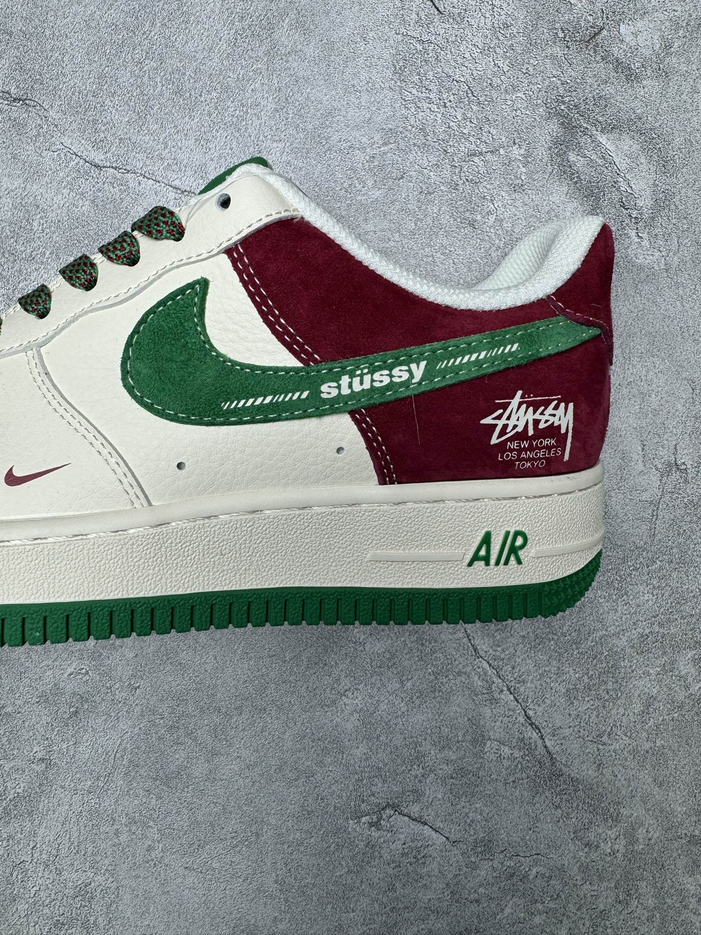 海外爆款限量发售 高端定制Nike Air Force 1 07 Low 斯图西联名 米白红绿麂皮 高端定制 低帮休闲板鞋 定制鞋盒 大厂纯原品质出货 超高清洁度 皮料切割干净无任何毛边 细节完美