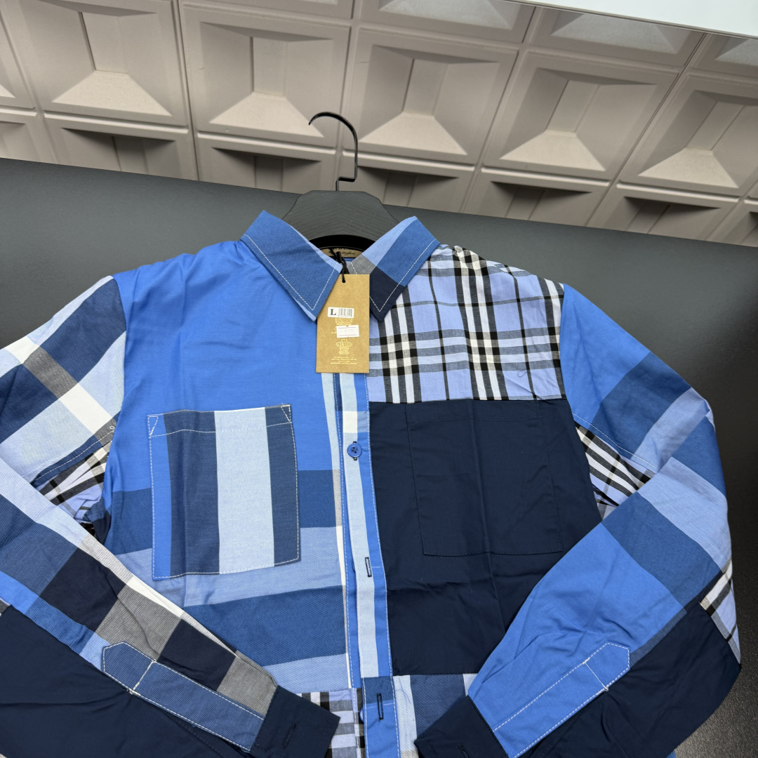 春夏新款上新爆炸输出巴宝莉翻领长袖衬衫 满身满印不规则条纹格子图案 三标齐全官网一致 放大看细节原相机实物拍摄 颜色 蓝色 尺码 L 4xl L 80 105斤 XL 105 120斤 2XL 120 140斤 3XL 140 160斤 4XL 160 180斤