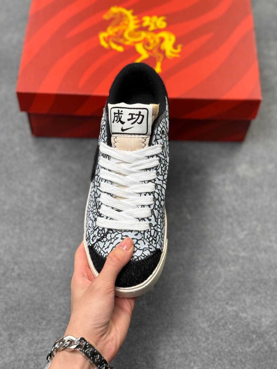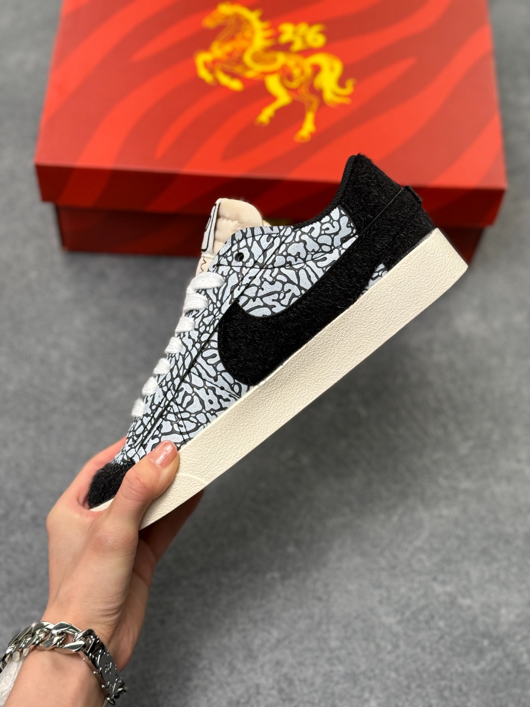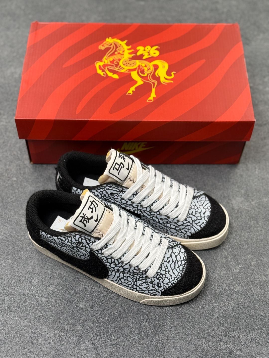 独家实拍Nike Blazer Low 77 Jumbo 马年限定 全新焕新升级经典 Blazer 鞋款 大号 Swoosh 突出新时代更加张扬的潮流感 对经典的又一次改良升级 大号 Swoosh 设计结合宽大鞋带 符合当下潮流意趣 橡胶外底融入凸起人字形底纹增添几分户外感觉 货号 DQ1471 131