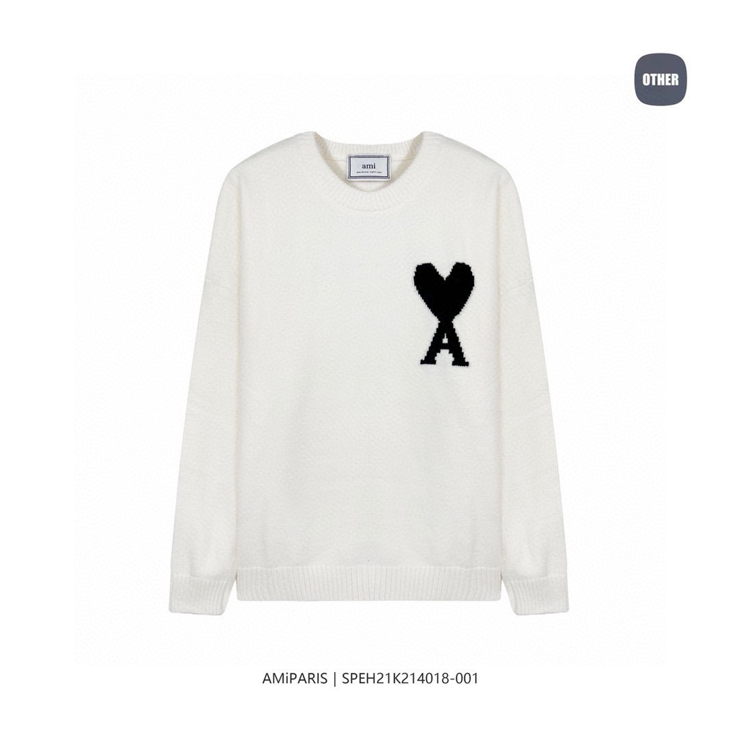 高品质 Ami Alexandre Mattiussi超高克重 秋冬新款爱心针织圆领毛衣 男女同款 秋冬极简穿搭推荐 大爱心字母A组合刺的绣徽章 招且牌高识别度的点缀 这样的圆领羊毛混纺开衫 实在无法拒绝 法式的浪漫情怀 模糊休闲与正式的界限 打造出一种慵懒随性的毛衣风格 经典调的圆领毛衣 加宽厚的螺纹收口 宽松精裁的优质作品 百搭又颇具辨识度