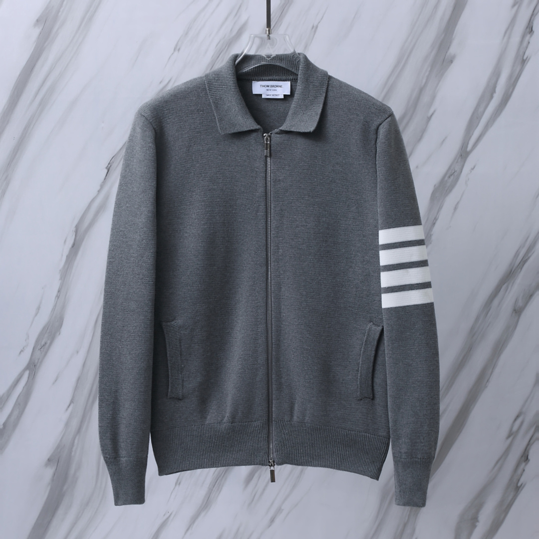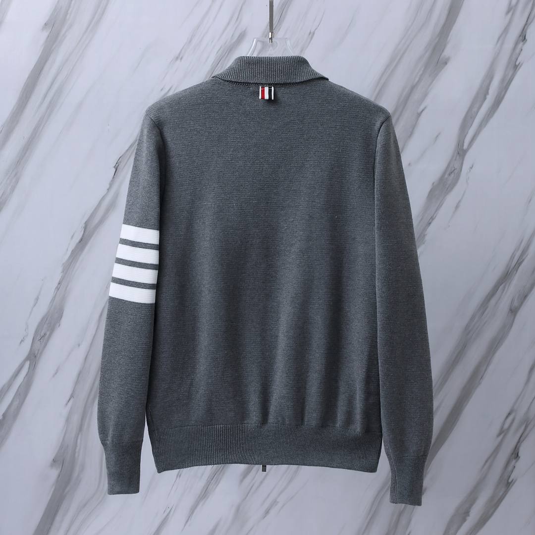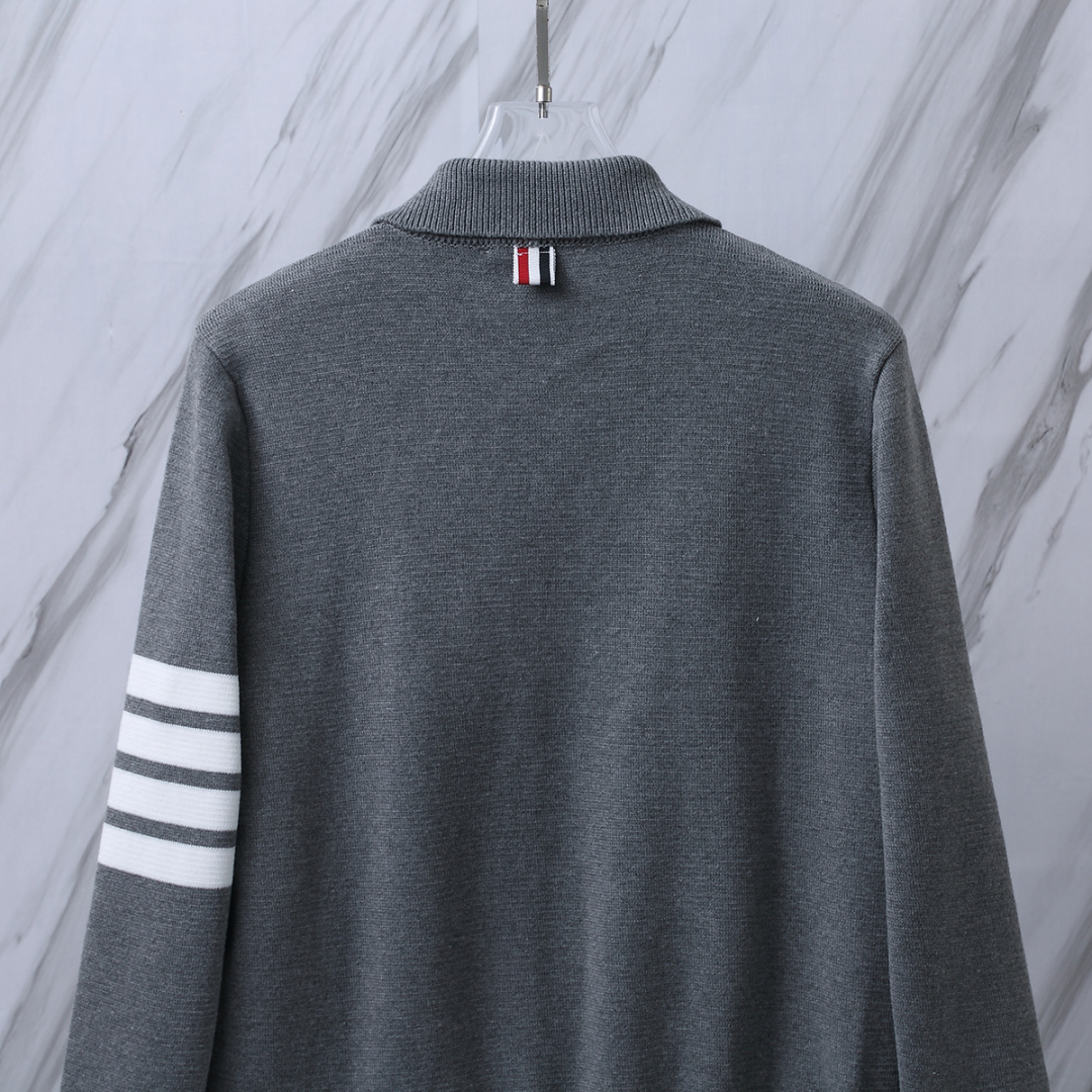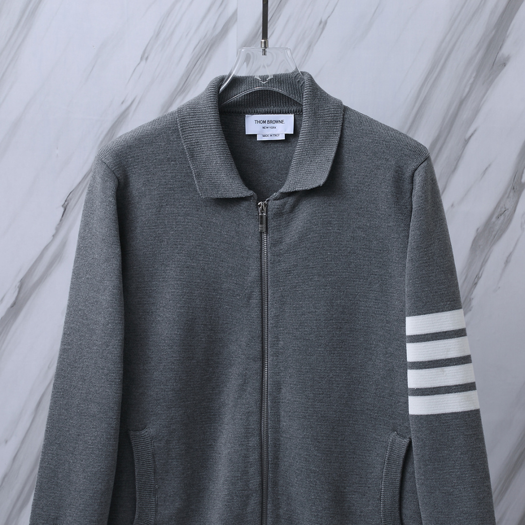 货号 T B M63 TB翻领四道杠条纹拉链夹克针织毛衣