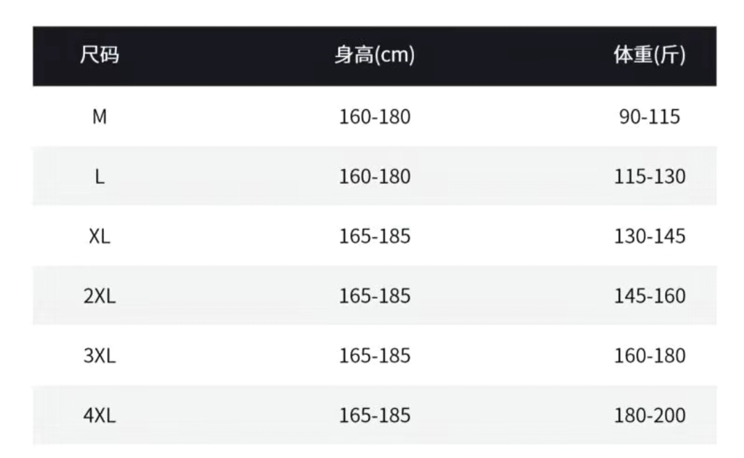 尺码 M 4XL