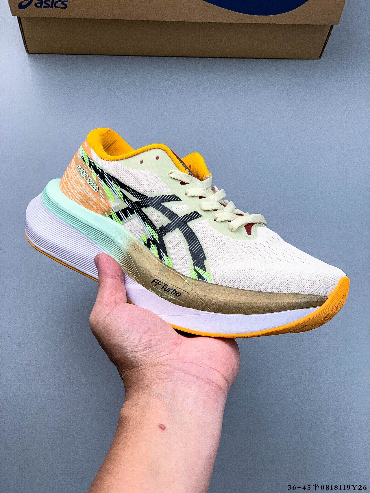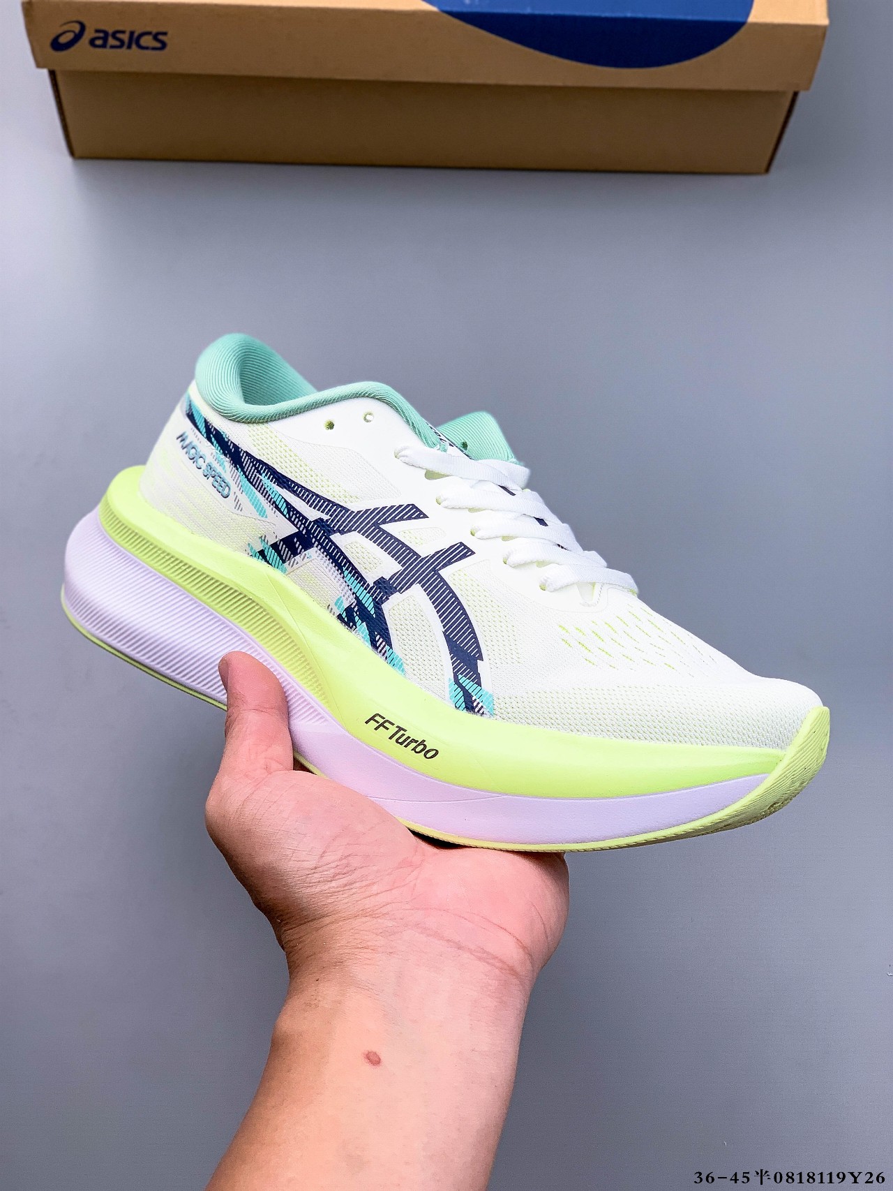 Asics 亚瑟士MAGIC SPEED 4稳定跑鞋鞋面采用双层提花网面设计 提高包裹性和透气性 后跟搭载稳定系统科技T GEL提升整体支撑力和结构感 减少对身体带来的冲击负荷 创新中底至轻回弹 0818119Y26