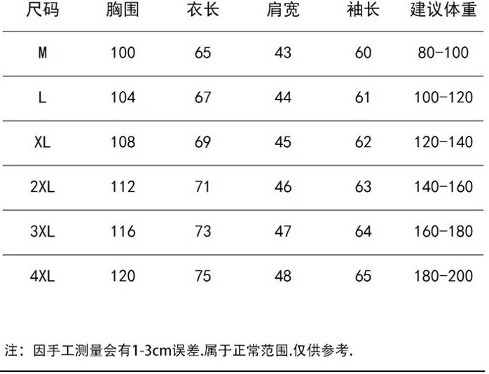 尺码 M 4XL