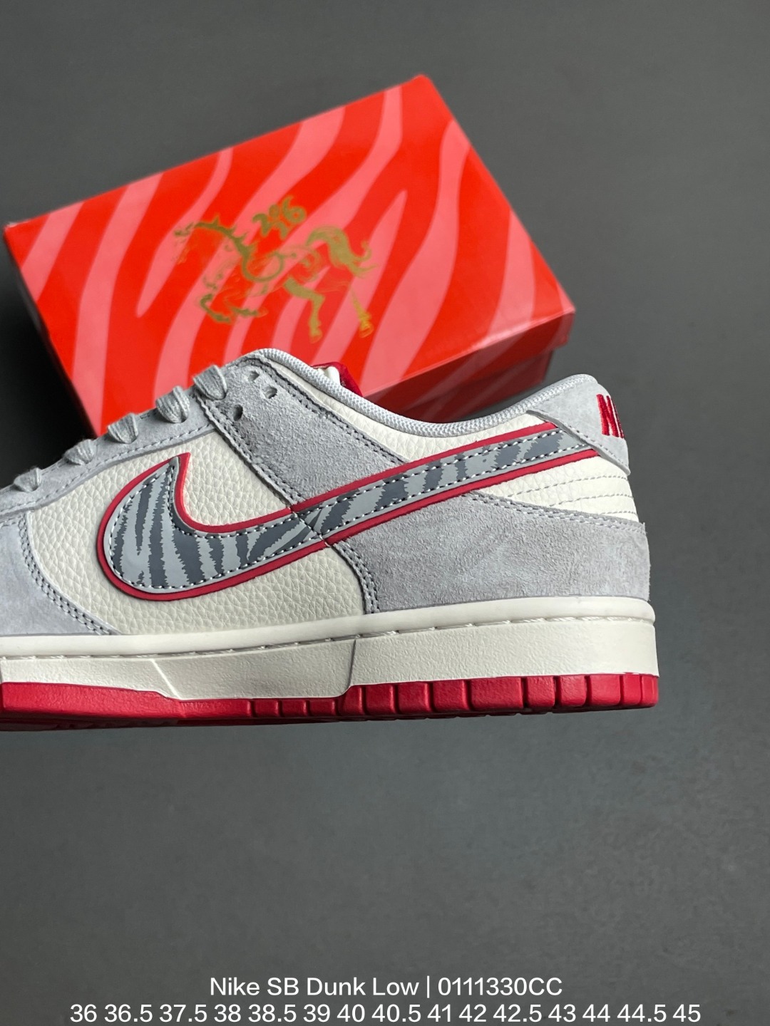 Nike 耐克 采用固色猪巴革组合荔枝纹牛剖革鞋面材质 大厂水平严控清洁度 缜密拉帮中底布 鞋垫嵌EVA缓震物料及背胶 全新窄版翘头耐磨橡胶大底2026马年创意定制配色 耐克Nike SB Dunk Low Year of the Horse 扣篮系列低帮休闲运动滑板板鞋