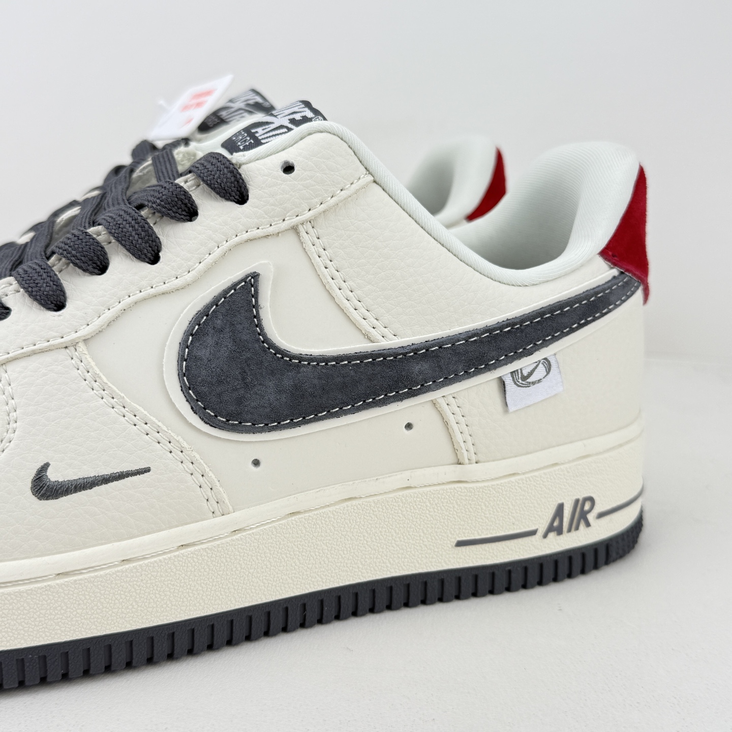 海外限量发售 公司级NIke Air Force 1 07 Low NIKE灰 米灰红猪八革 空军一号 低帮 运动鞋 休闲鞋 折边针车 工艺难度大 原楦头原纸板 原装鞋盒 定制五金配件 内置全掌气垫 原厂鞋底