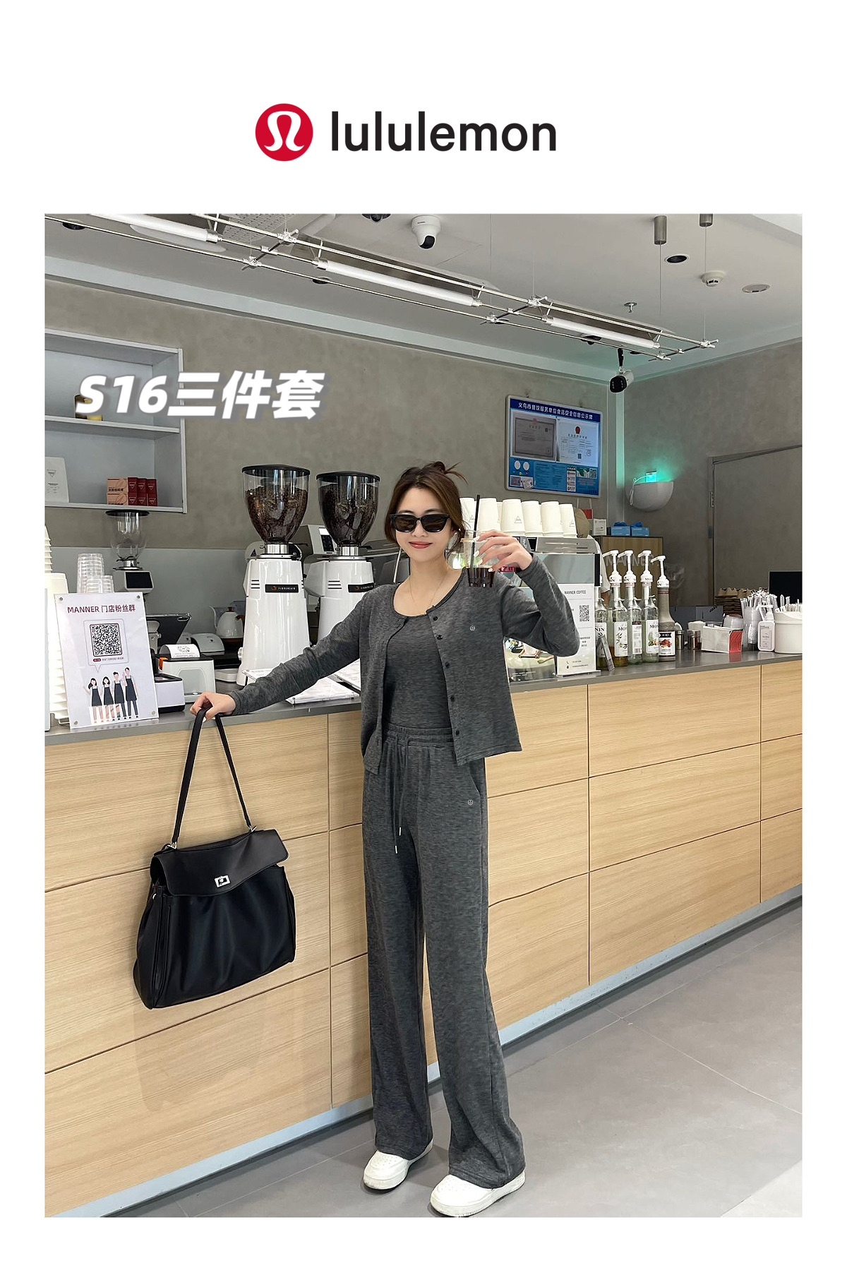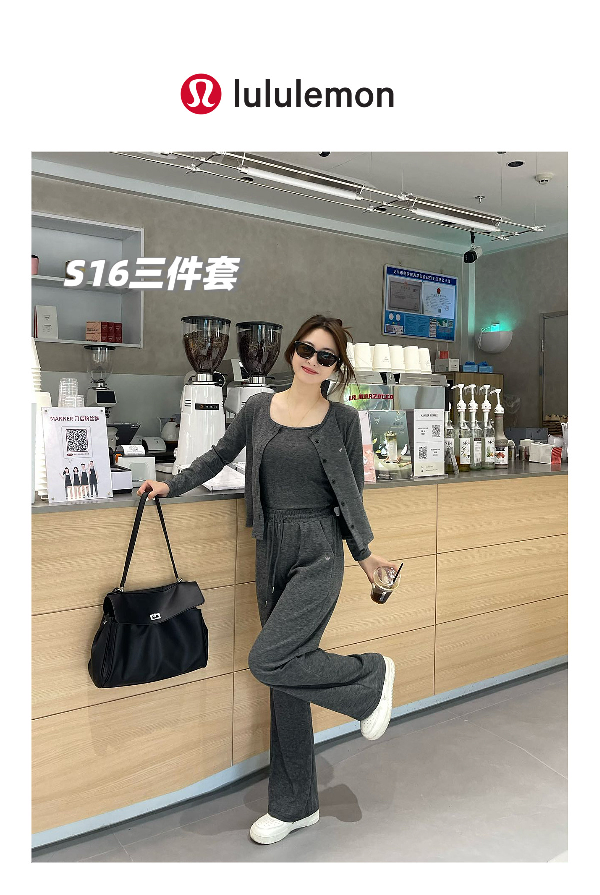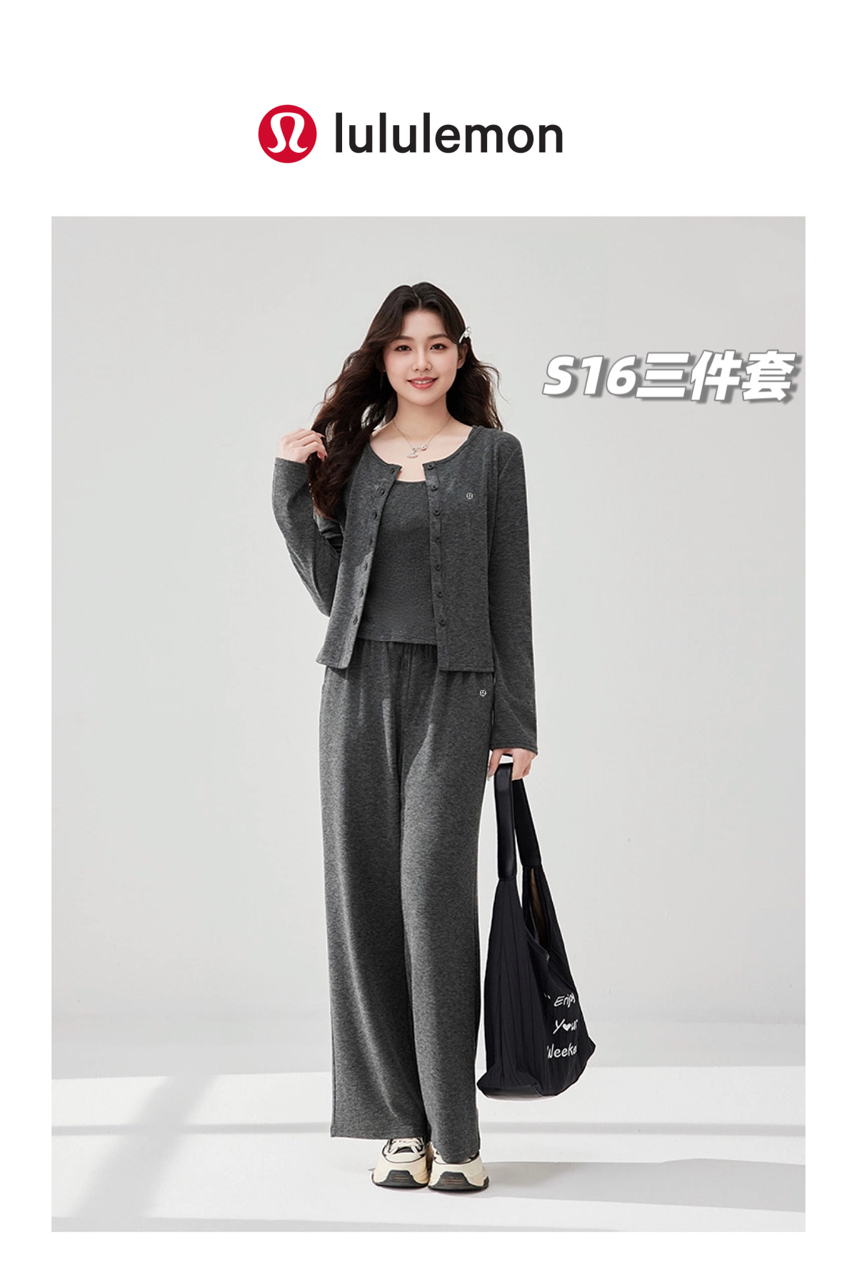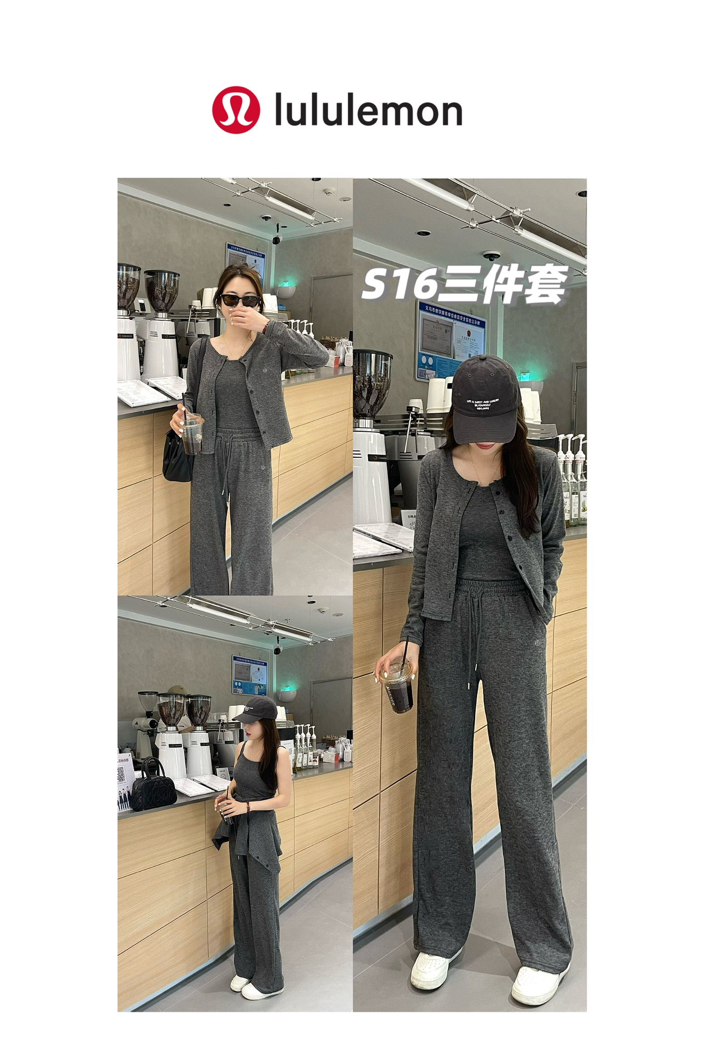 套 lulu最新款糯米长裤吊带外套3件套装 超高性价比的一批外贸尾单 两色总共百来套 且买且珍惜啦