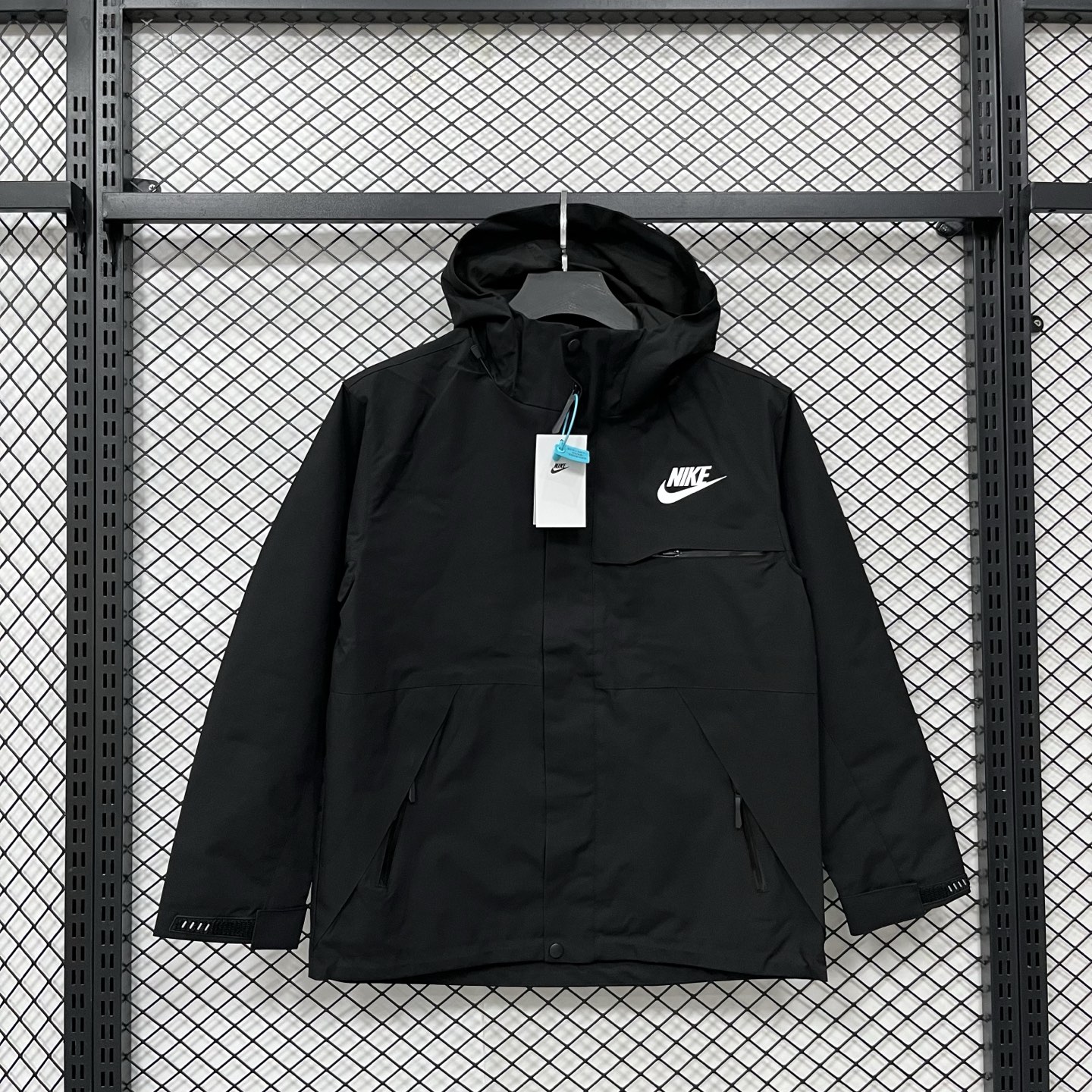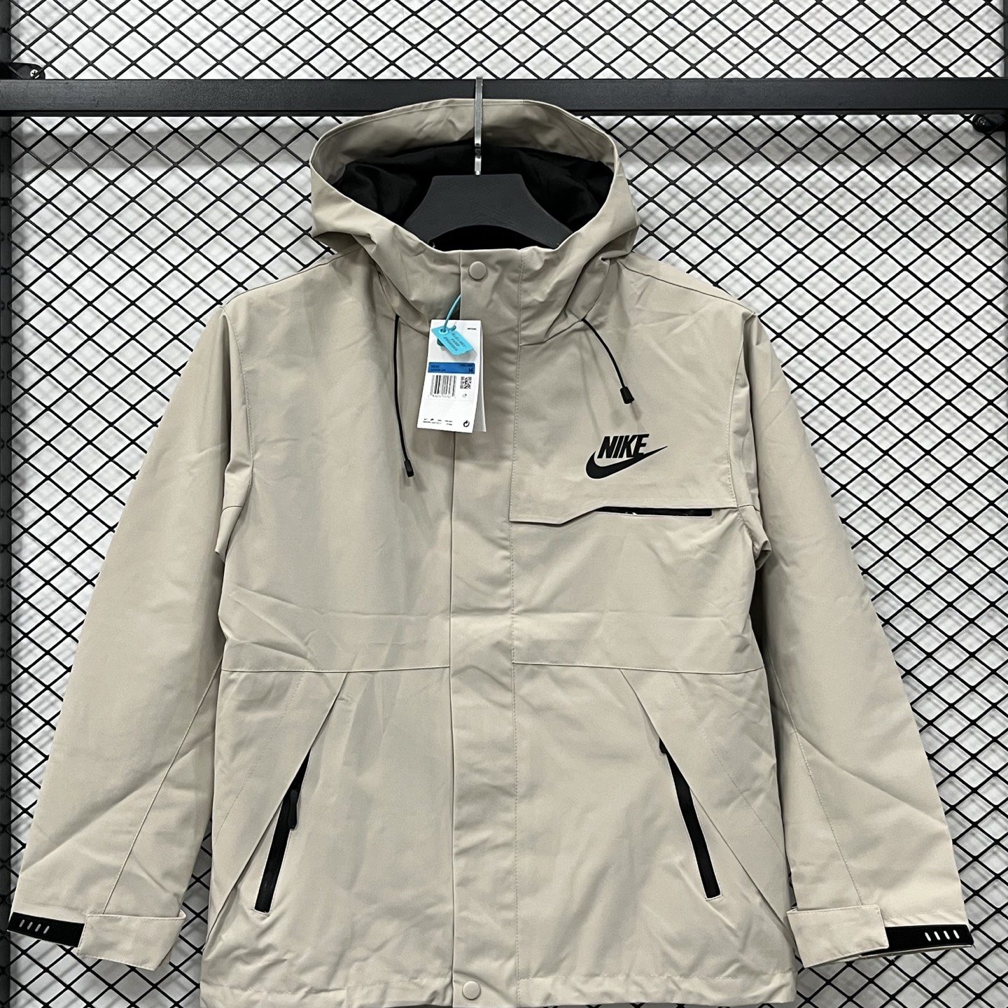 上新 得物品质 2025耐克冲锋衣 SS25Nike 休闲简约连帽 户外 登山防水防风透气冲锋衣 多拉链口袋设计情侣 男女款 黑色 卡其色 浅蓝色 M 4XL