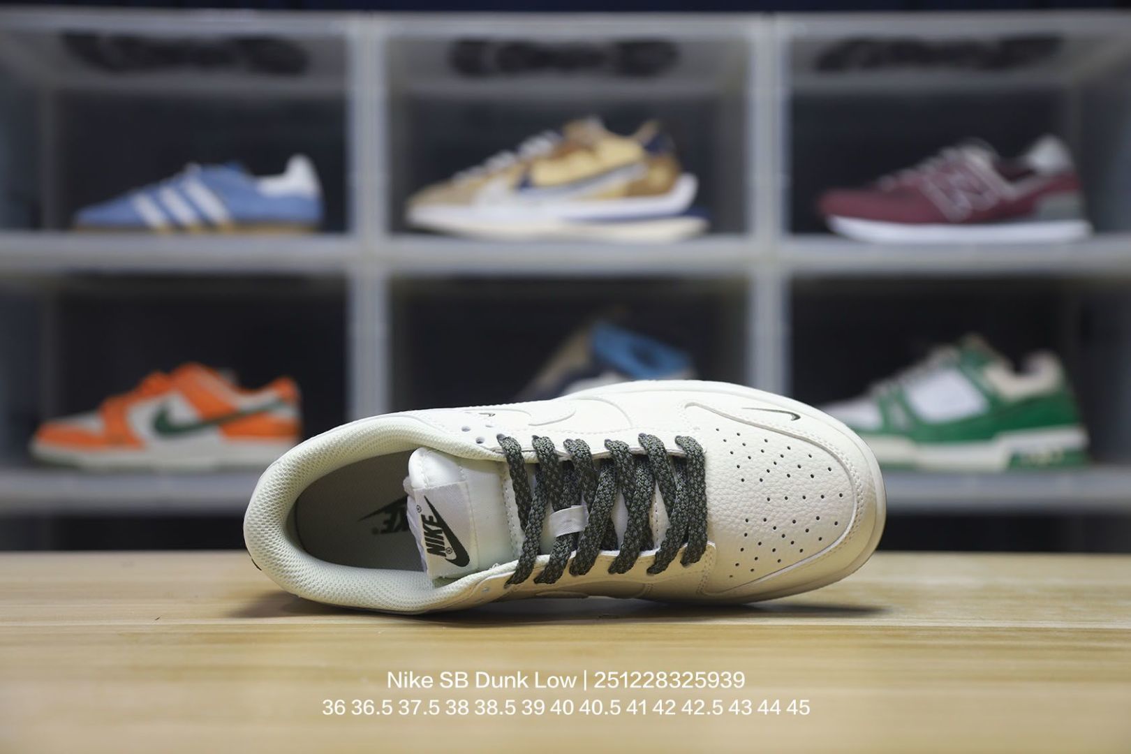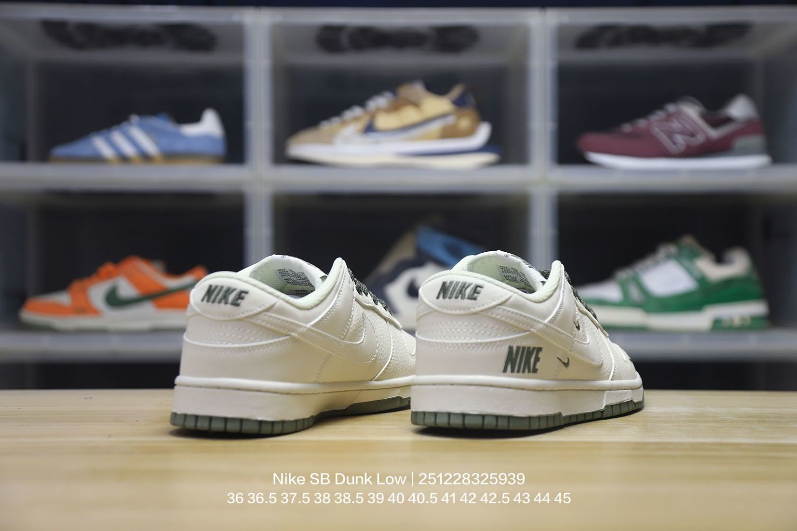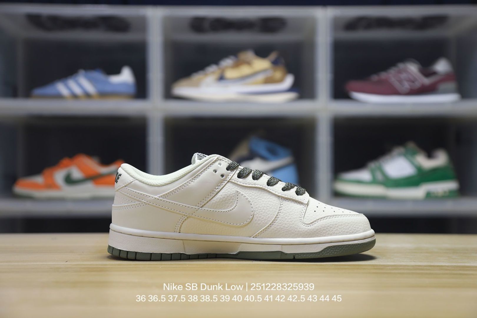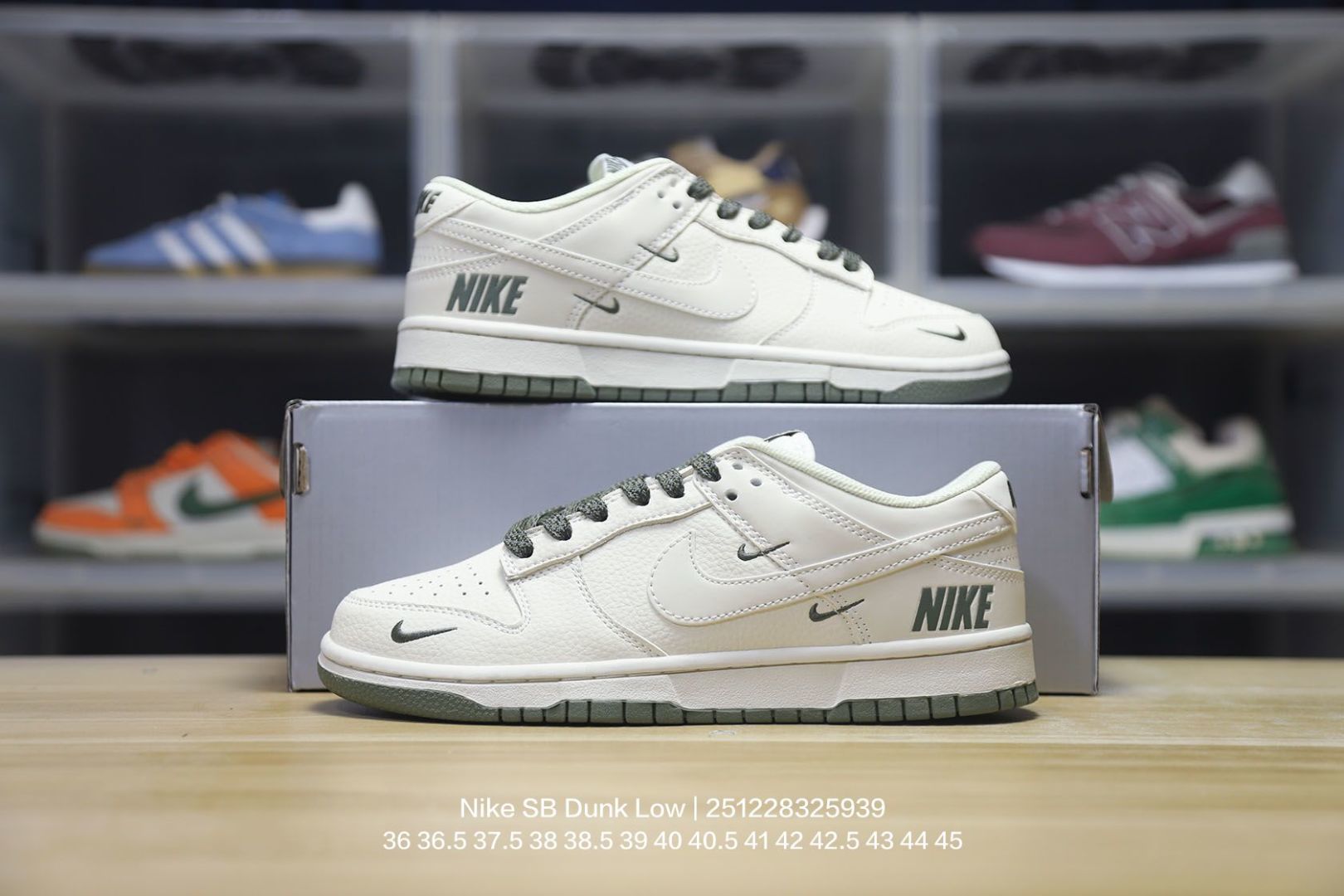 Nike 耐克 男女鞋真标半码制 全新2021版更新数据窄楦翘头版型 采用软质荔枝纹牛剖革鞋面材质 大厂水平严控清洁度 缜密拉帮中底布 鞋垫嵌EVA缓震物料及背胶 全新窄版翘头耐磨橡胶大底耐克Nike SB Dunk Low NIKE 扣篮系列低帮休闲运动滑板板鞋 皮革米白浅灰NIKE四钩反光