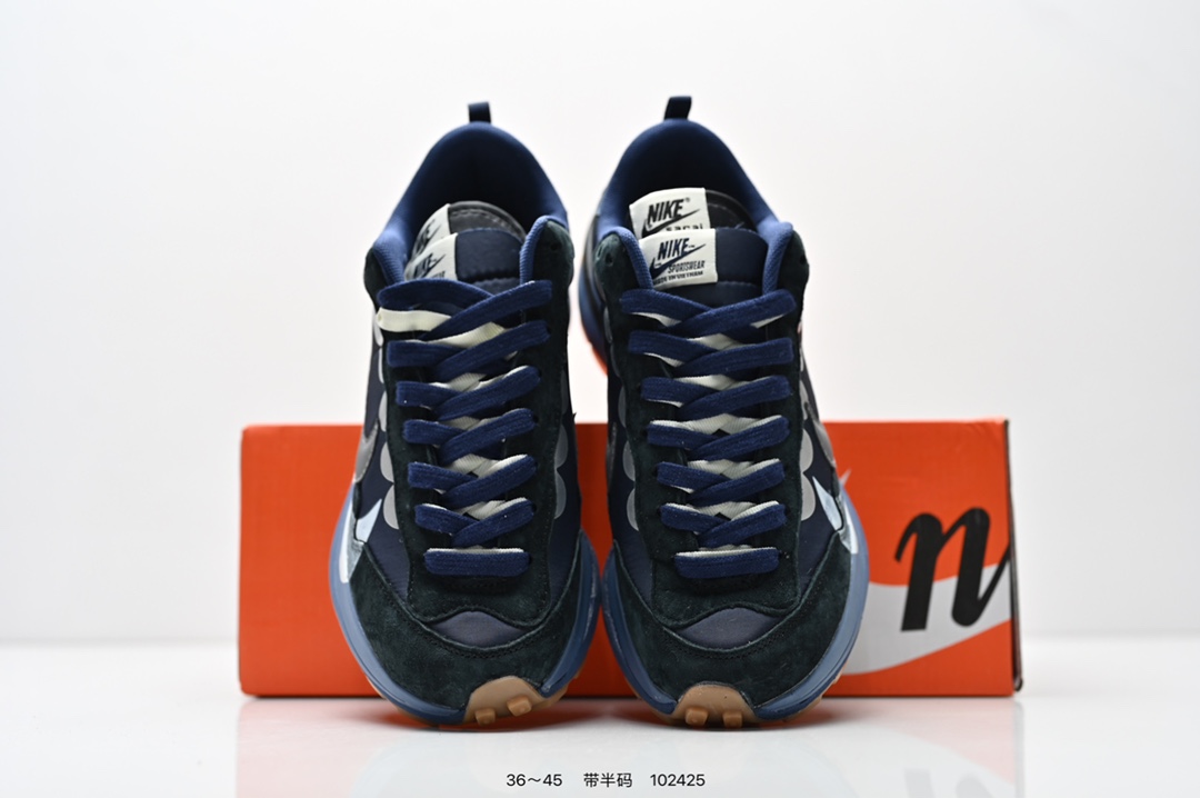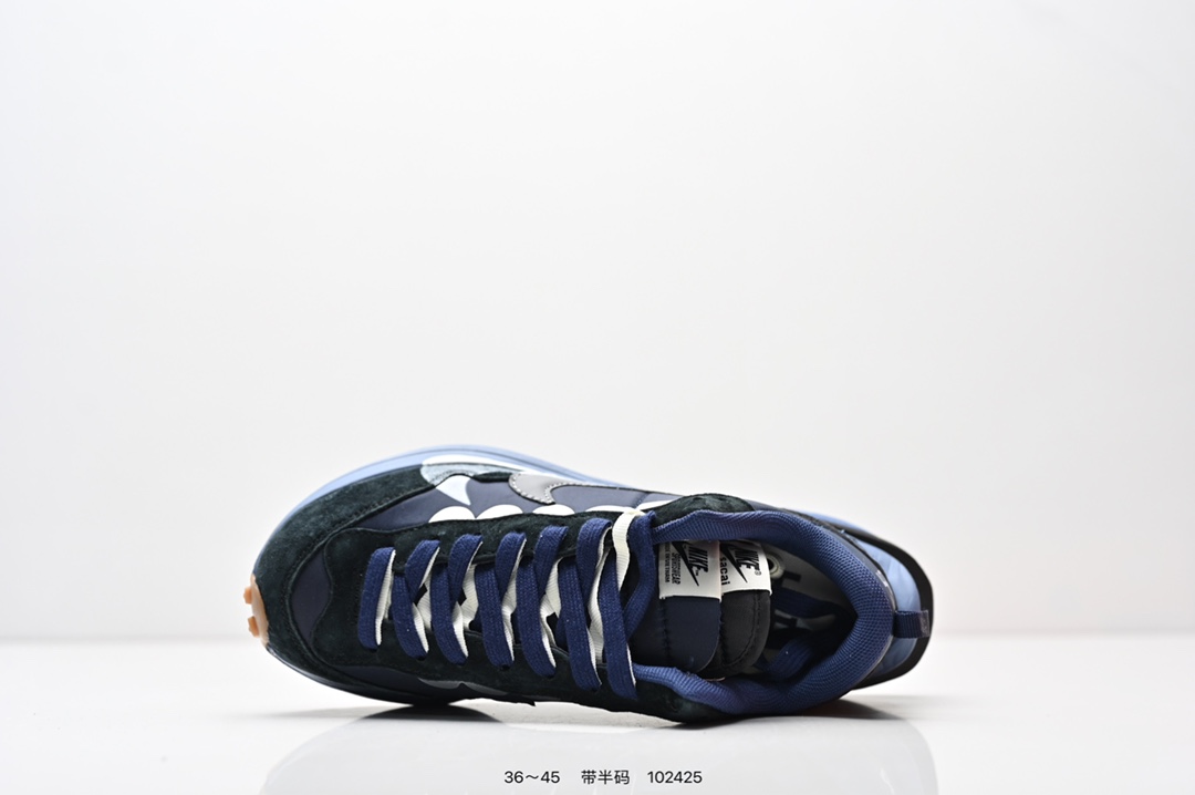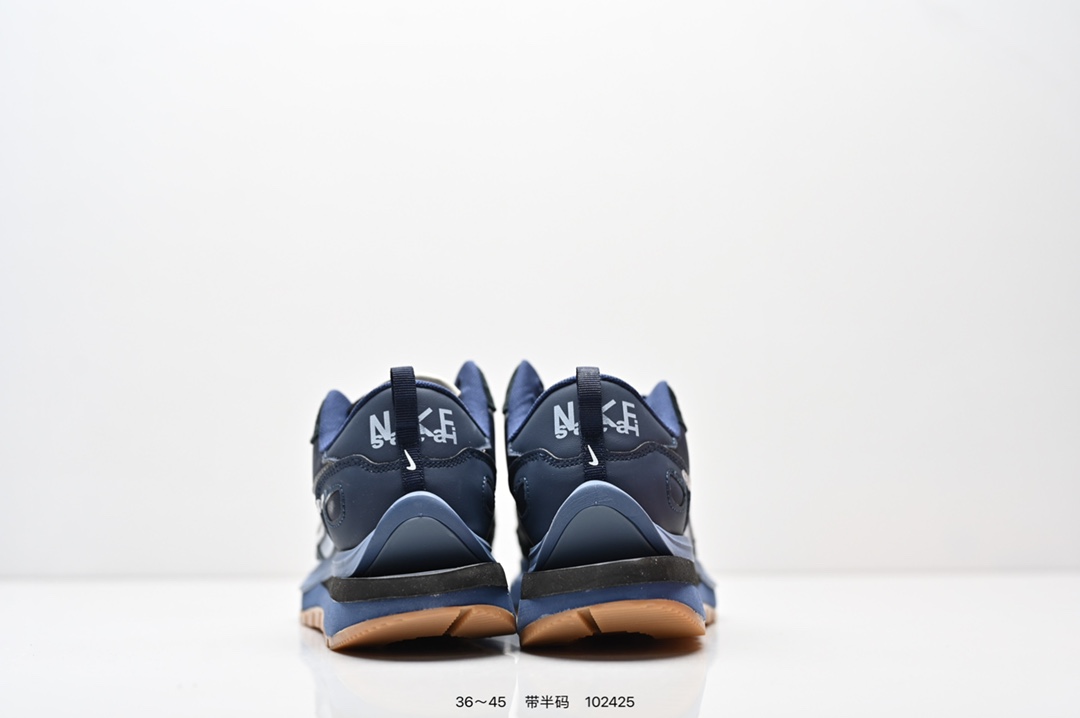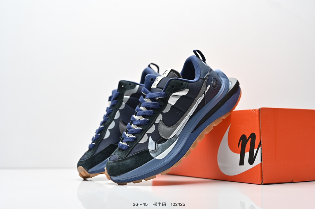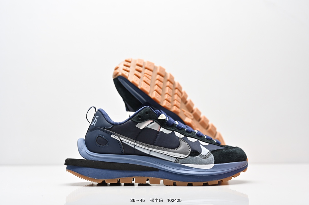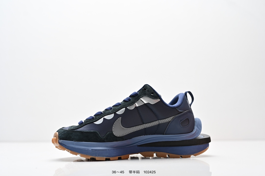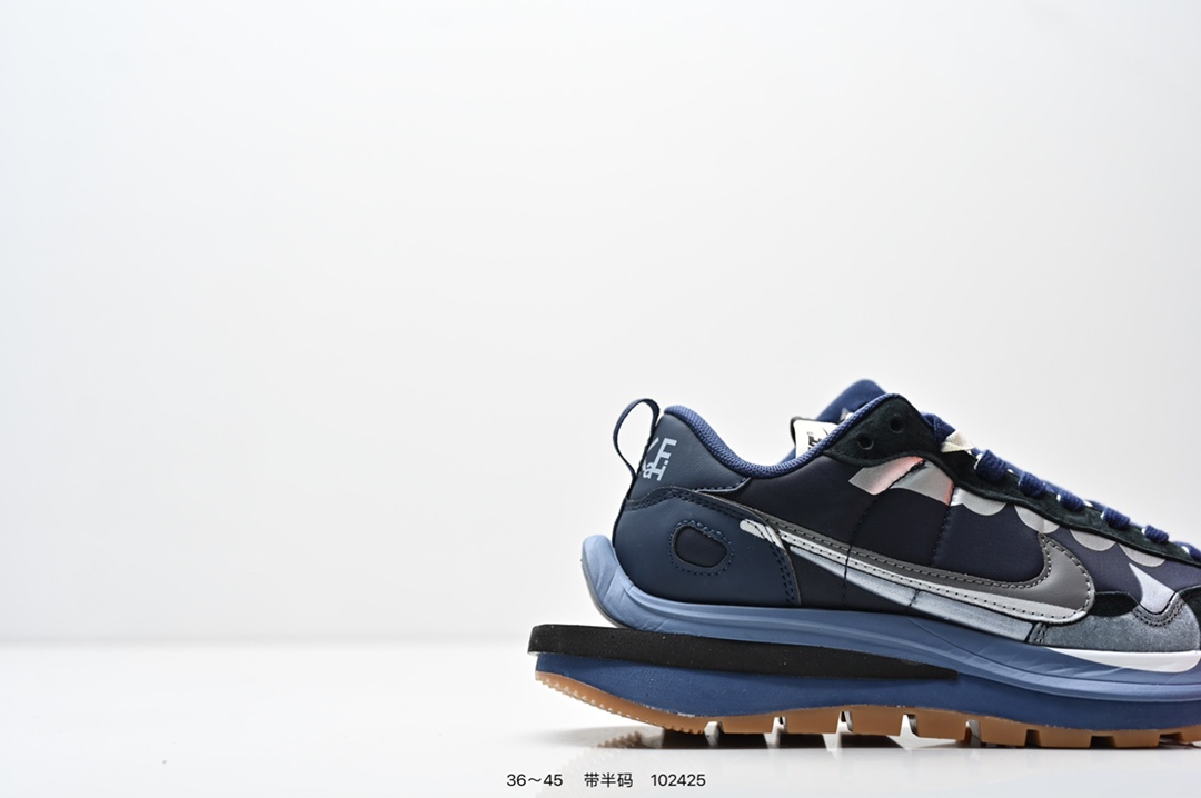 耐克 Sacai X NIKe vaporWaffle 华夫三代3 0 走秀重磅联名款运动鞋 鞋款由Pegasus与VaporFly两款鞋型的设计元素共同构建 鞋身材质由翻毛皮和透气网布共同打造 熟悉的解构手法 重叠Swoosh 双重鞋舌 鞋带以及后跟SACAI字体都悉数保留 最大亮点在于 本次鞋底变本加厉 层数更多 简直和巴黎世家的TripleS有一拼 增高效果妥妥的
