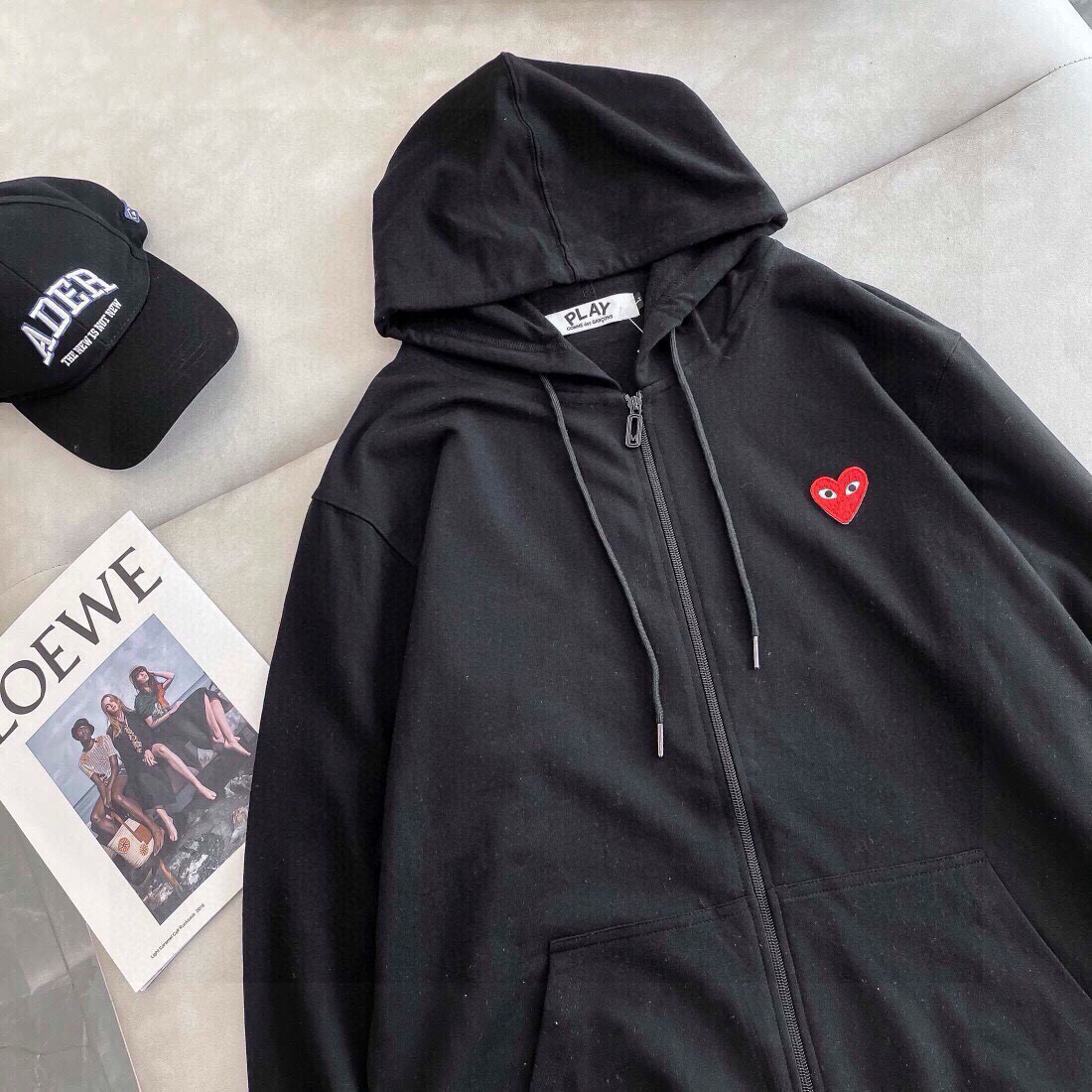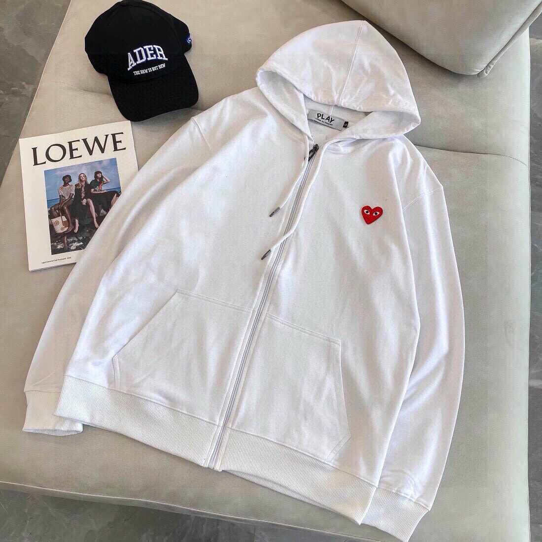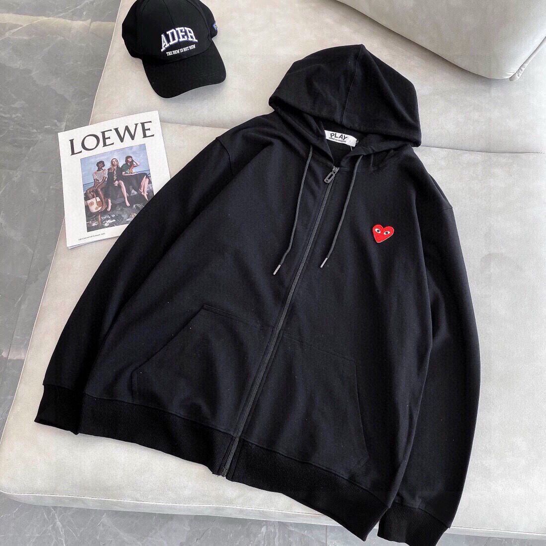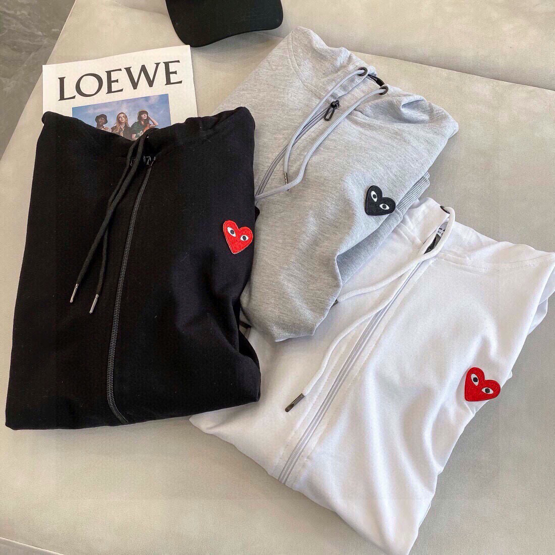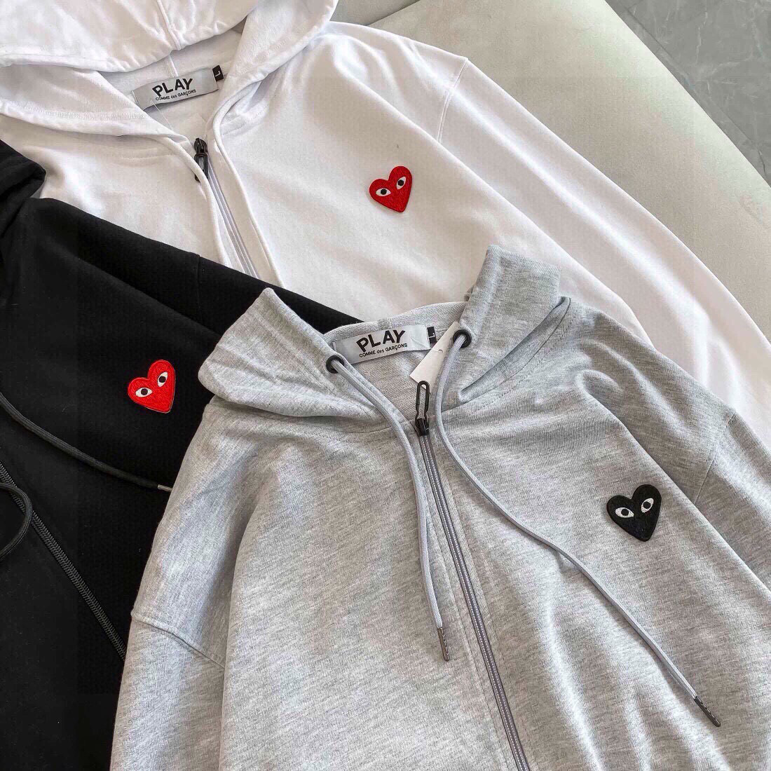CDG川玖保玲专柜同款爱心刺绣标毛圈连帽拉链薄款卫衣外套火力上新