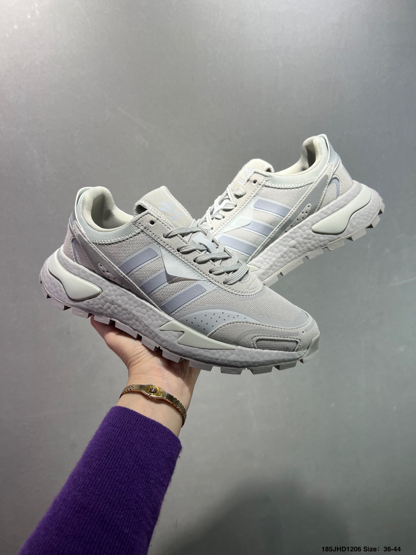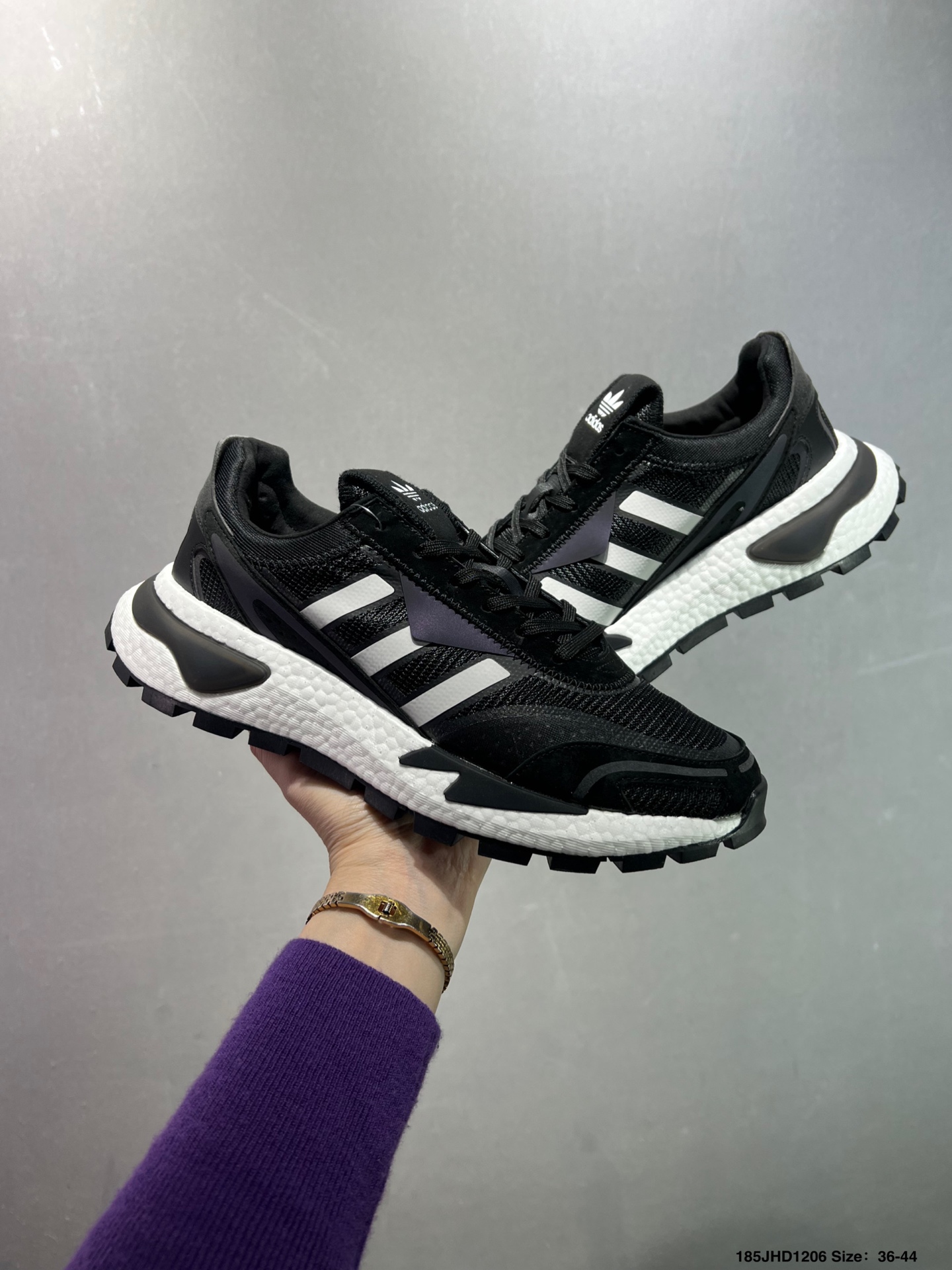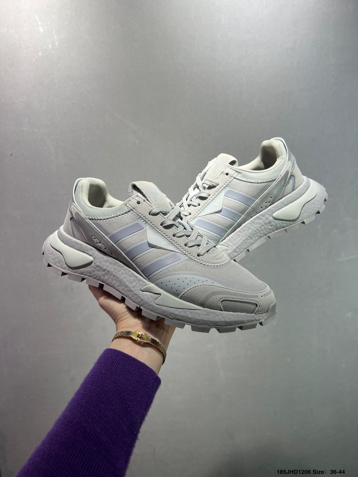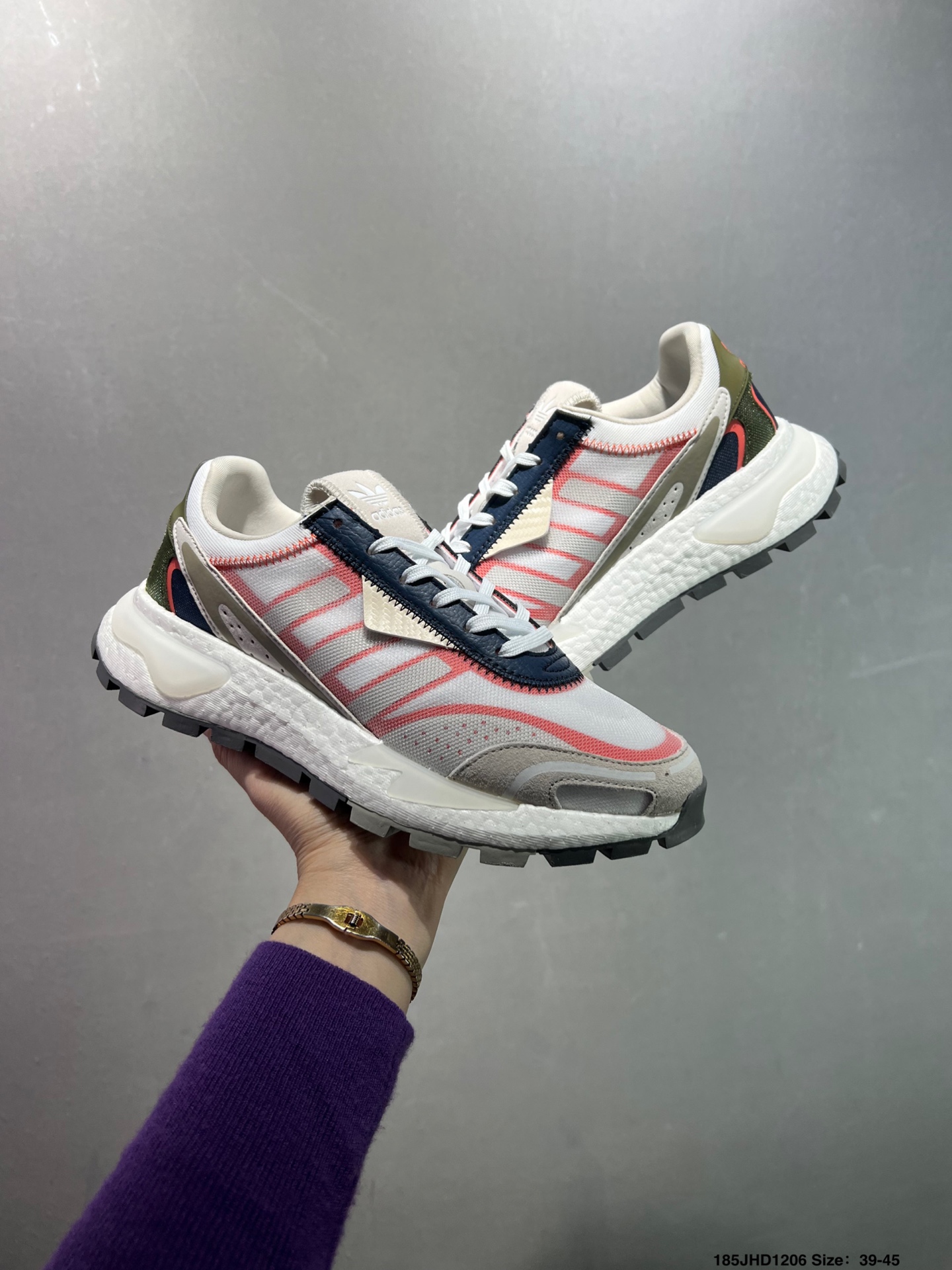 原楦原纸版开发版型 采用隔新网织材质组合皮革饰片鞋面 中底嵌入Boost爆米花缓震颗粒物料 外置锯齿防滑大底闪耀年代的复古盛宴 阿迪达斯系列低帮复古爆米花缓震防滑休闲运动慢跑鞋 货号 H03093 尺码 36 39如图