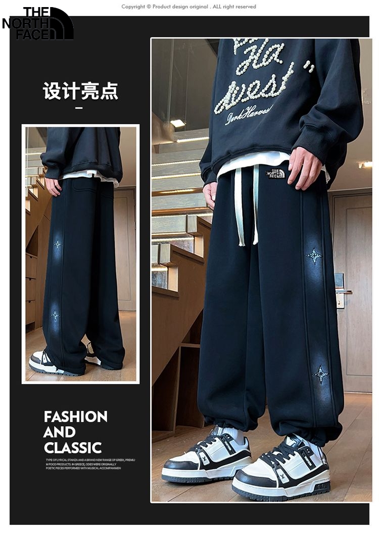 购物价 北面The North Face秋冬新款 男女同款松紧腰加绒加厚百搭针织卡尔棉宽束两用裤 男士休闲裤卫裤 百搭运动裤长裤