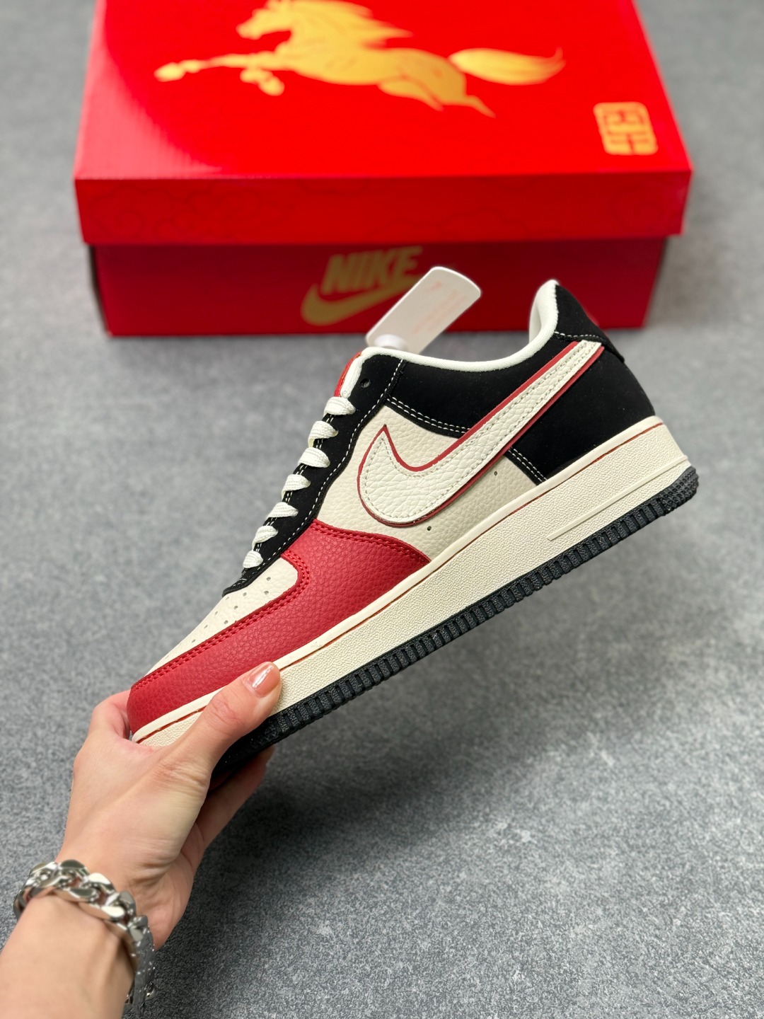 海外限量发售 公司级NIke Air Force 1 07 Low 马年限定 黑红恭喜发财 空军一号低帮 运动鞋 休闲鞋 折边针车 工艺难度大 原楦头原纸板 高端定制鞋盒 原厂鞋底 超高清洁度 细节完美