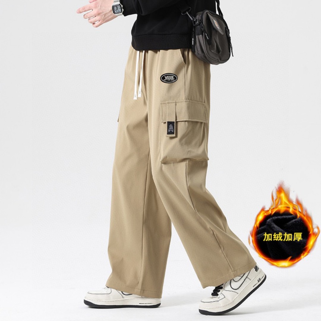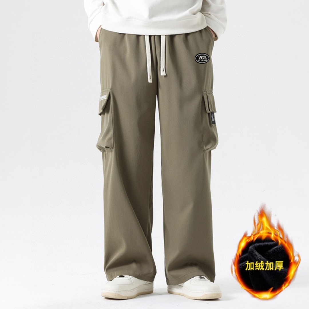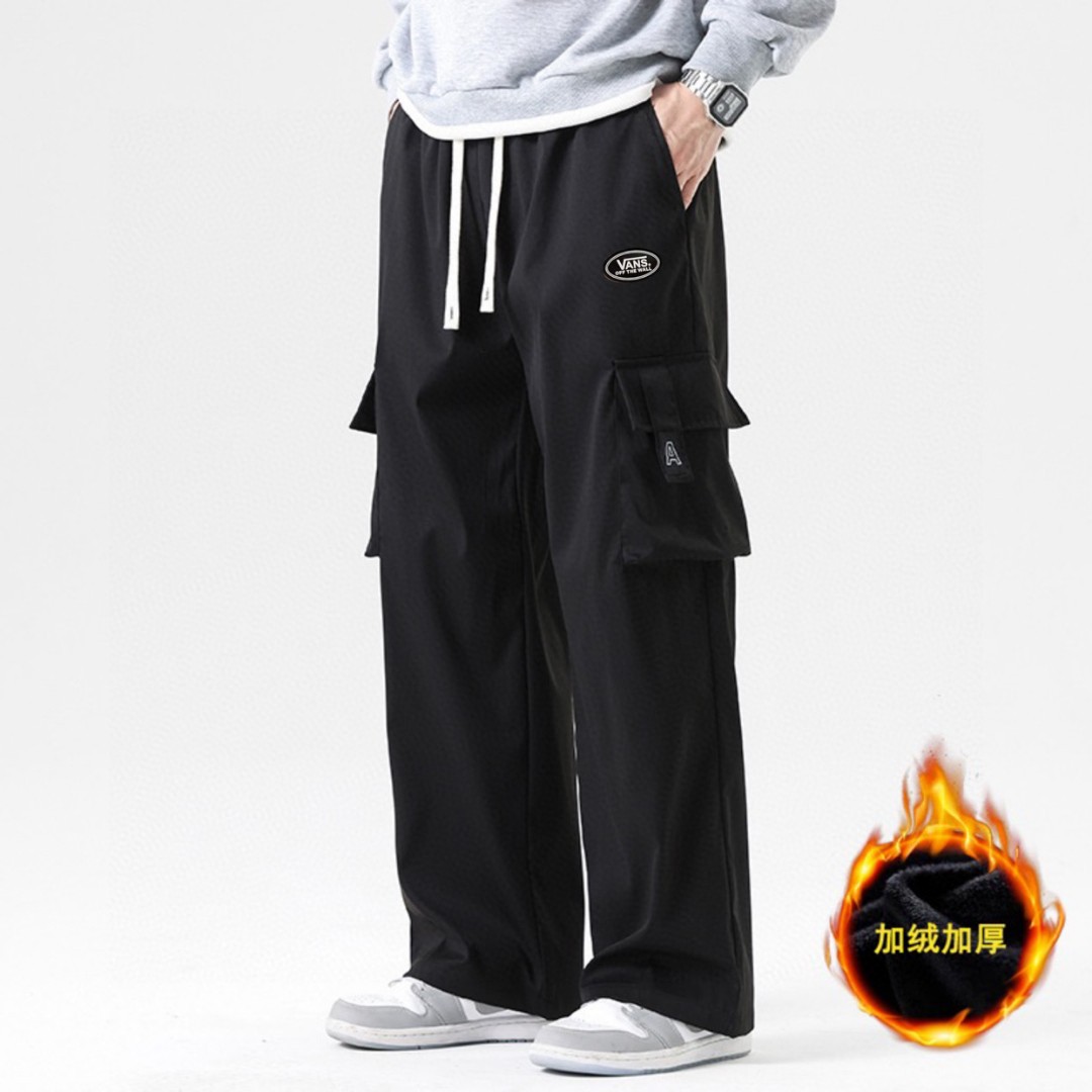 抽绳松紧腰围设计 可以自由调节 裤型两侧立体工装口袋设计 插兜处万斯立体LOGO贴标 直筒裤脚 内里加绒加厚附绒设计 保持设计感的同时又兼顾保暖性 中性宽松版型 不挑人不挑身材 超级百搭 男生女生都可以穿 也可搭配情侣