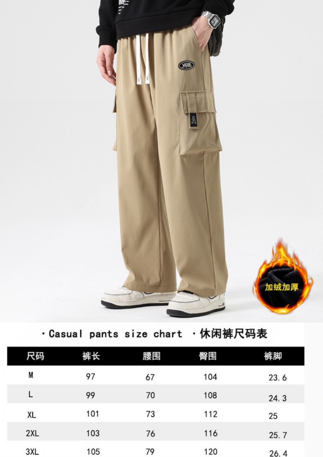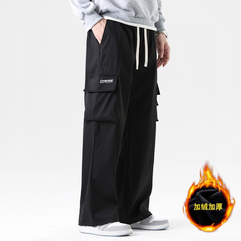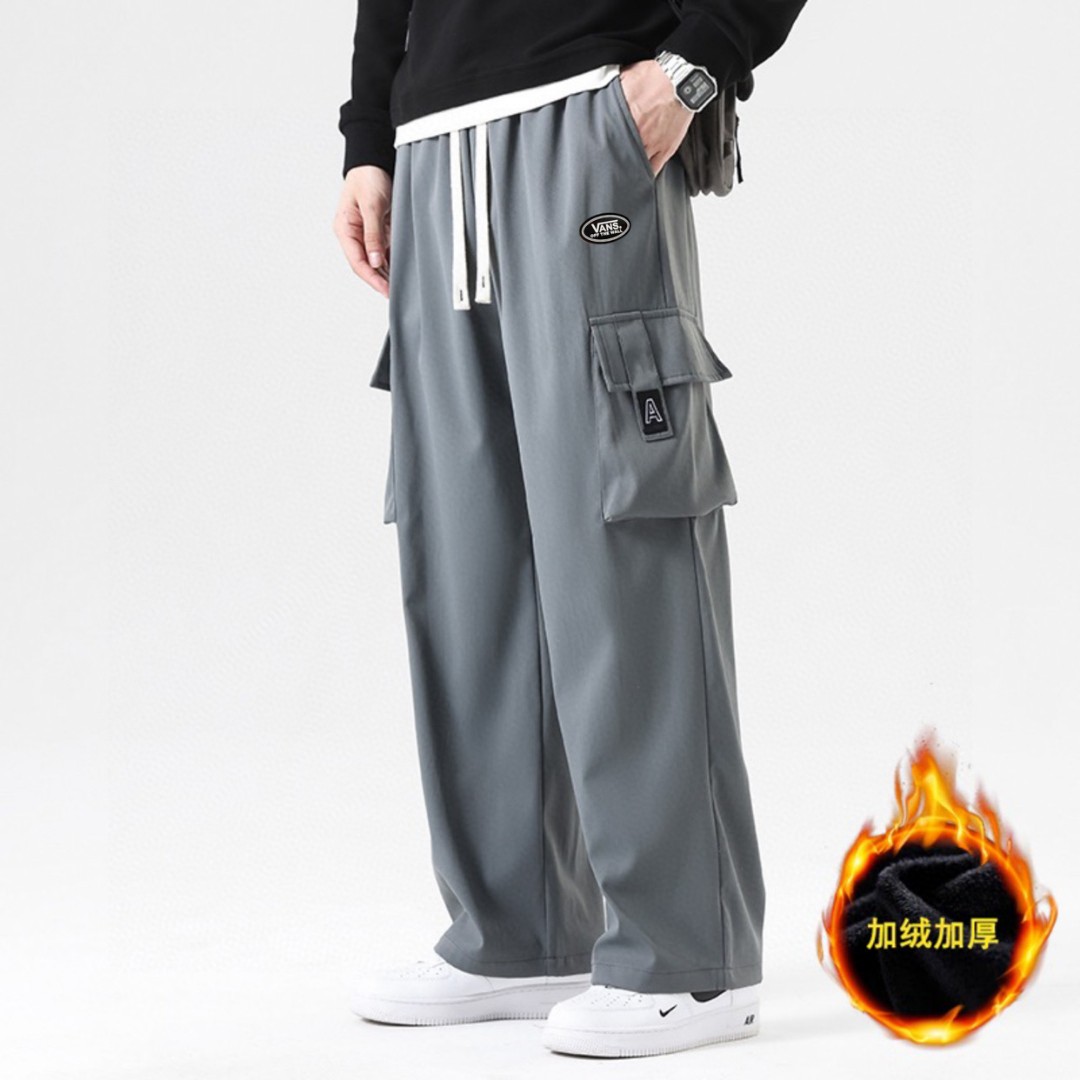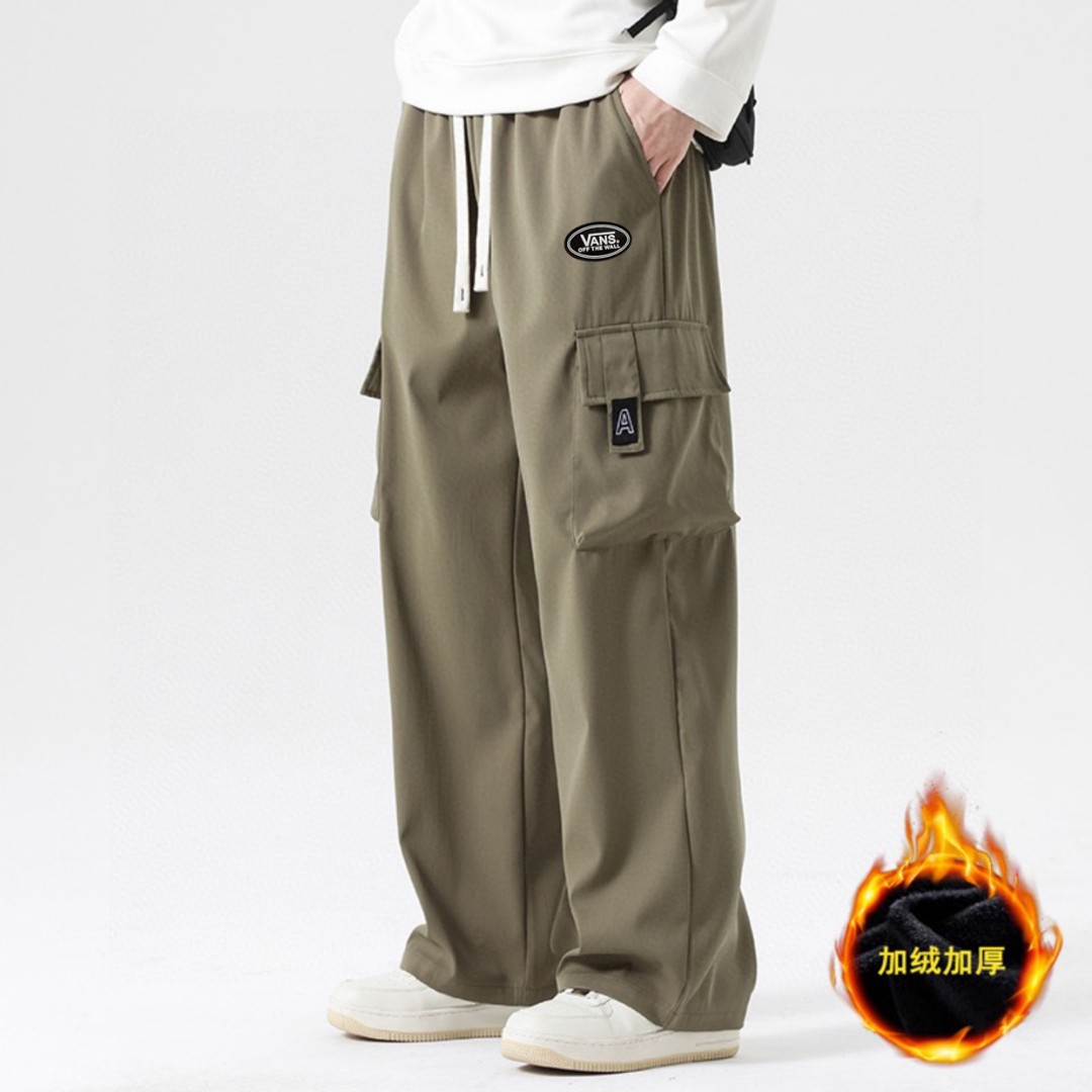 抽绳松紧腰围设计 可以自由调节 裤型两侧立体工装口袋设计 插兜处万斯立体LOGO贴标 直筒裤脚 内里加绒加厚附绒设计 保持设计感的同时又兼顾保暖性 中性宽松版型 不挑人不挑身材 超级百搭 男生女生都可以穿 也可搭配情侣