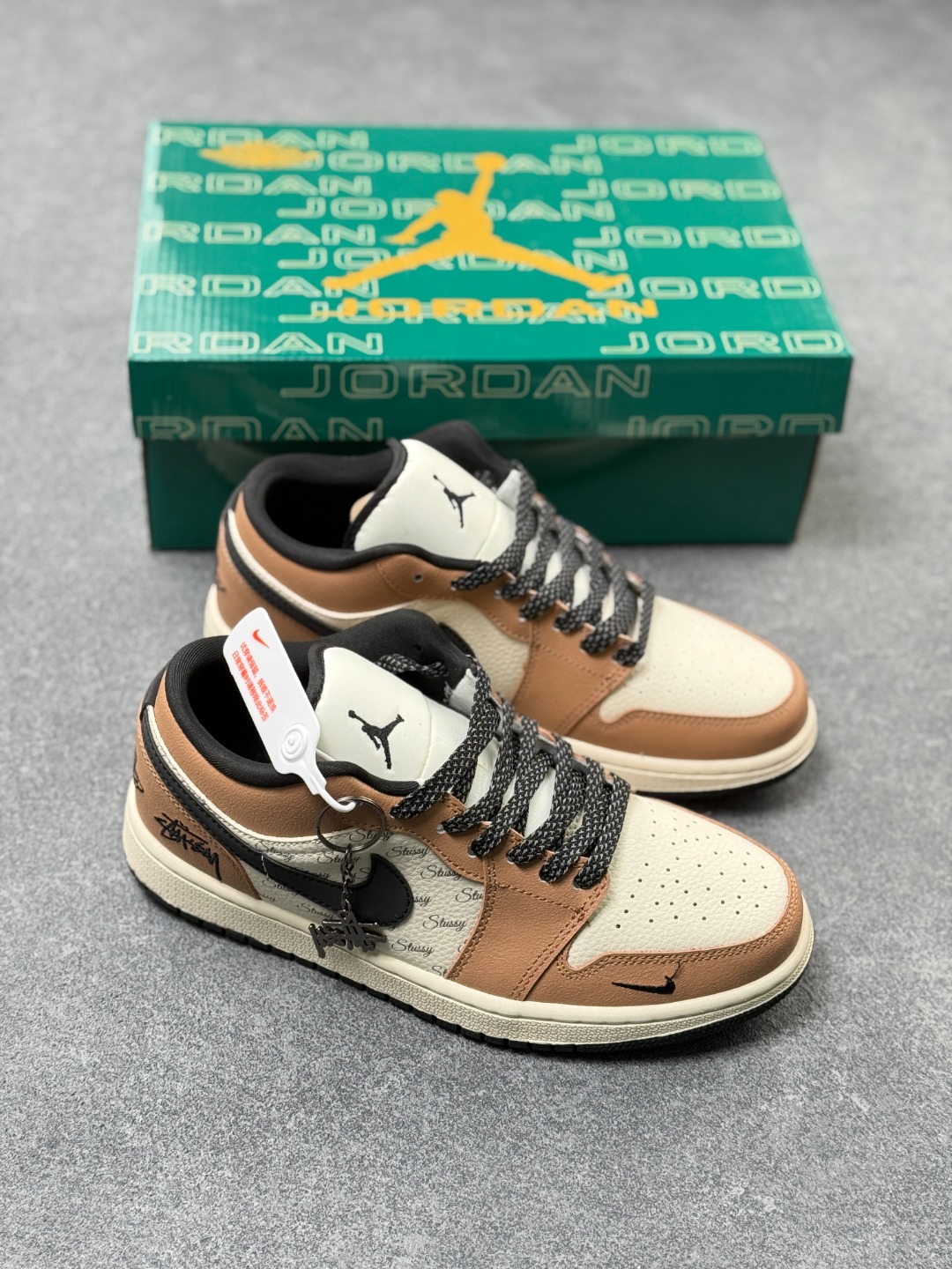 Nike Jordan Air Jordan 1 斯图西联名 摩卡黑棕满天星 高端定制 低帮 复古 减震 防滑 耐磨 篮球鞋 定制鞋盒 大厂纯原品质出货 超高清洁度 皮料切割干净无任何毛边 细节完美