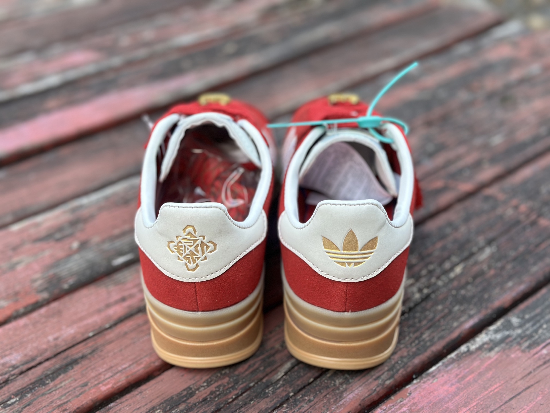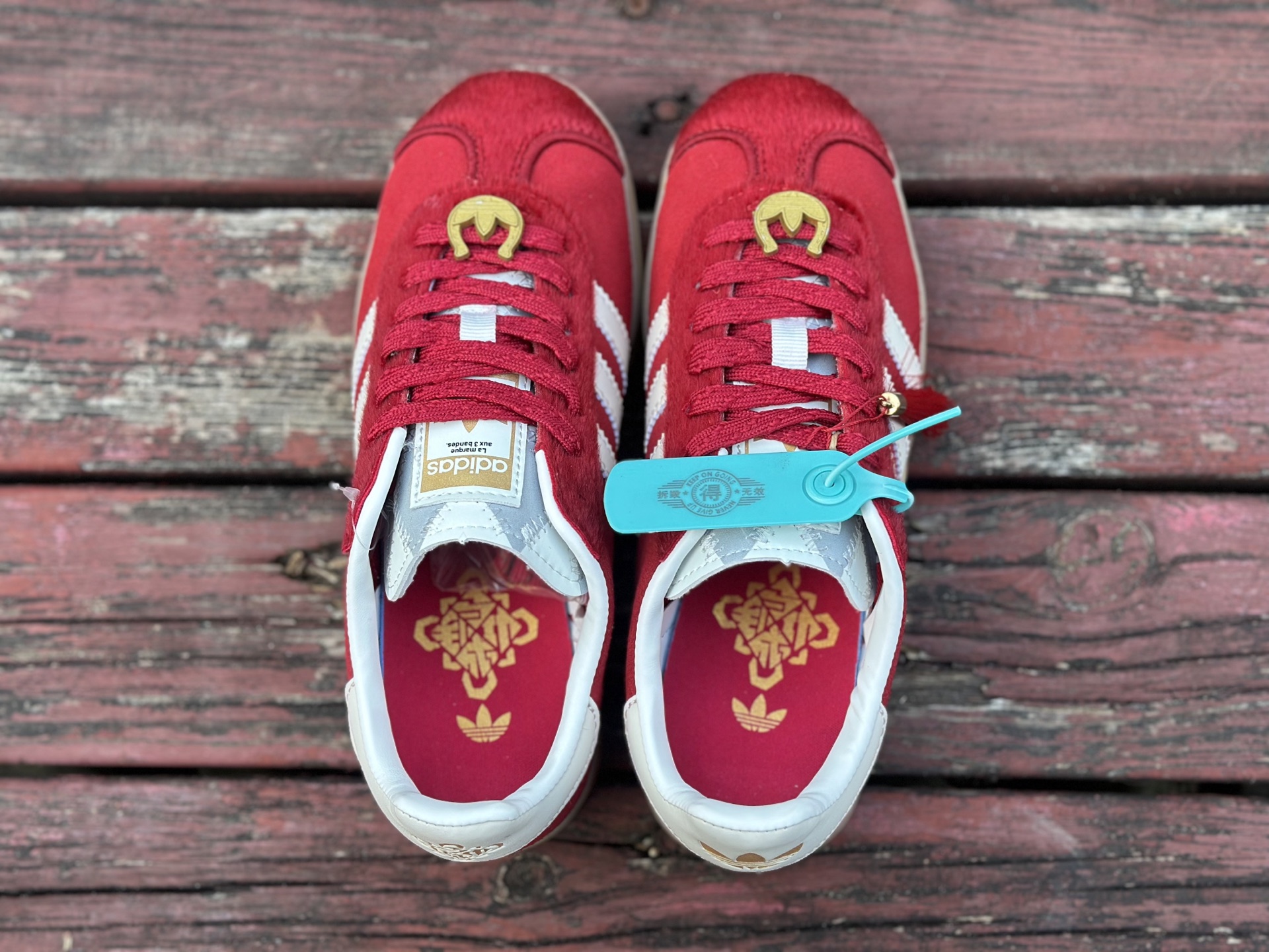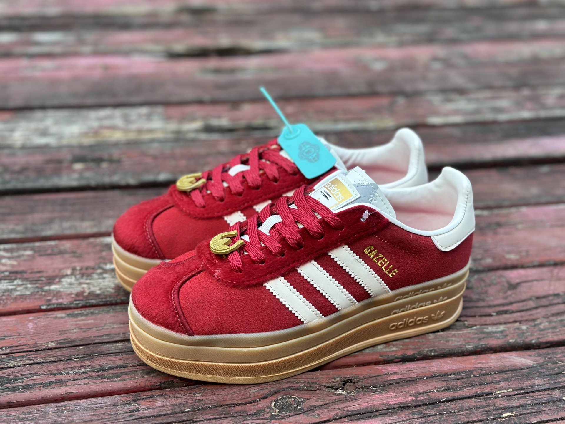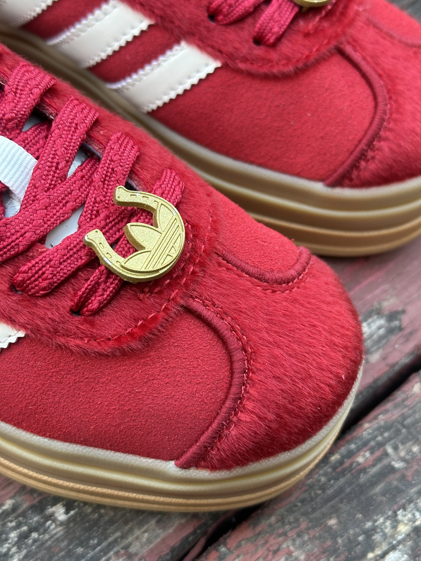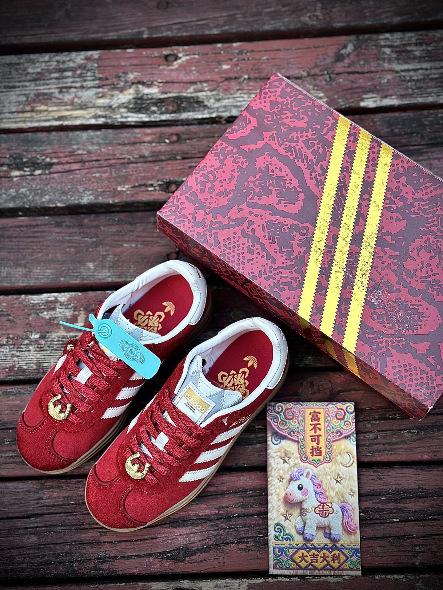 adidas originals GAZELLE CNY新年款 马年限定 经典运动 德训鞋 女款 红色羚羊松糕系列复古百搭厚底增高低帮休闲运动板鞋