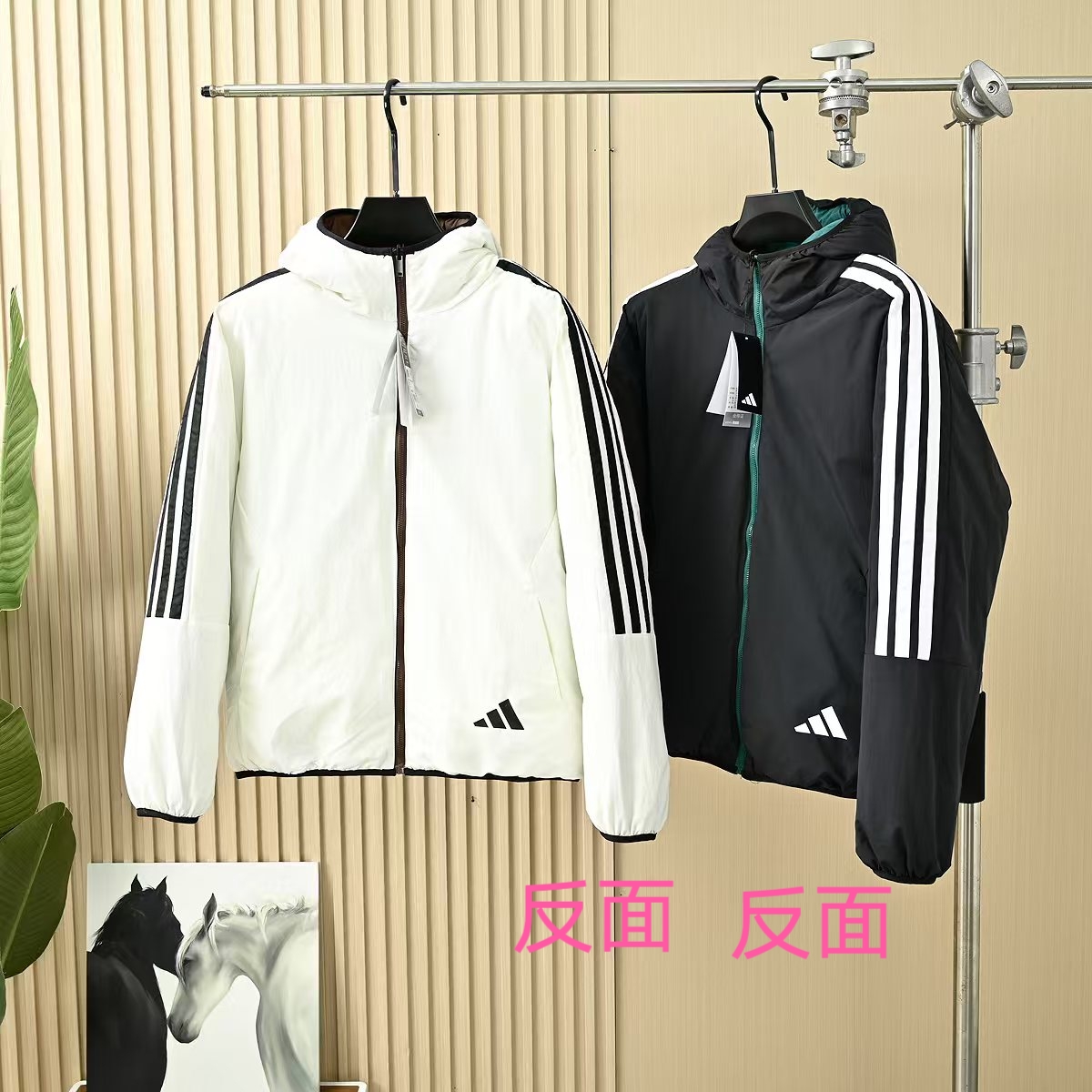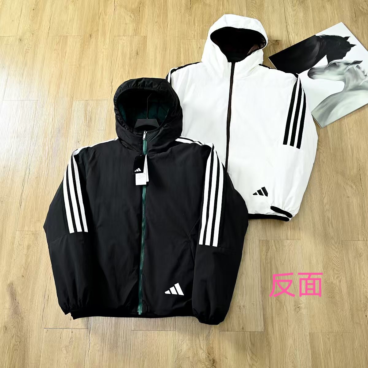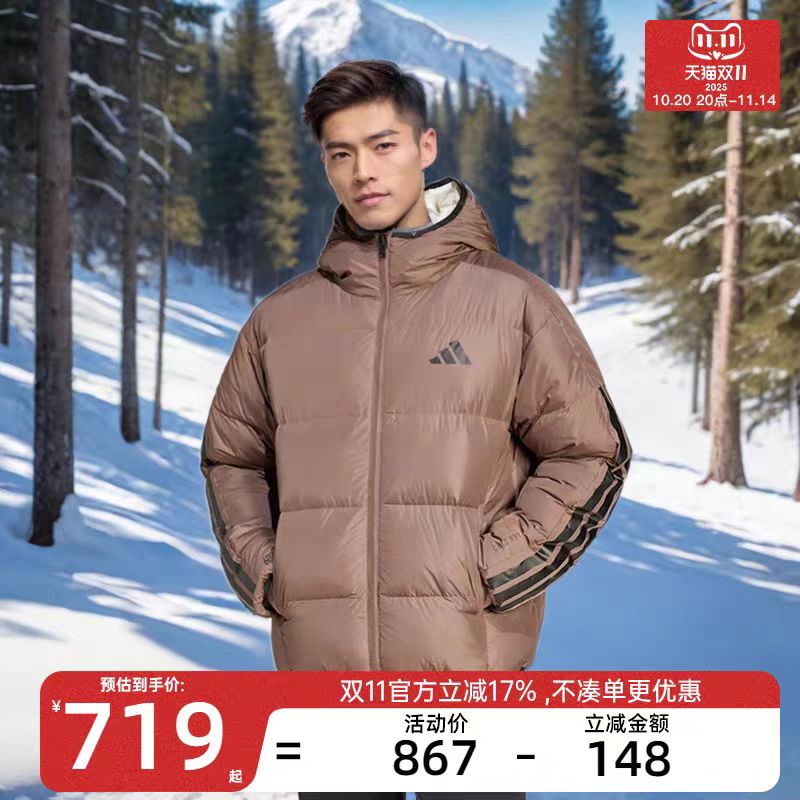 adidas阿迪达斯男子运动休闲双面穿俩面穿连帽保暖棉衣 加厚防风保暖 不压身