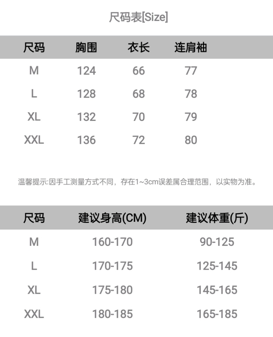 M 胸围124 衣长66 连肩袖77