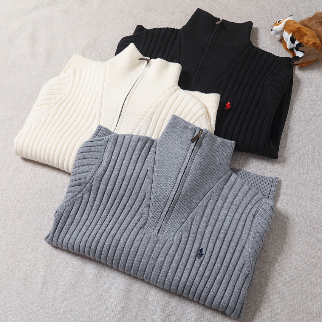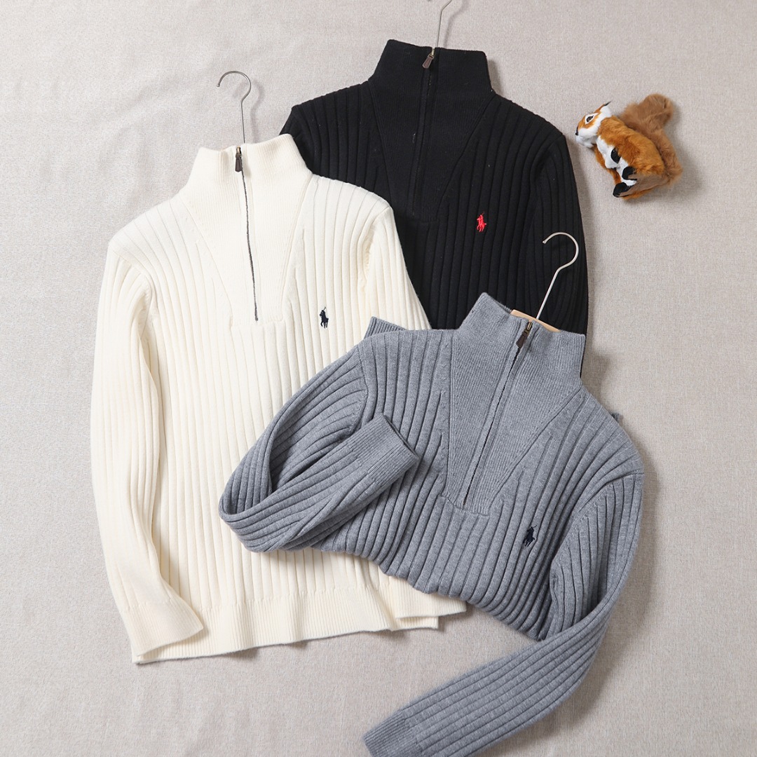 Polo Ralph Lauren 拉夫劳伦罗纹针织半高领拉链长袖毛衣 也太绝了吧 胸口刺绣针织开衫