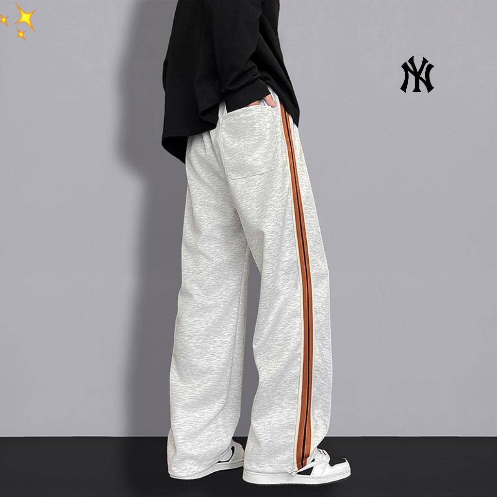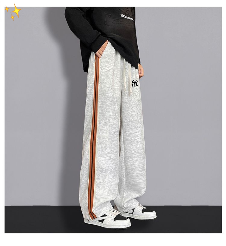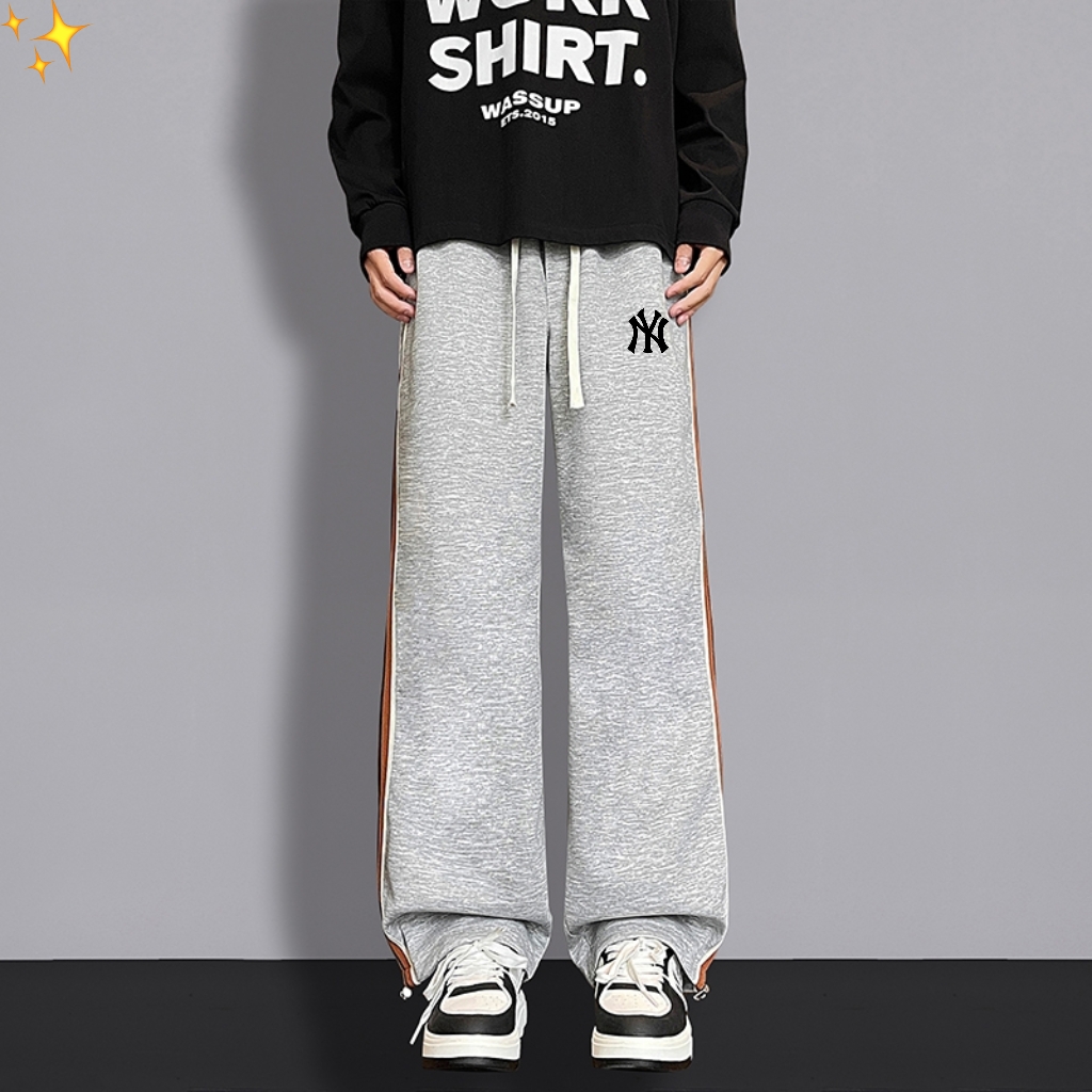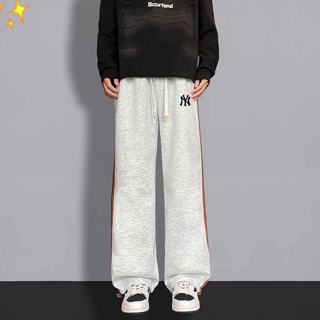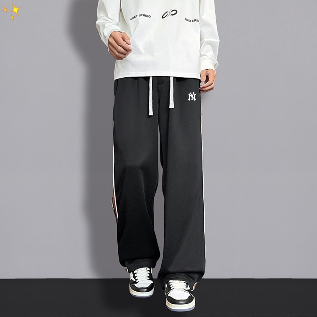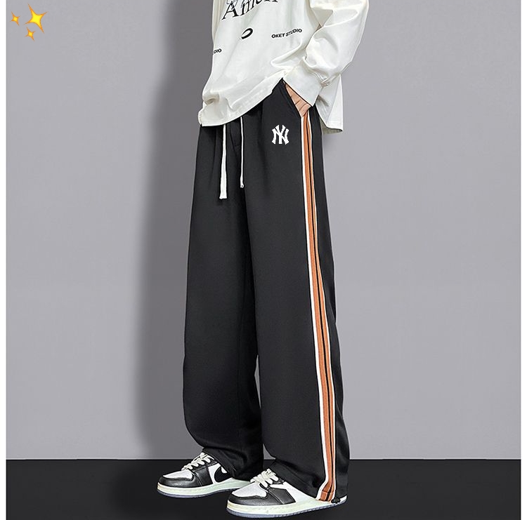 MLB洋基队ss25新品复古休闲裤直筒高街裤针织印花织带拼接高品质街头宽松垂感百搭运动裤