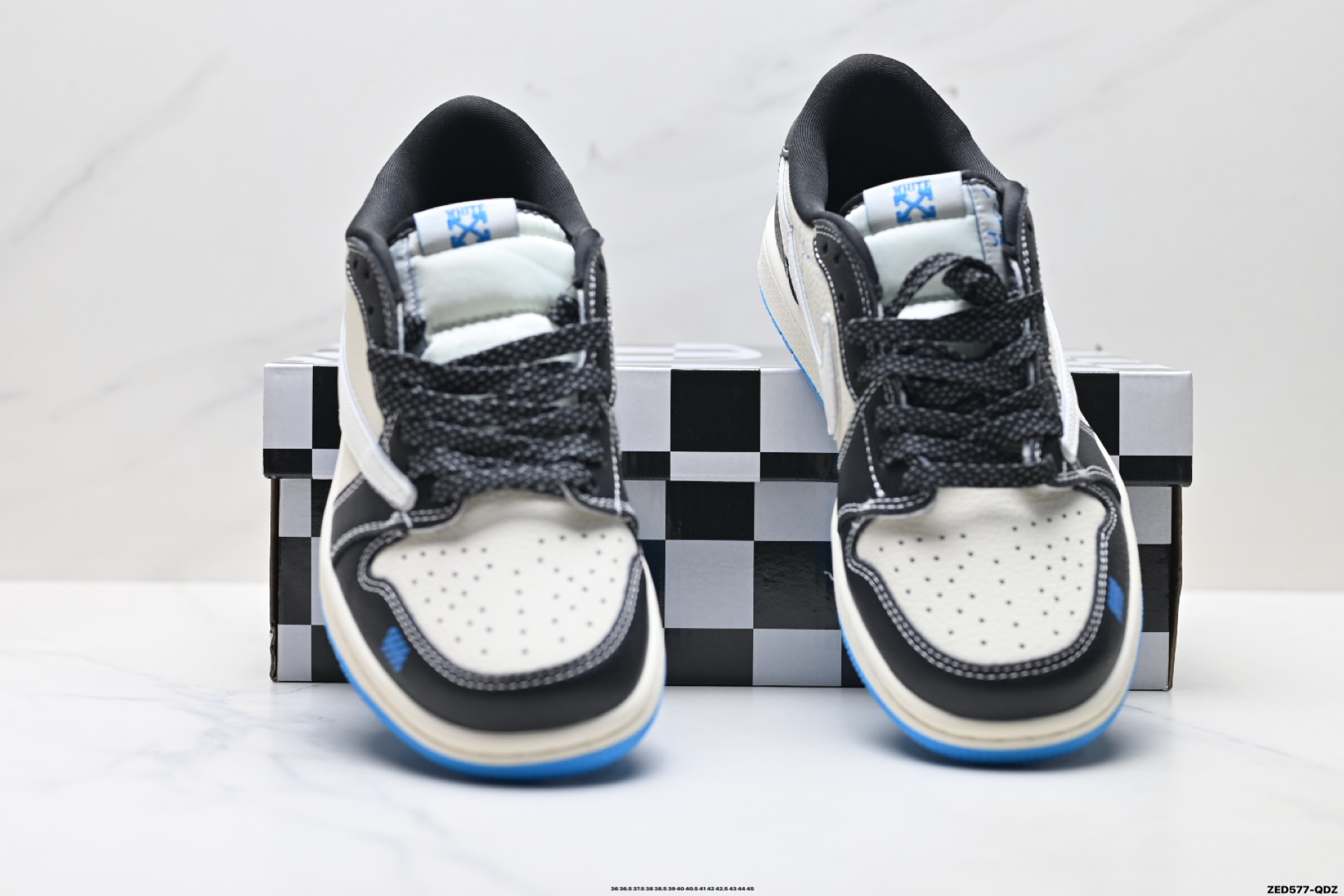 完美品质出货 细节如图所示 鞋面切割工整 冲孔整齐干净 中底拉帮线 整体清洁度非常好