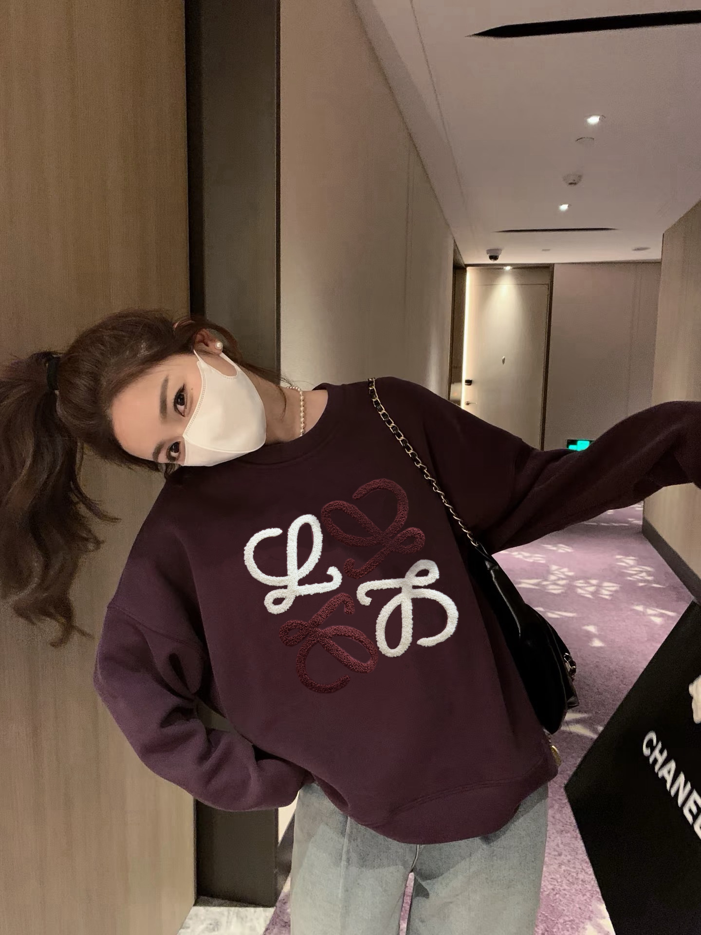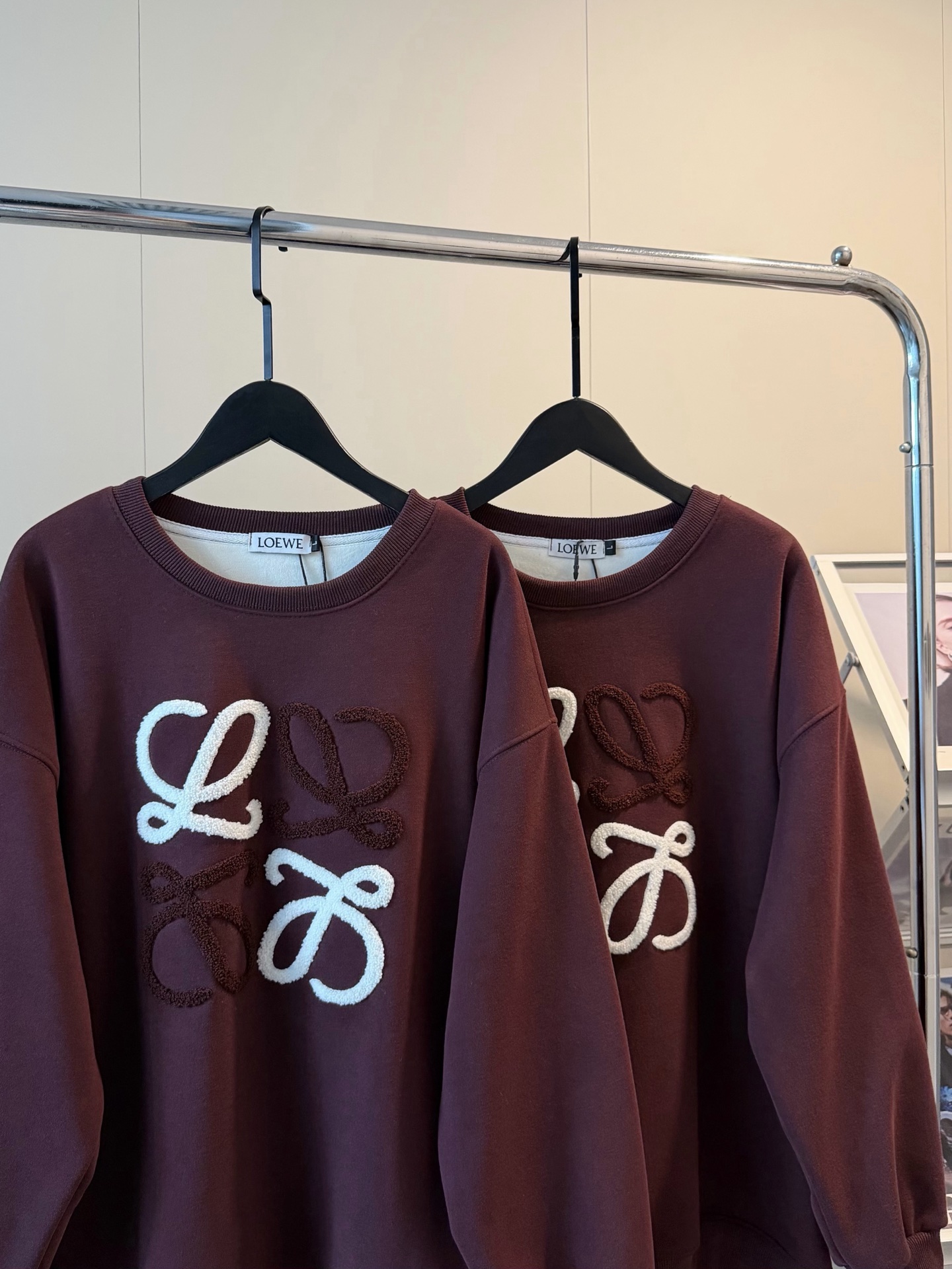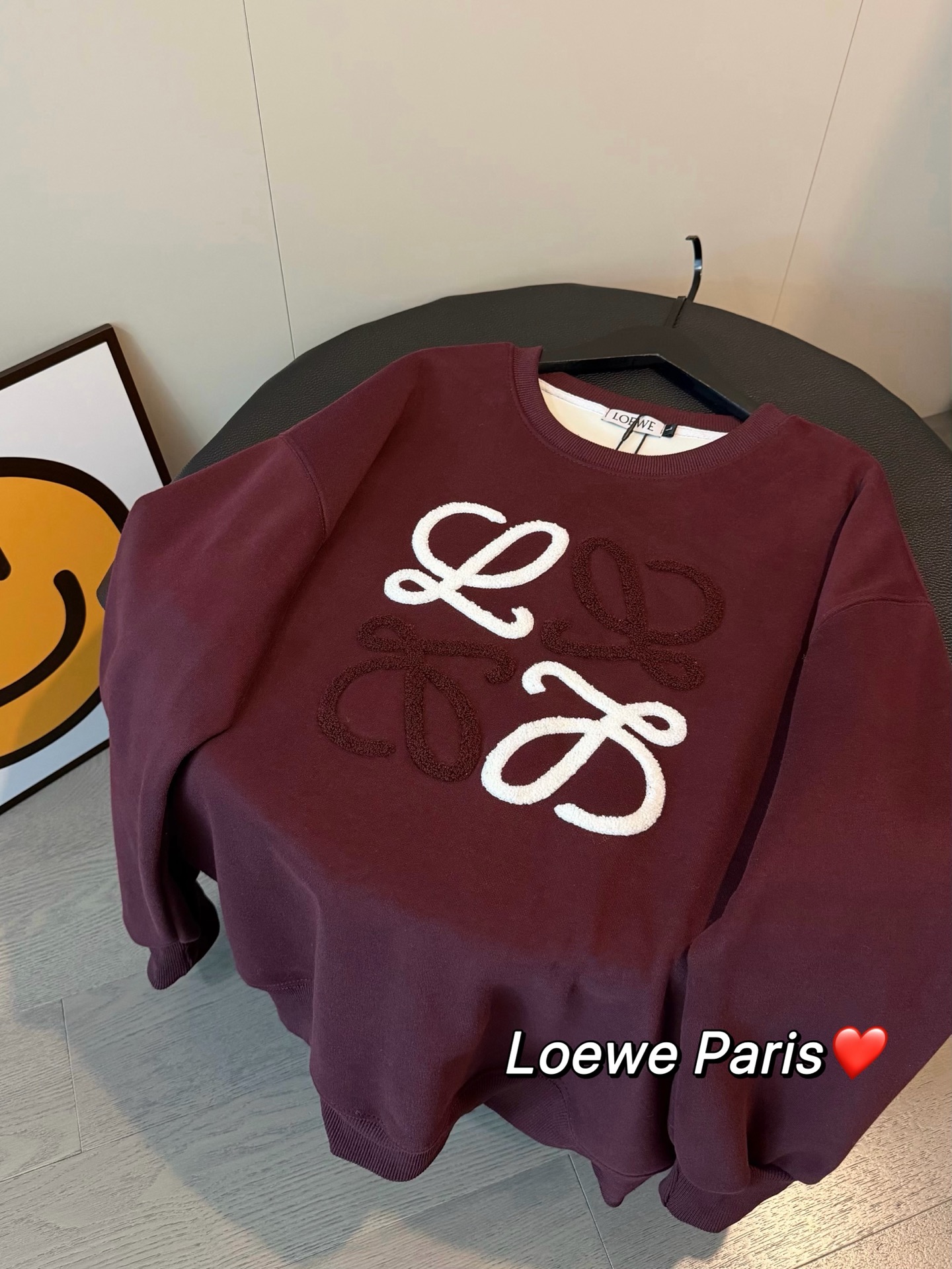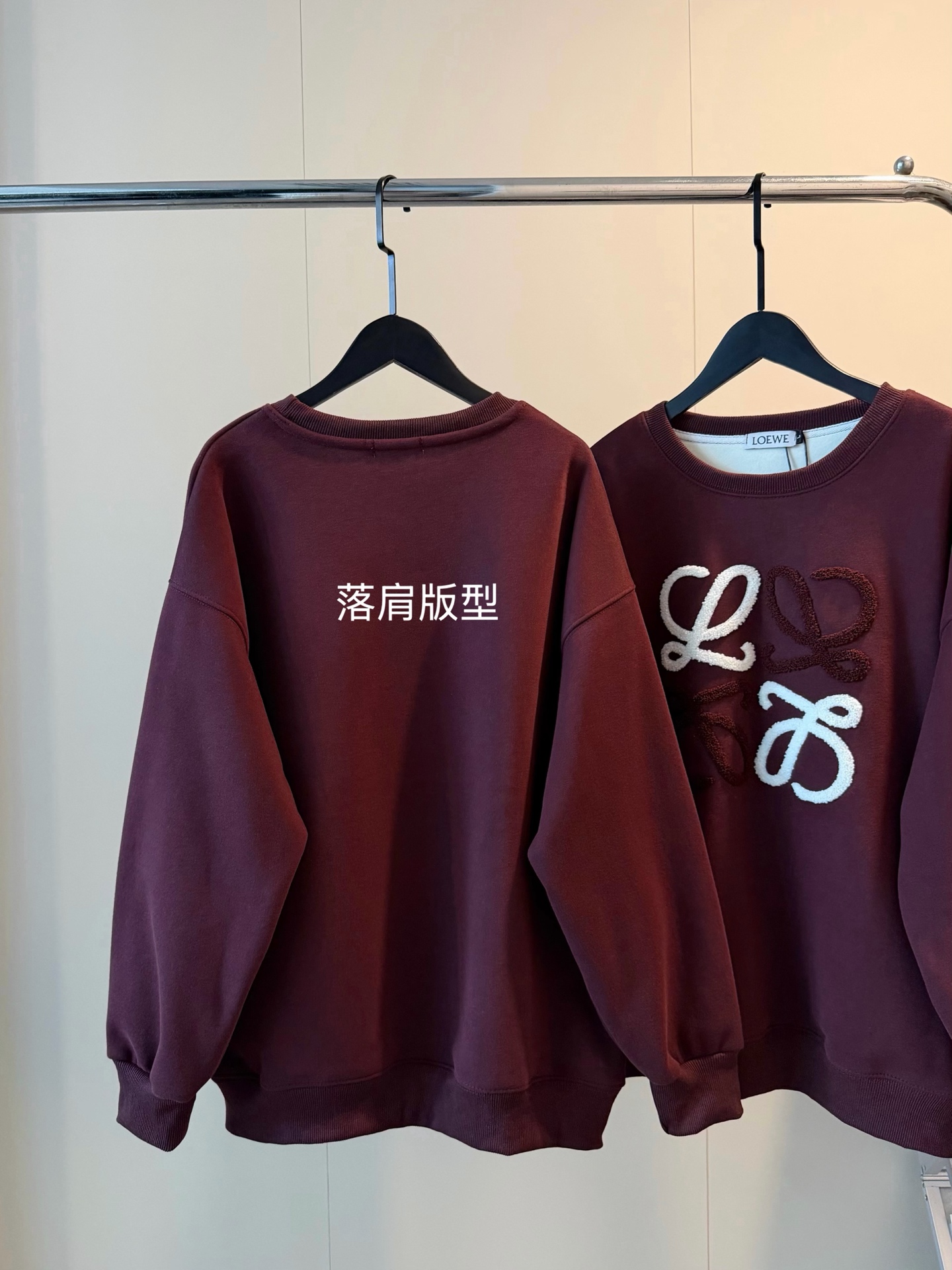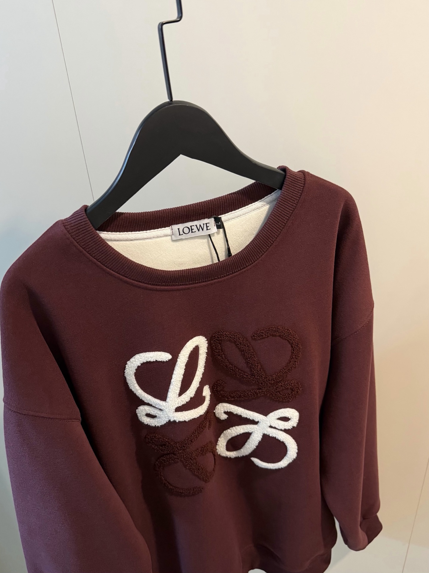 Loewe罗意威加绒毛巾刺绣logo梅子色圆领卫衣