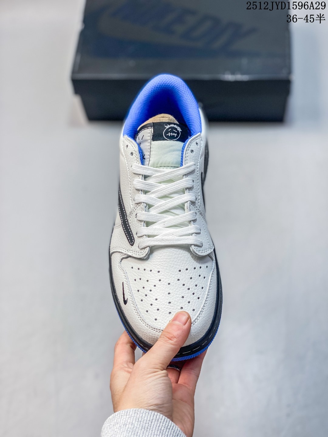 Travis Scott x Fragment Design x Jordan Air Jordan 1 Low OG SP 斯图西联名 冰山蓝 多方联名合作融合了Travi翻毛蓝勾s Scott 独特的音乐风格 藤原浩个性的设计风格以及Jordan品牌的经典元素 使其成为一双具有独特身份和价值的鞋子 清新而立体的外观加上联名标识更突出了其独特身份 这种配色方案显示出活力和时尚感 在视觉上引人注目 鞋身的质感和细腻的细节处理使其显得高端而格调十足 这款 倒钩 联名是设计与创意完美结合 融合多方的个性风格是一款备受瞩目的潮流鞋款 低帮休闲板鞋 定制鞋盒 大厂纯原品质出货 超高清洁度 皮料切割干净无任何毛边 细节完美
