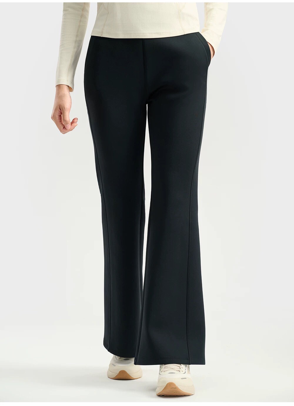 内里是厚实又亲肤的复合加绒面料 穿上身暖乎乎的 寒风再大也不怕冻腿 真正做到保暖不臃肿 经典的微喇版型太懂亚洲女生的身材了 高腰设计悄悄拉高腰线 裤脚微微散开的弧度 不仅能完美修饰腿型 遮住小腿赘肉 还能悄悄显腿长 不管是梨形身材还是小个子都能轻松驾驭