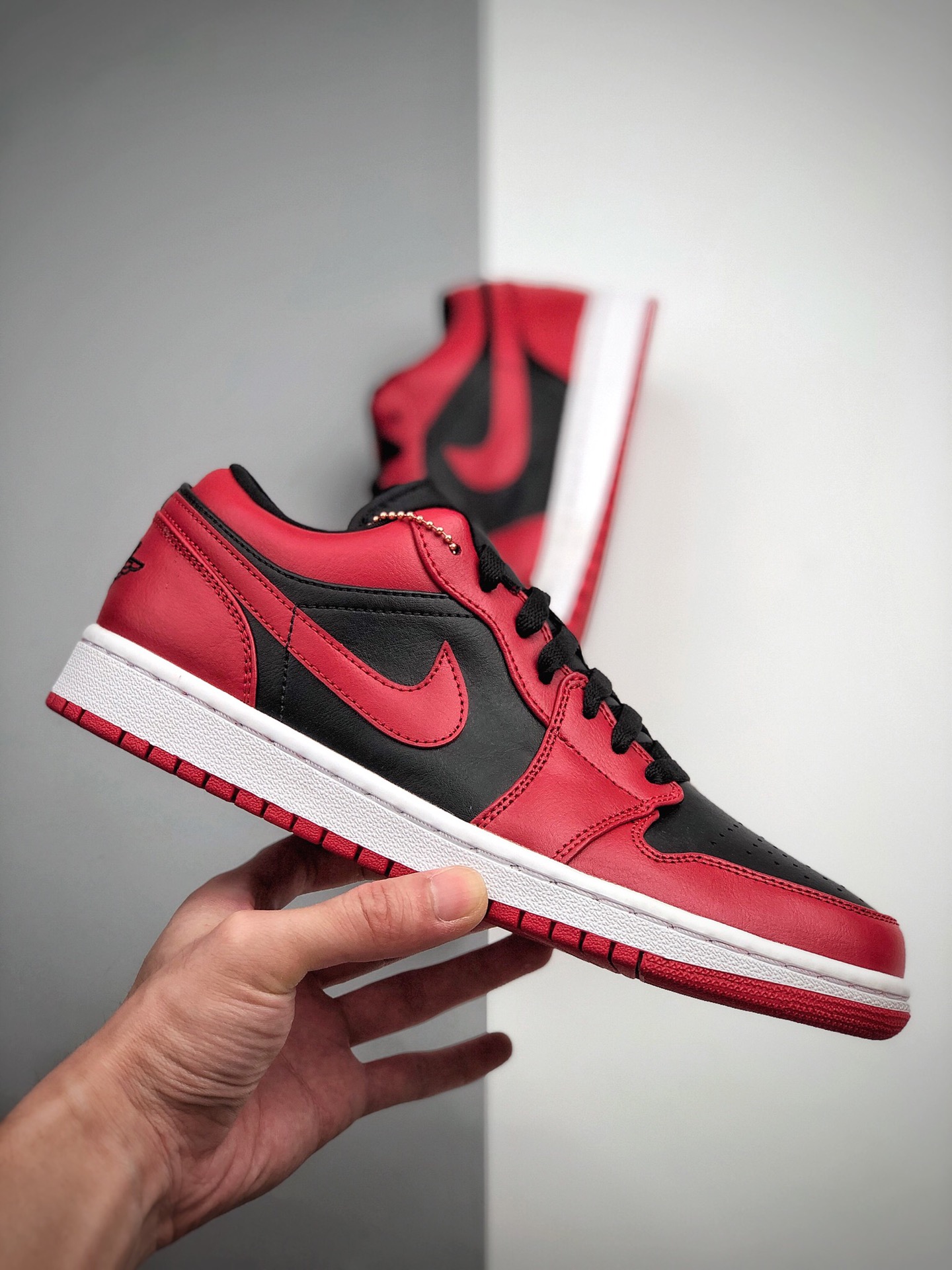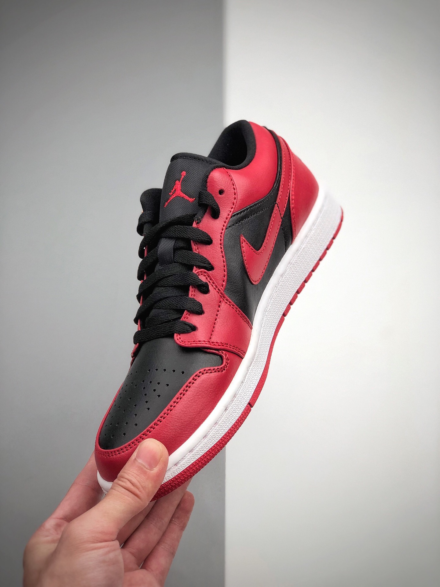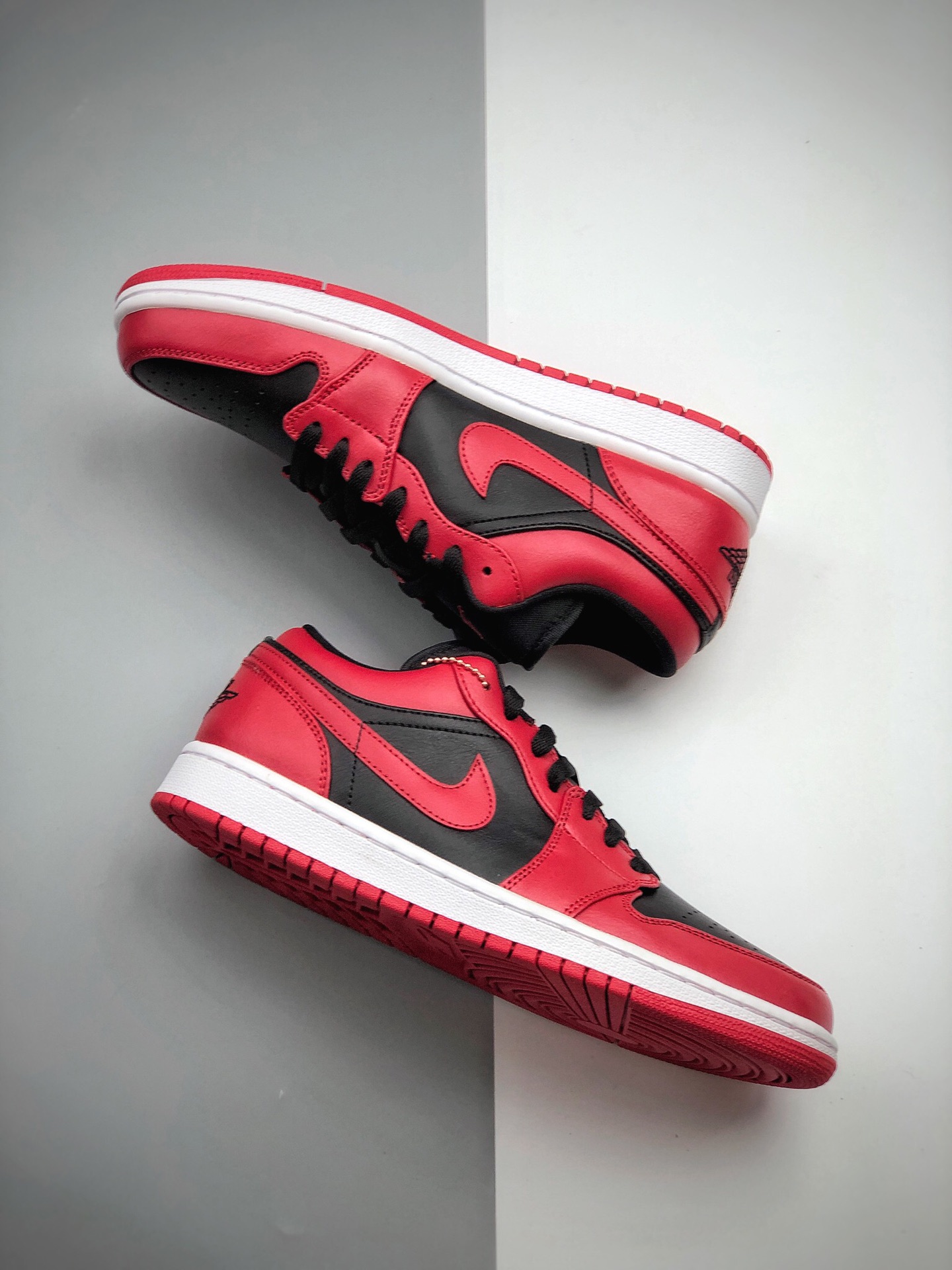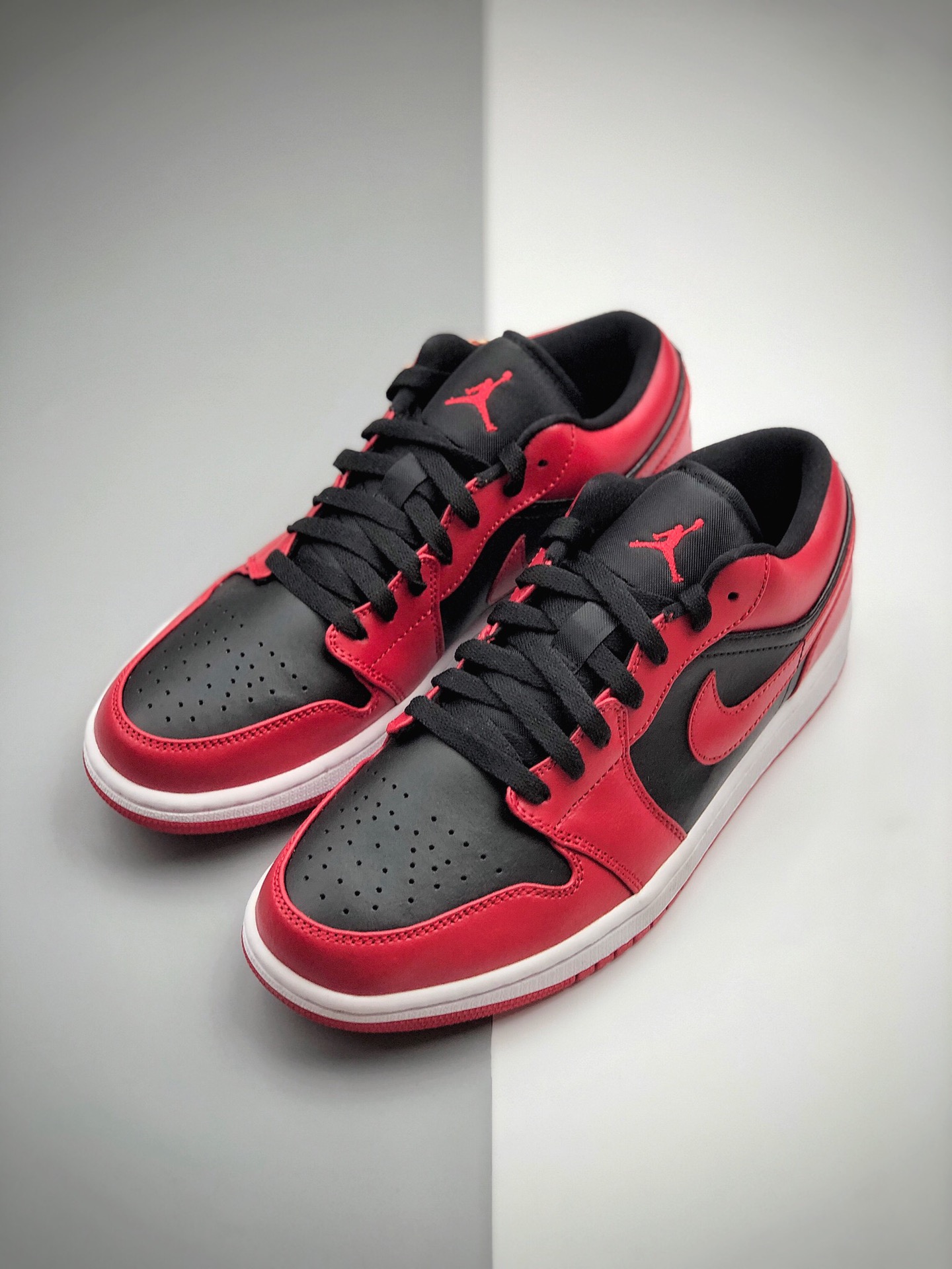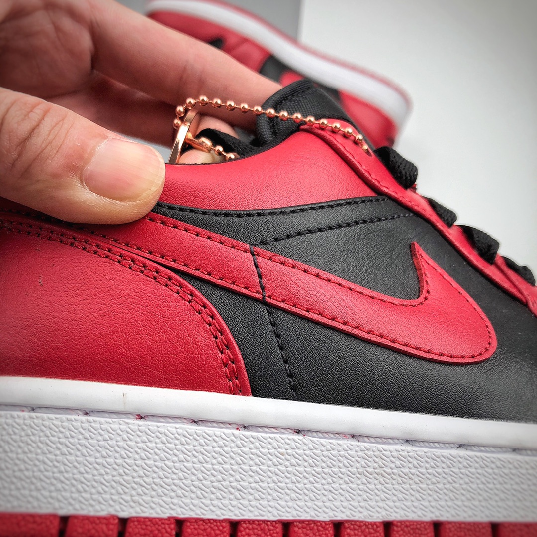 Nike Air Jordan 1 Low Gym Red 低帮 反转黑红 AJ1 乔丹1代 aj1 乔1 低邦 反转禁穿 乔丹篮球鞋系列 整双鞋以红黑色打造 鞋面采用黑色皮革呈现 搭配红色框架覆盖层 鞋身两侧Swoosh Logo采用红色装扮 黑色鞋舌上点缀红色Jumpman Logo 鞋帮领口位置同样以红色妆点 后跟红色底色上呈现黑色刺绣Wings Logo 最后以白色中底以及黑红色外底 完善整双鞋的设计