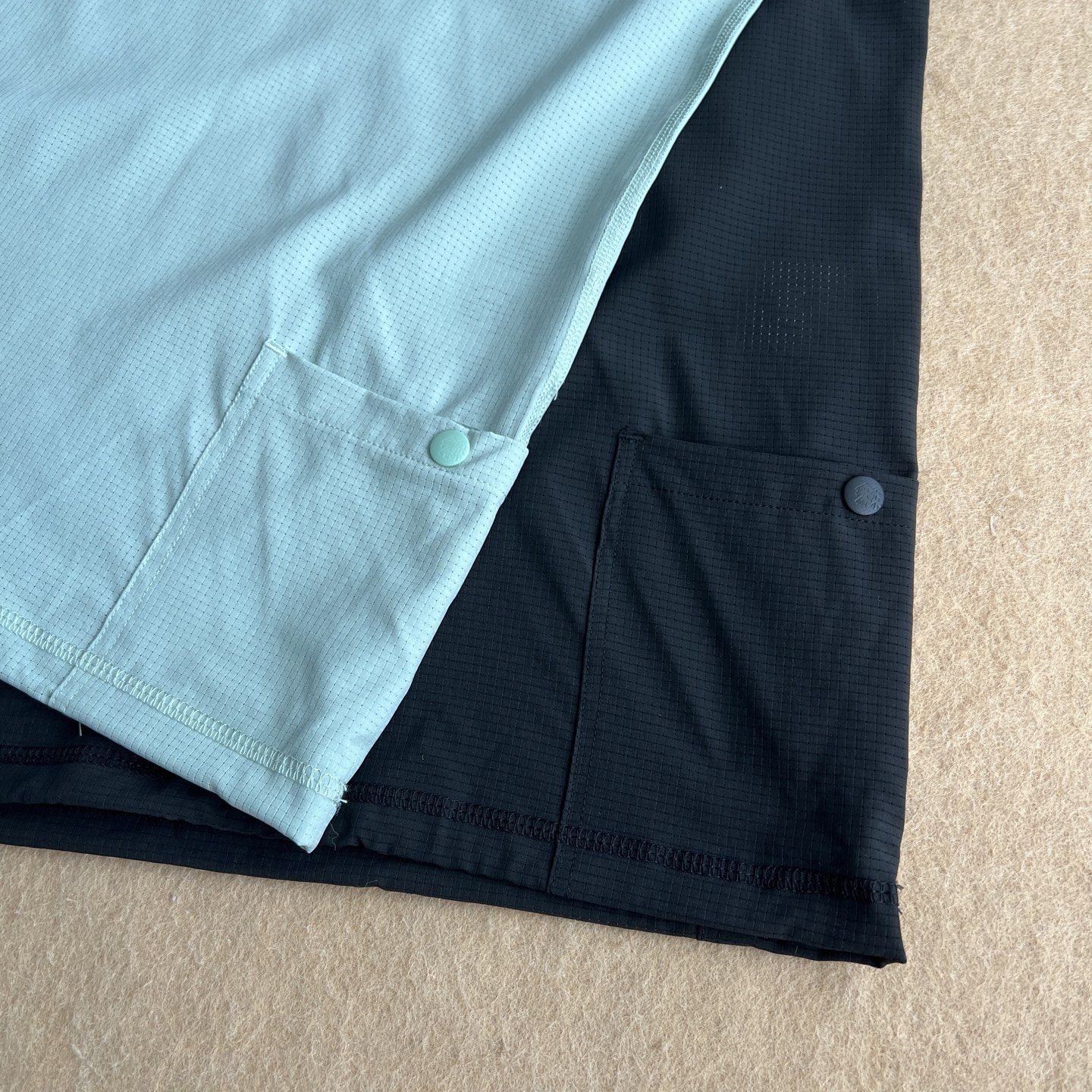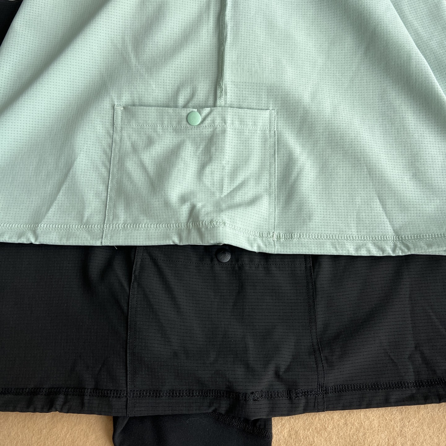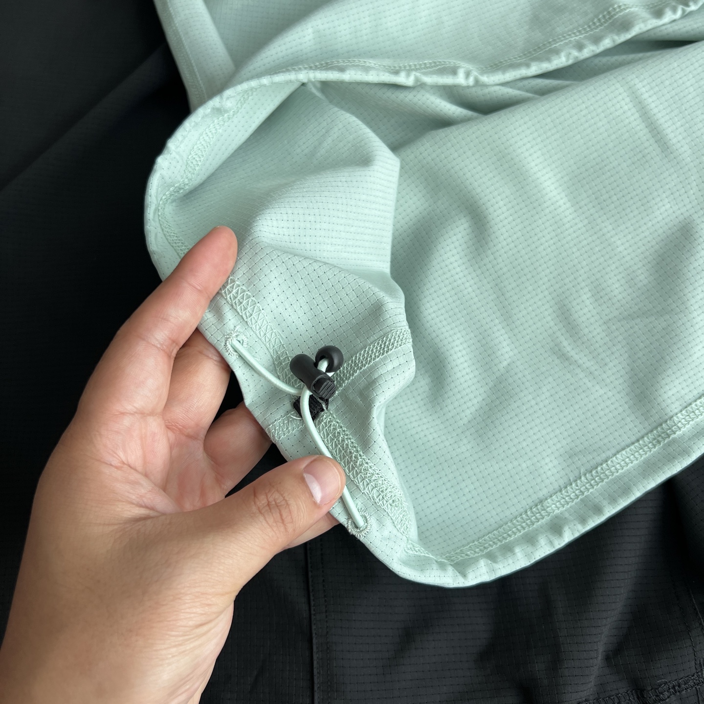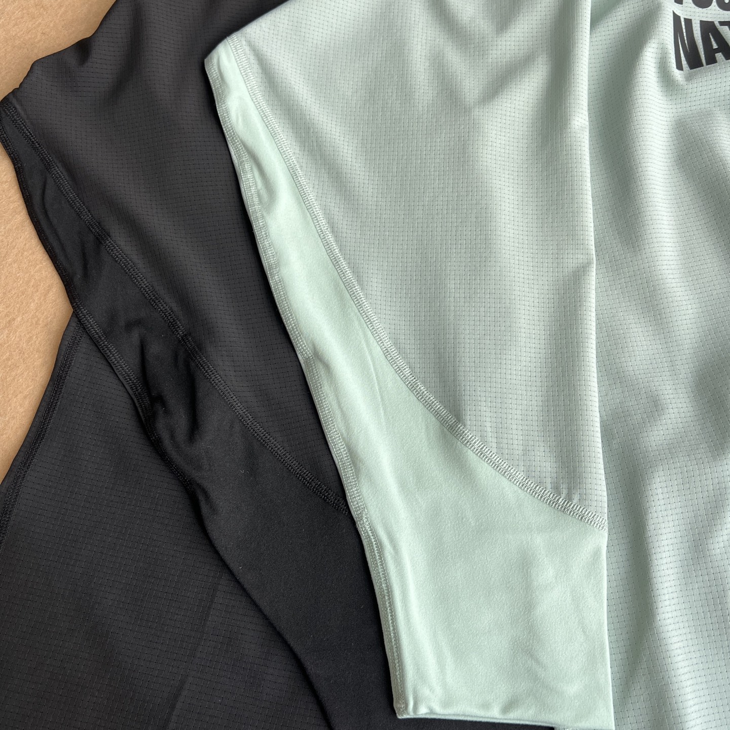 吸湿排汗 接触自带凉感 透气网眼设计 出汗不黏身 非常透气 袖口拼接针织弹力面料